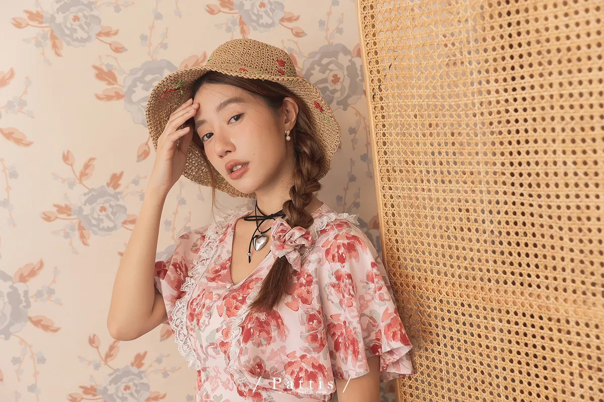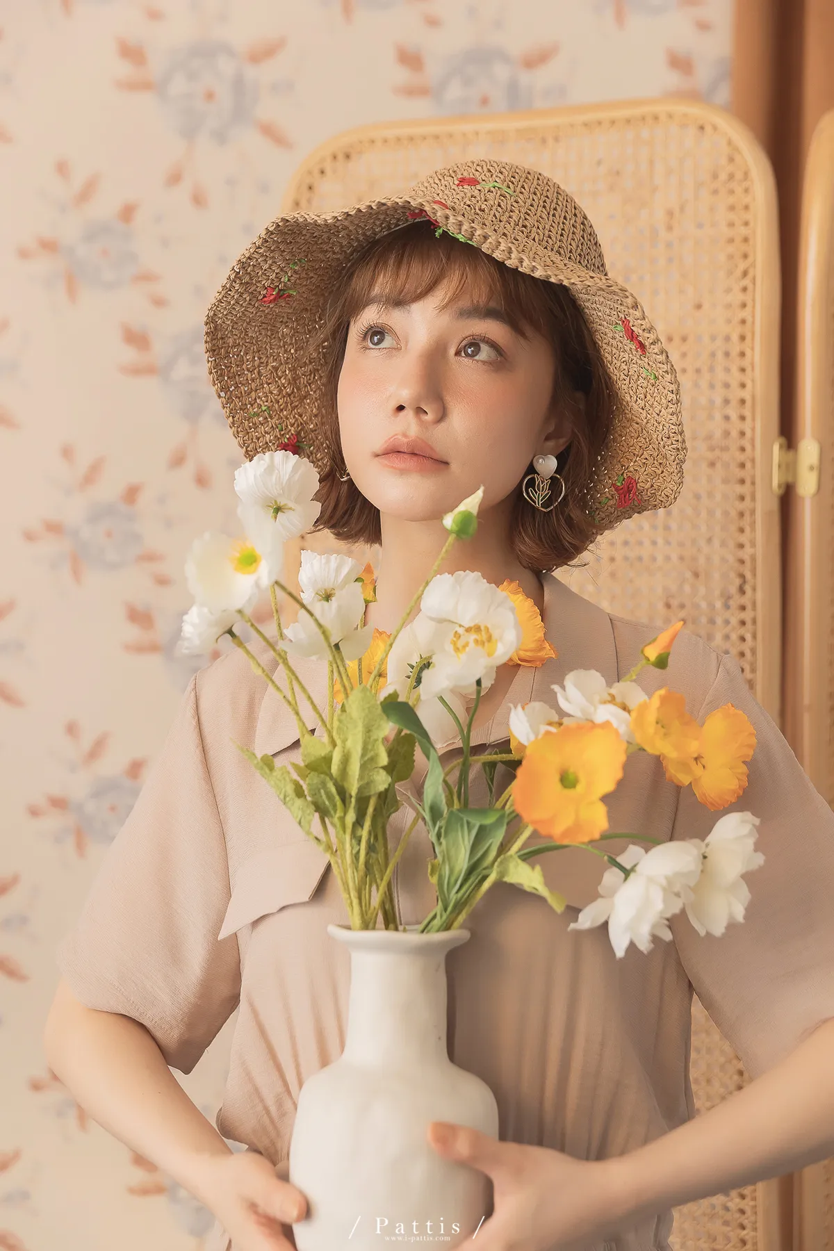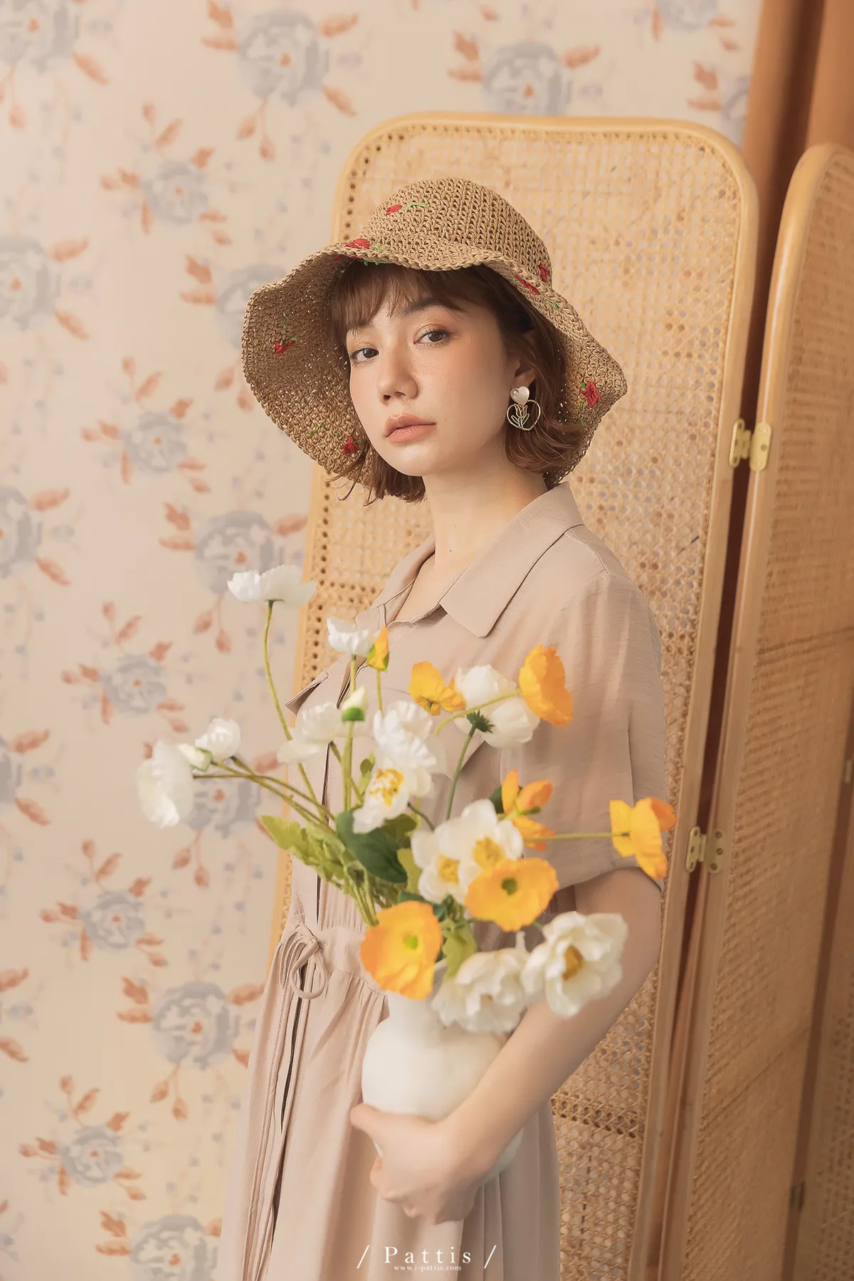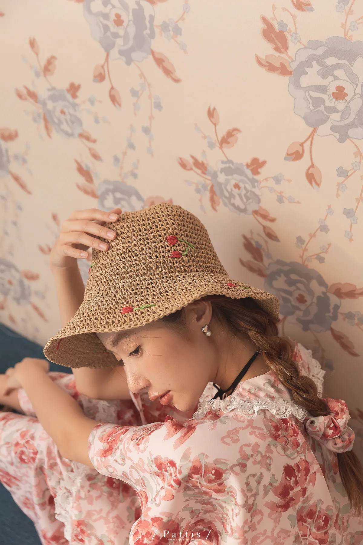 鬱金香刺繡編織草帽(淺杏/深棕)