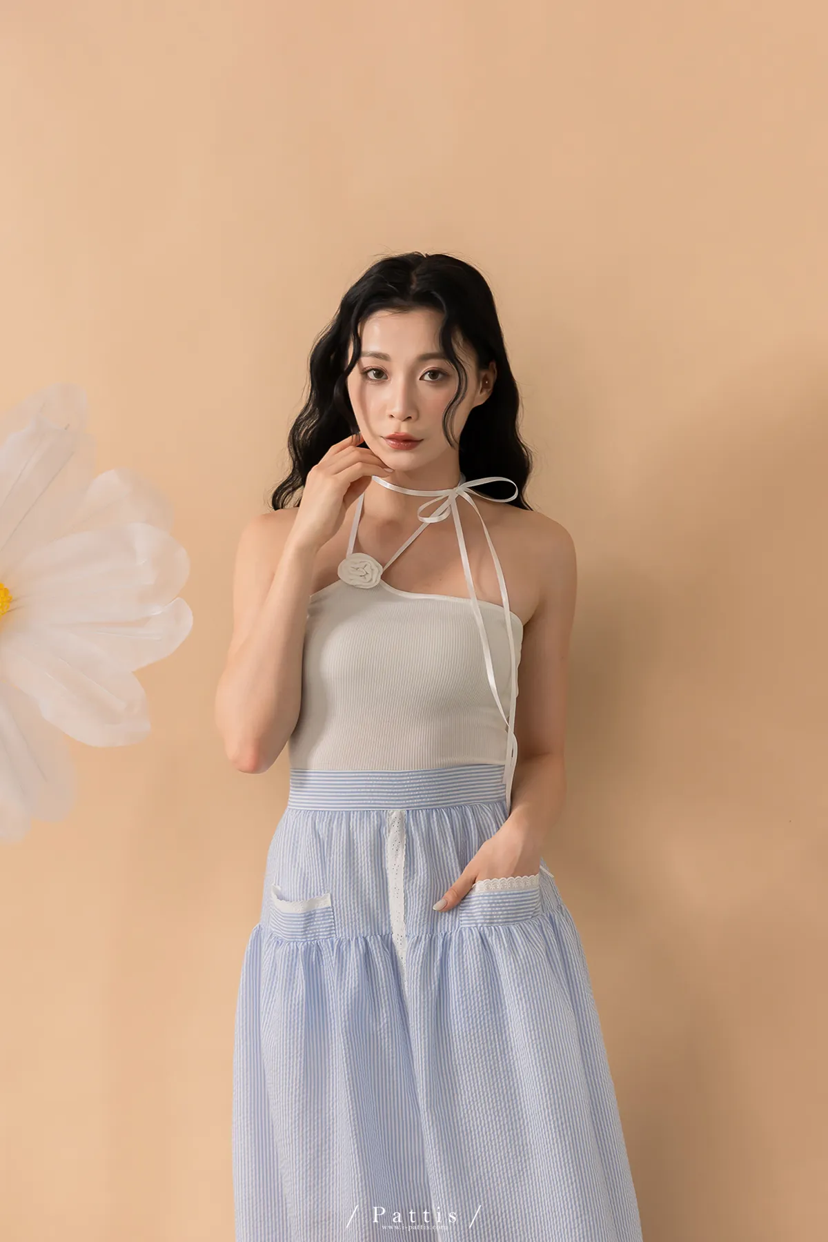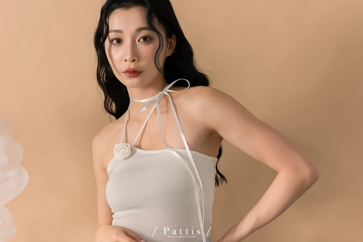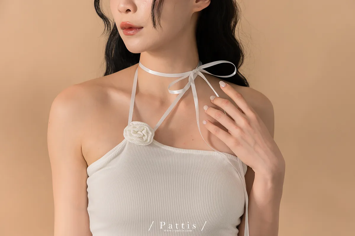 來自珍妮的告白信 | 削肩立體玫瑰綁帶背心(白)