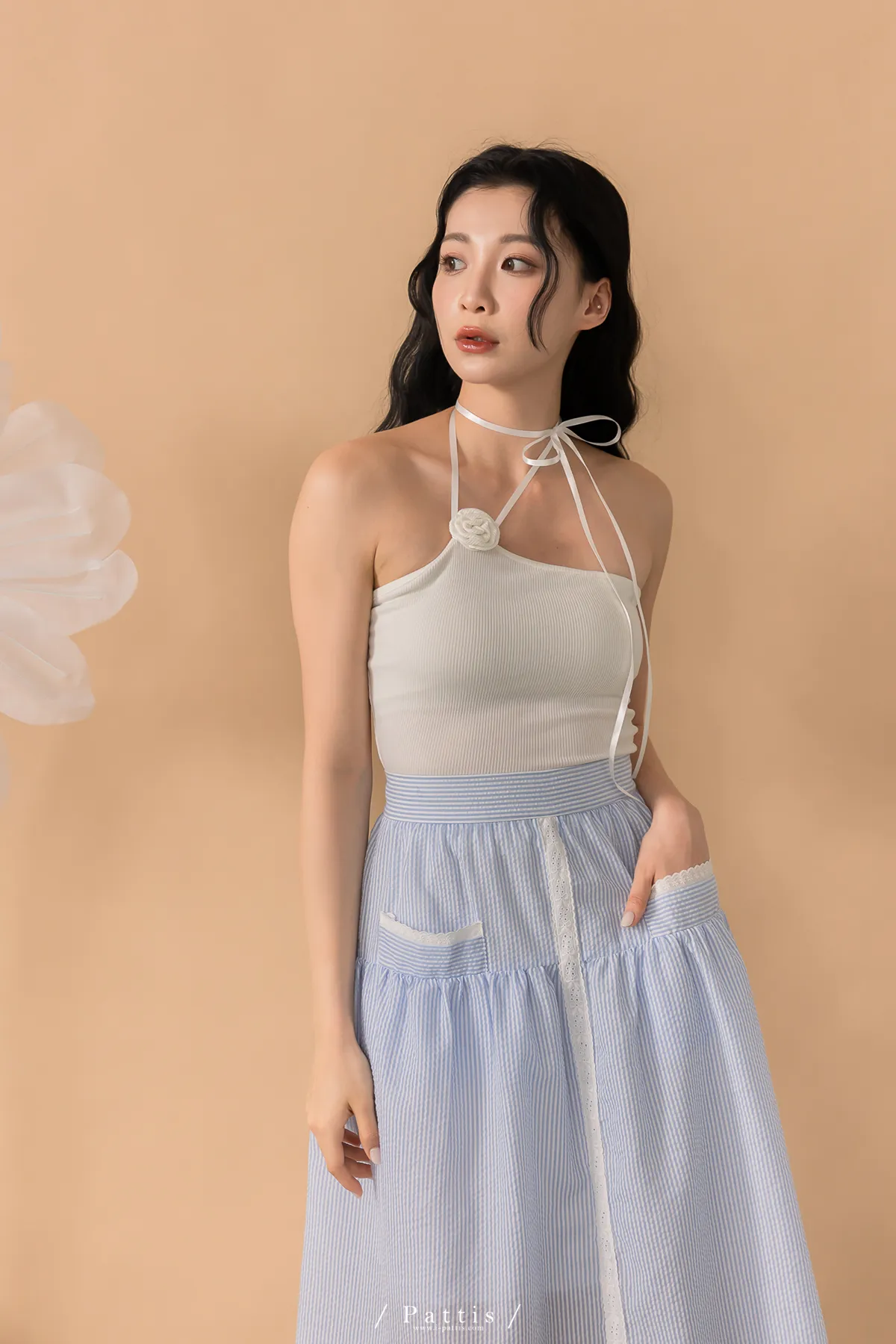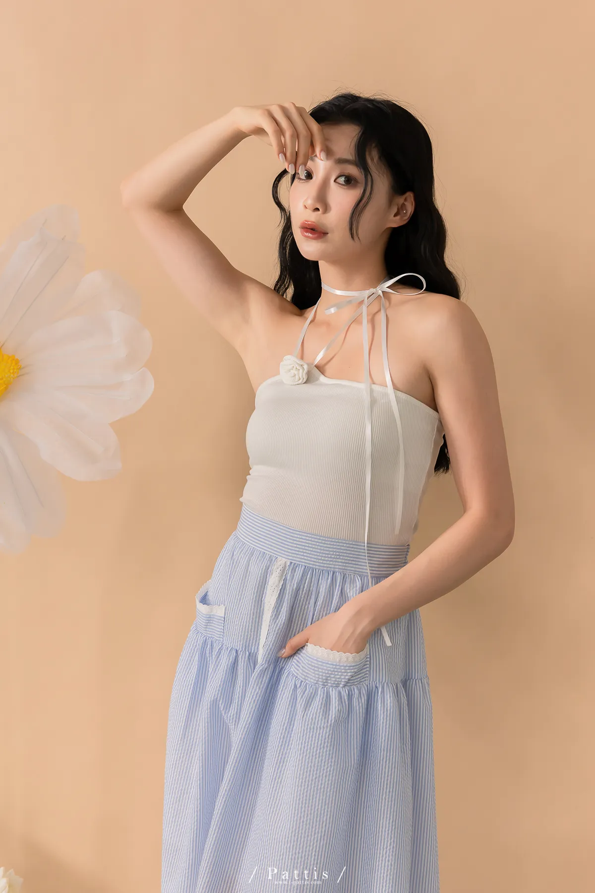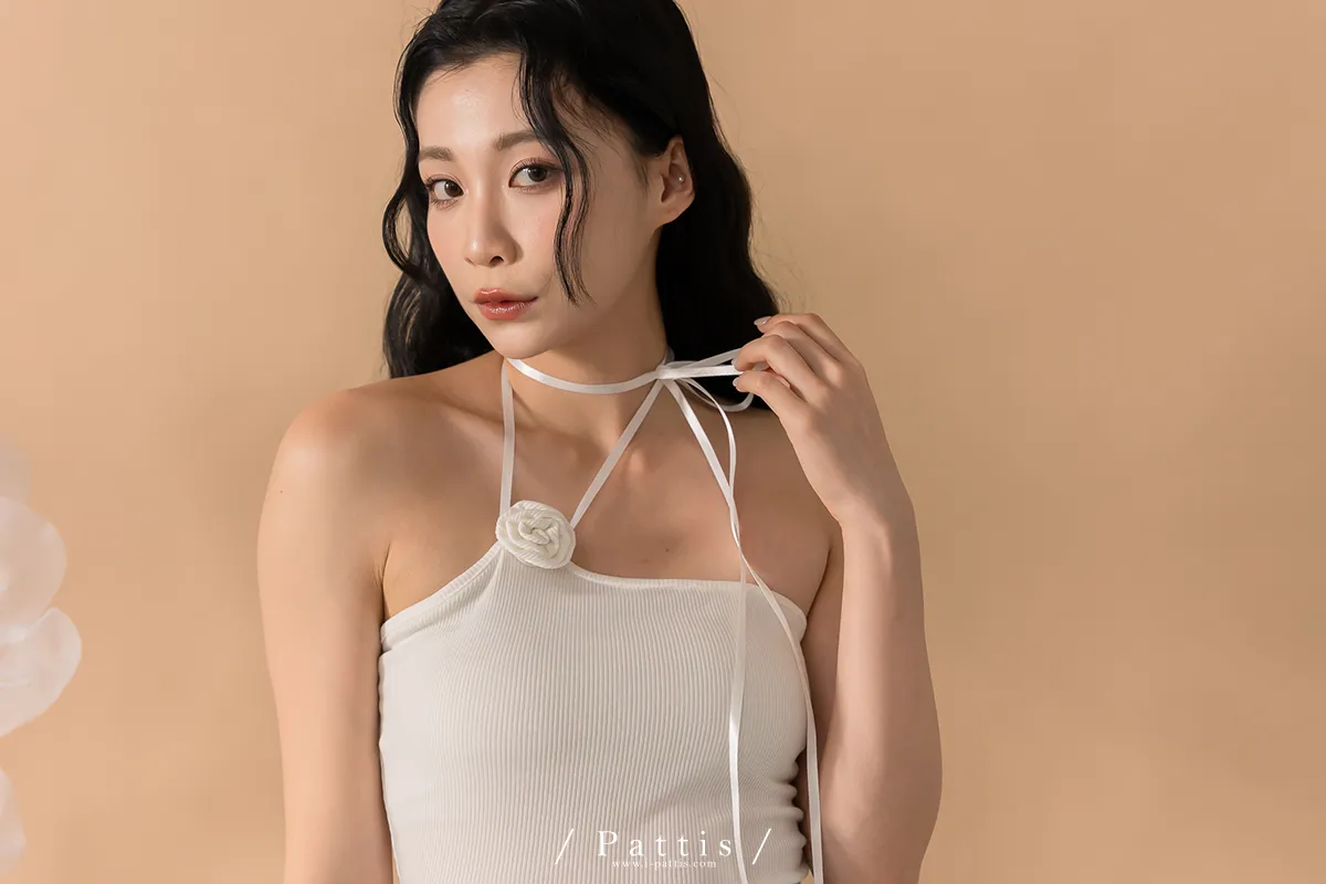 來自珍妮的告白信 | 削肩立體玫瑰綁帶背心(白)