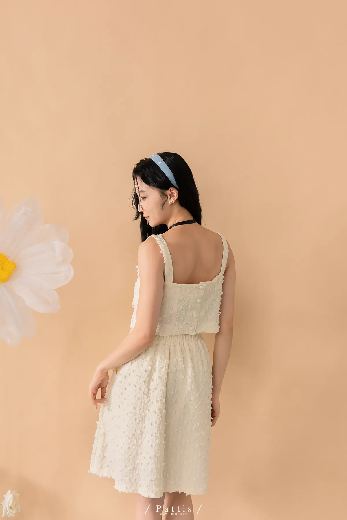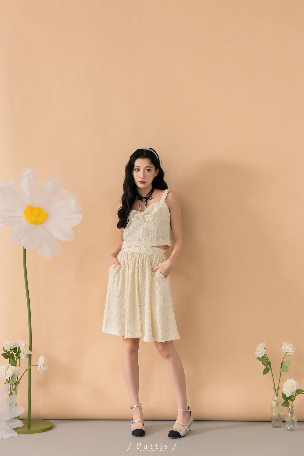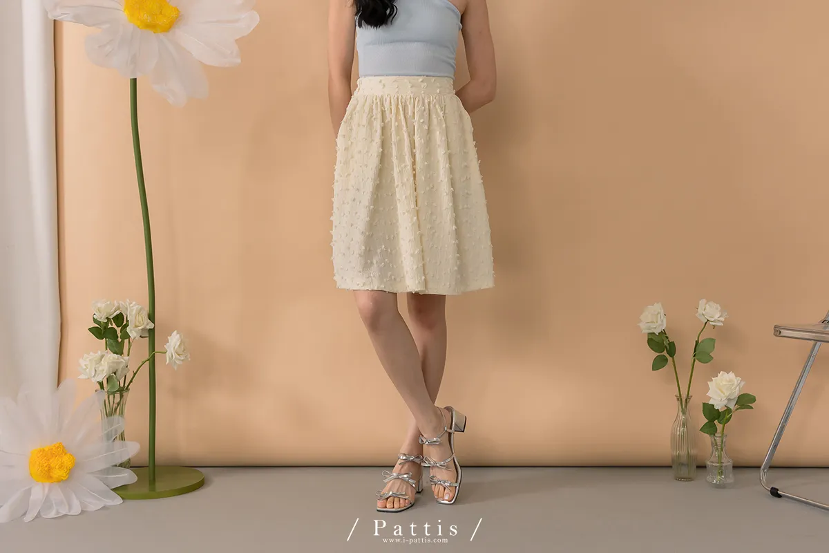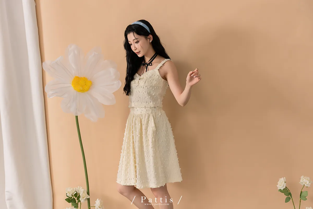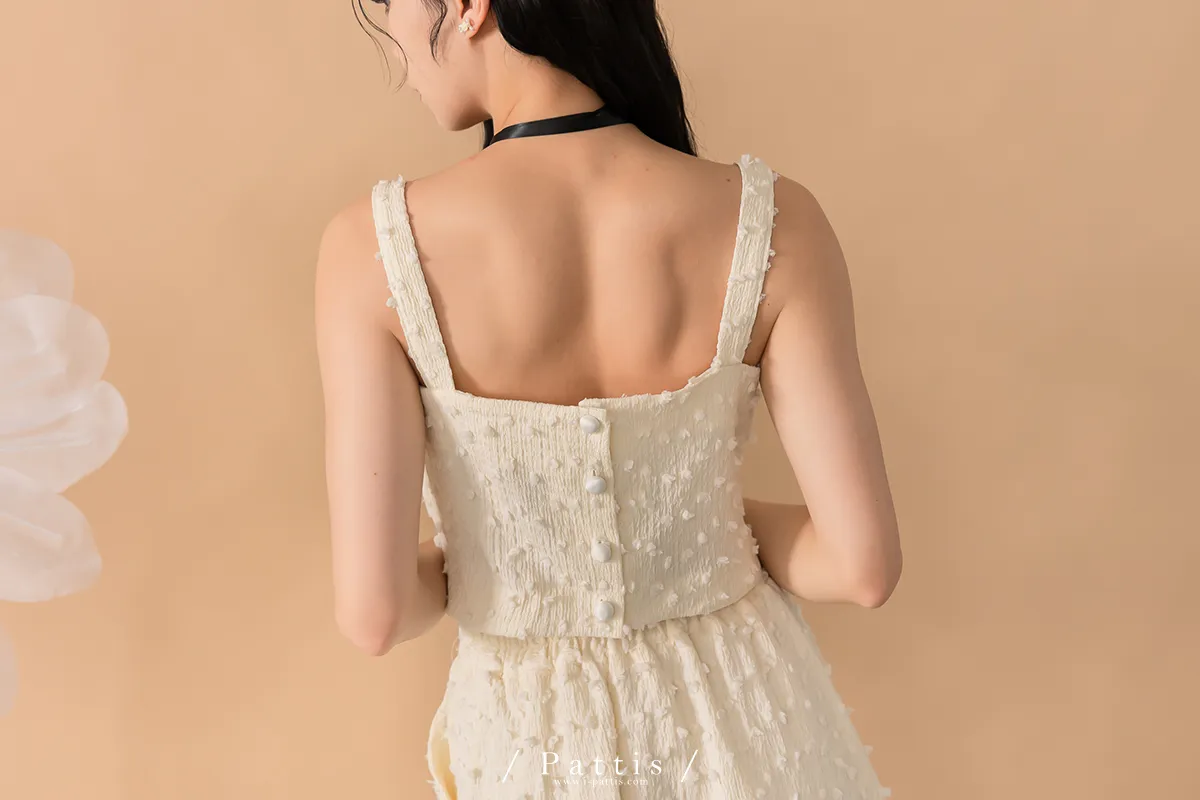 (現貨-裙子)迷你棉花糖 | -可分售-立體棉球桃心領背心+波浪裙set組(單一色)