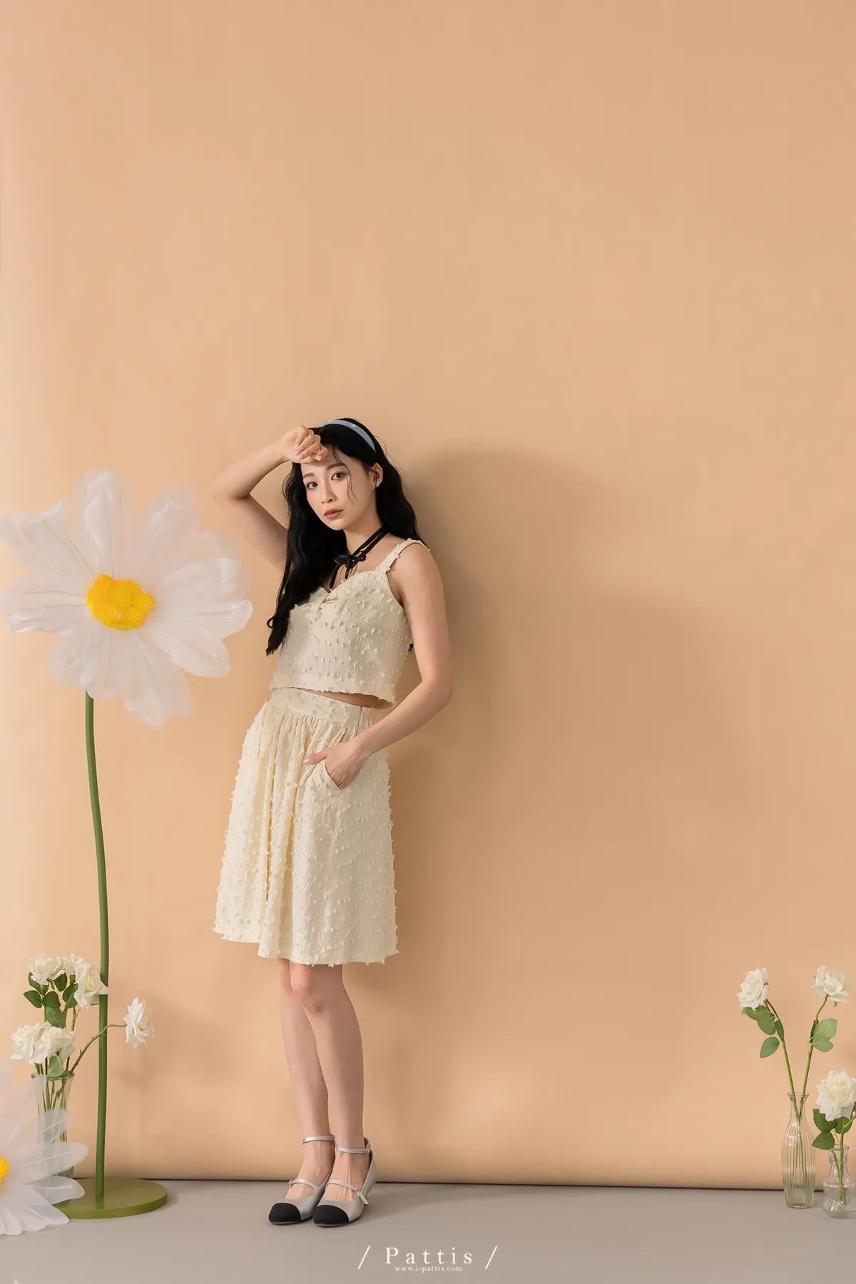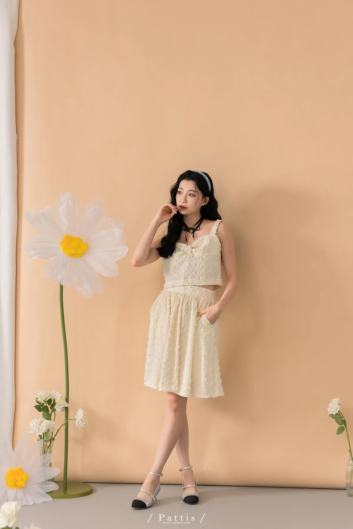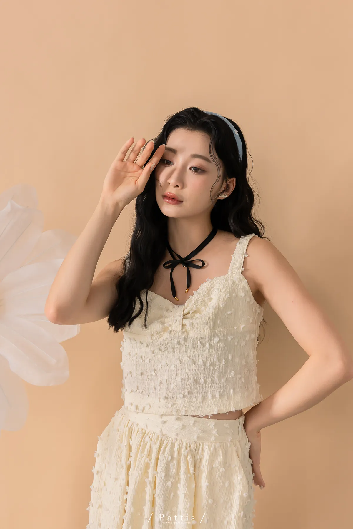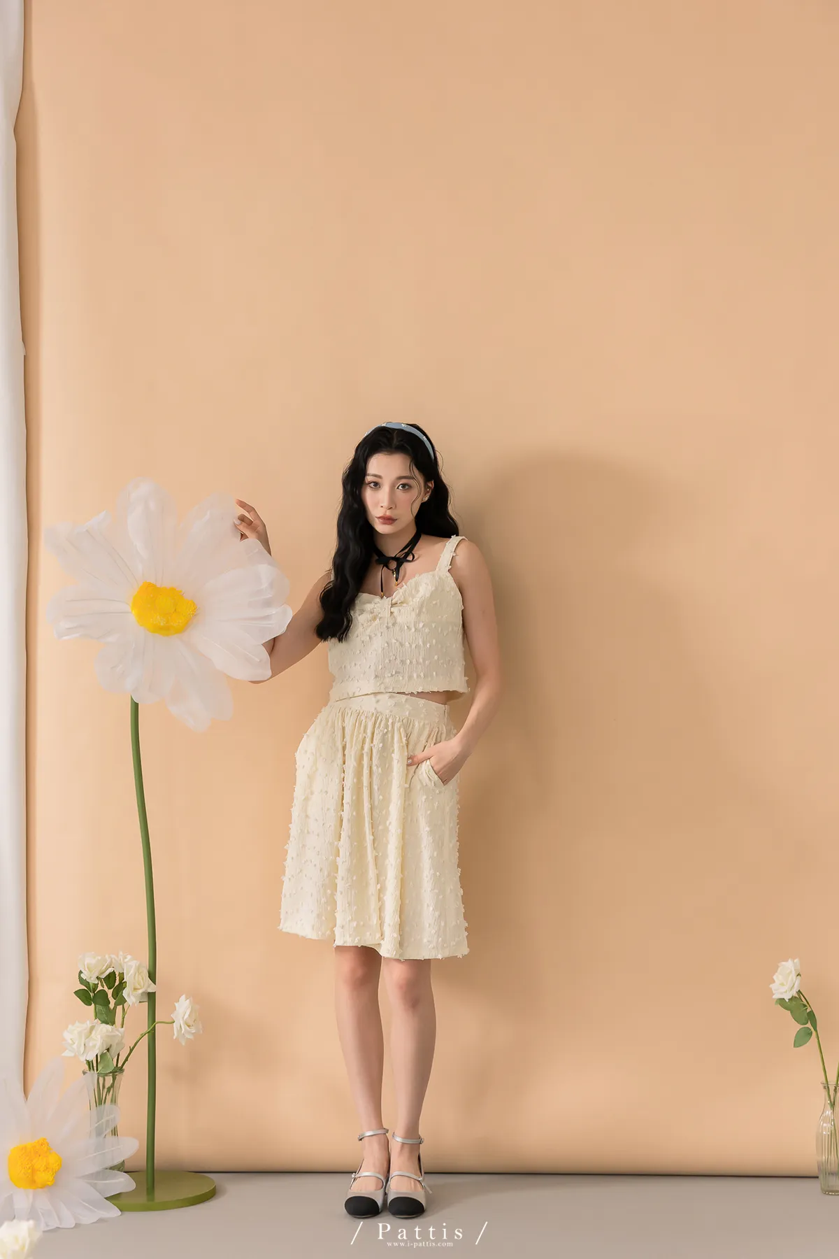 (現貨-裙子)迷你棉花糖 | -可分售-立體棉球桃心領背心+波浪裙set組(單一色)