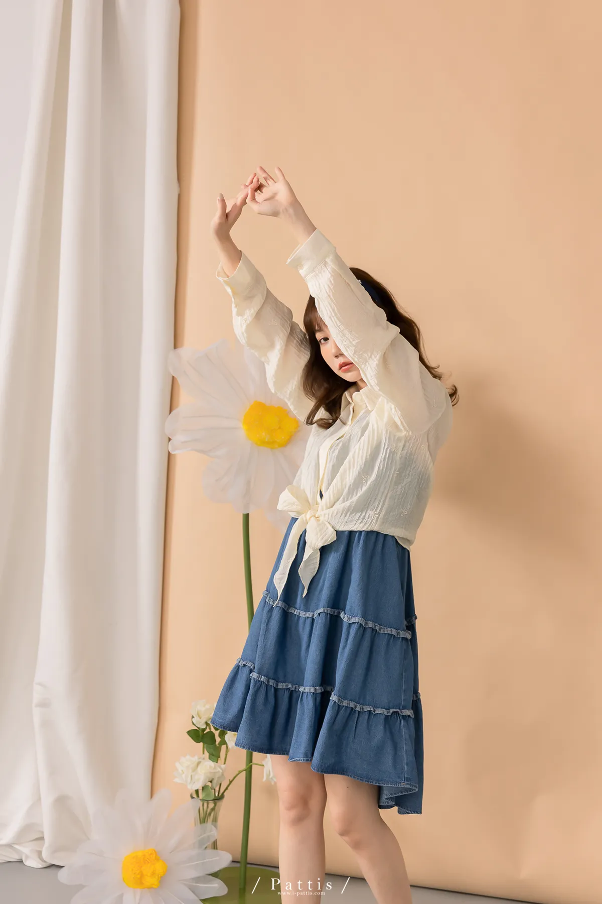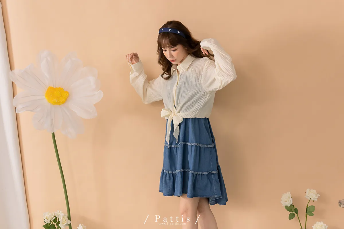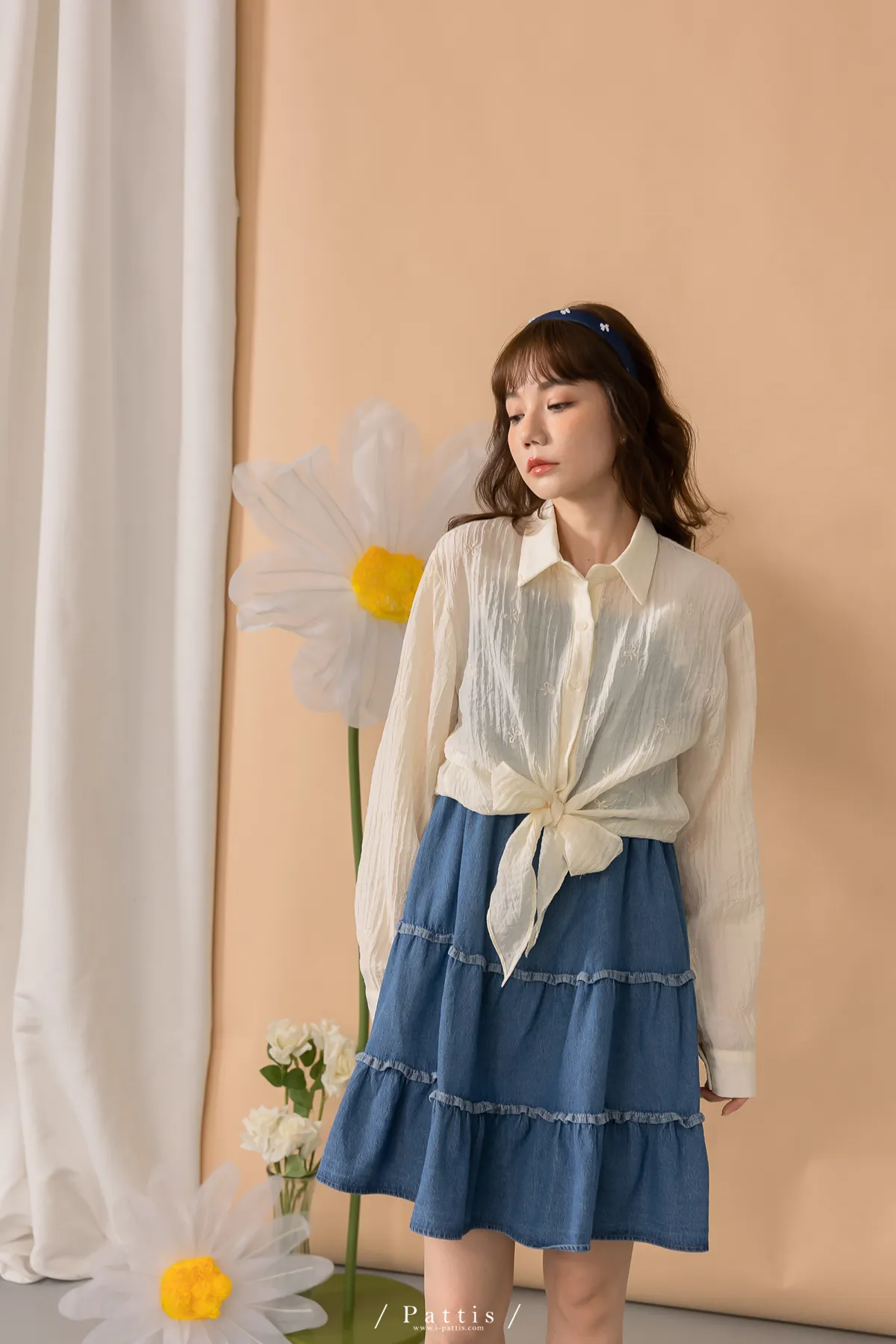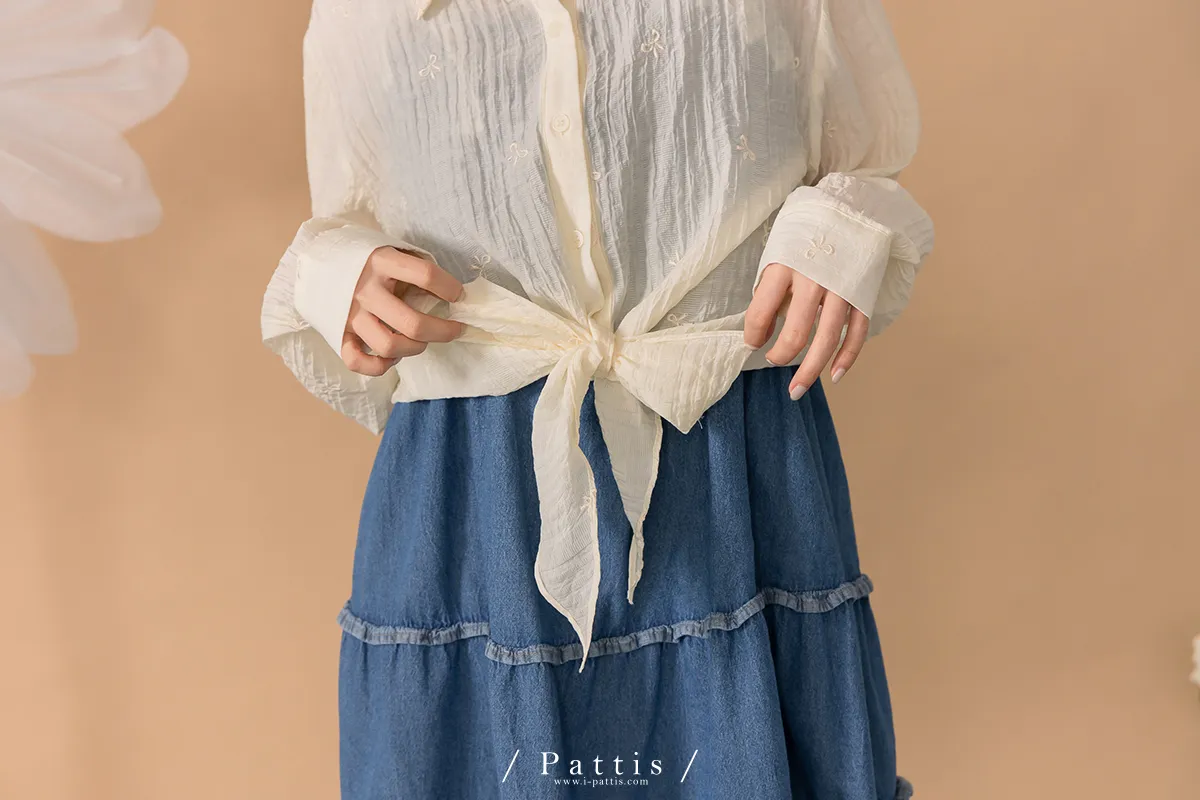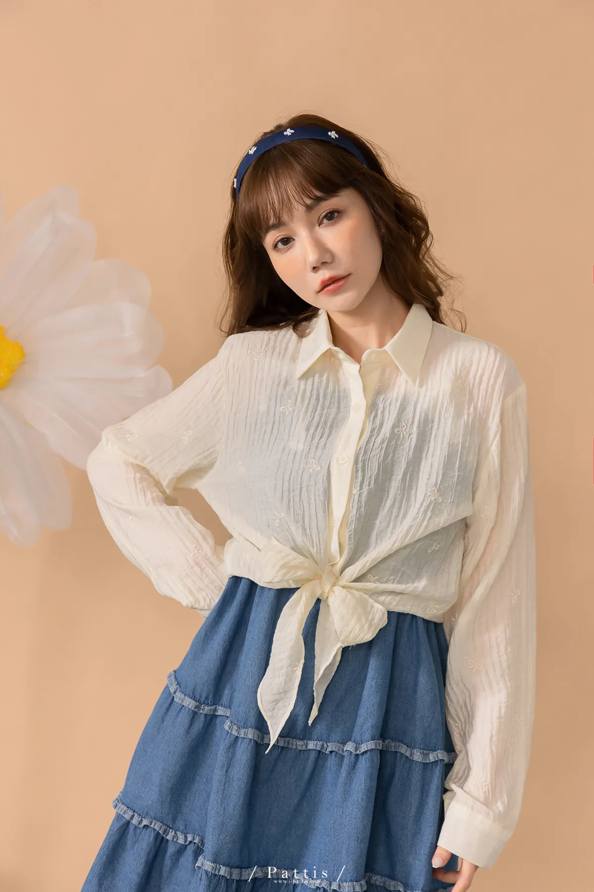 甜美造夢家 | 蝴蝶結刺繡綁帶襯衫(米黃)