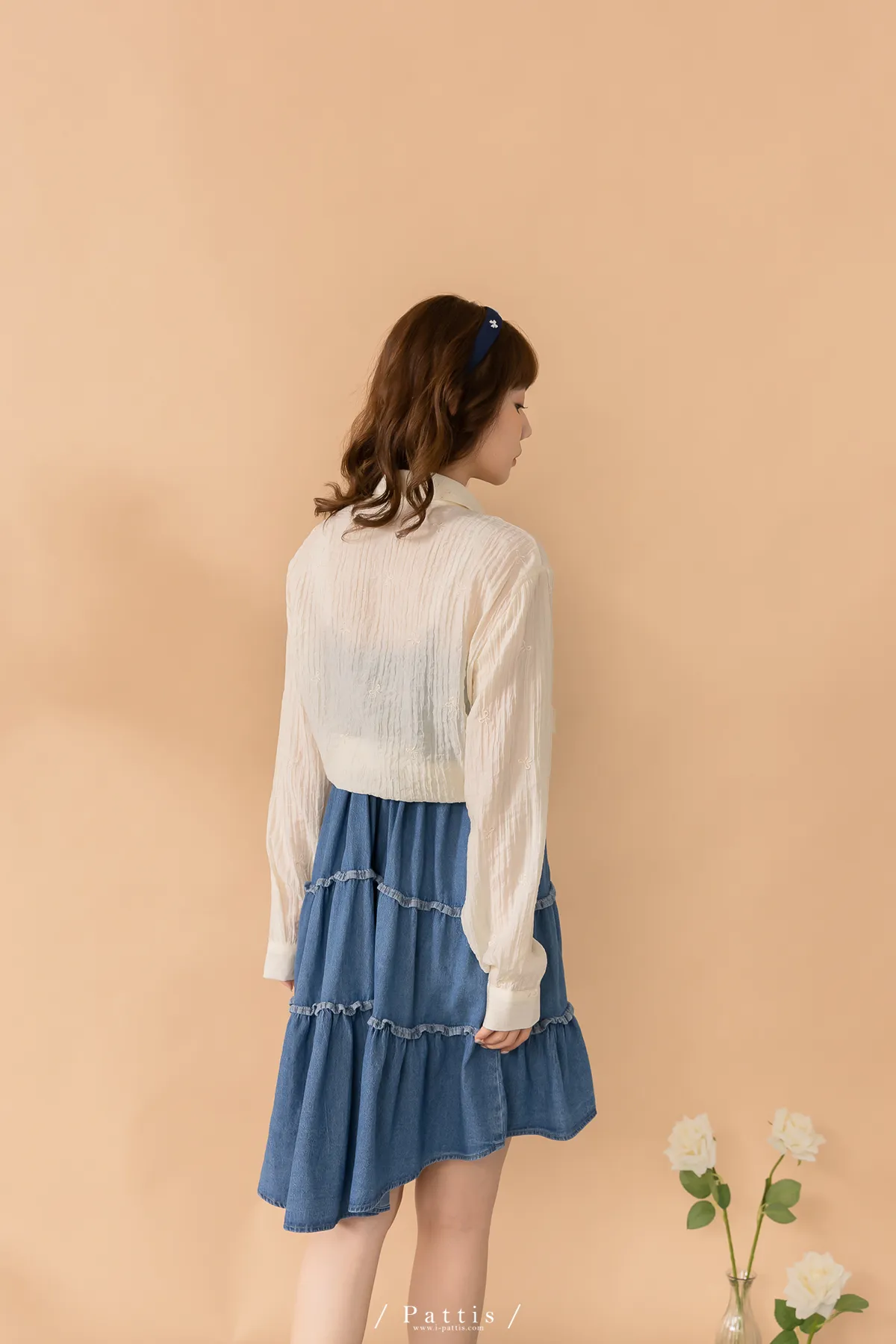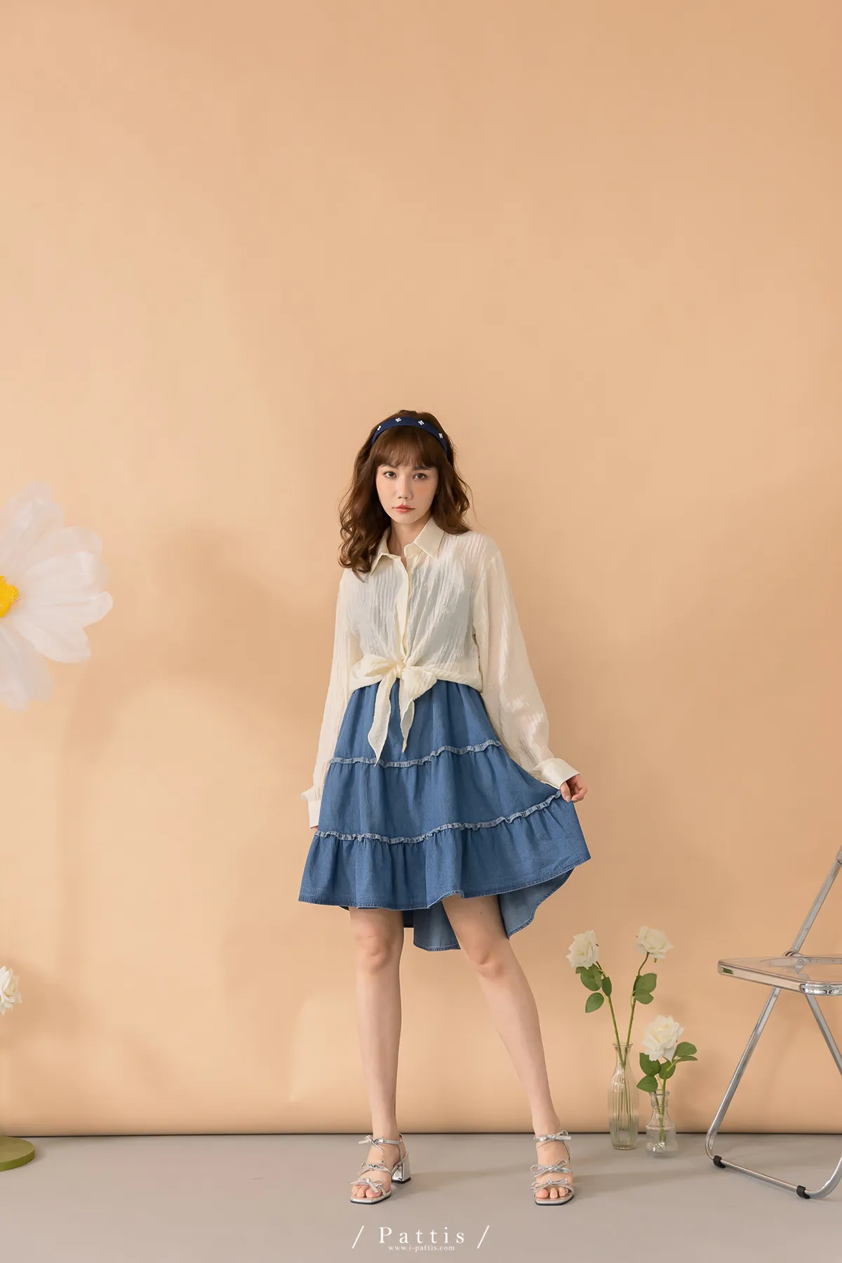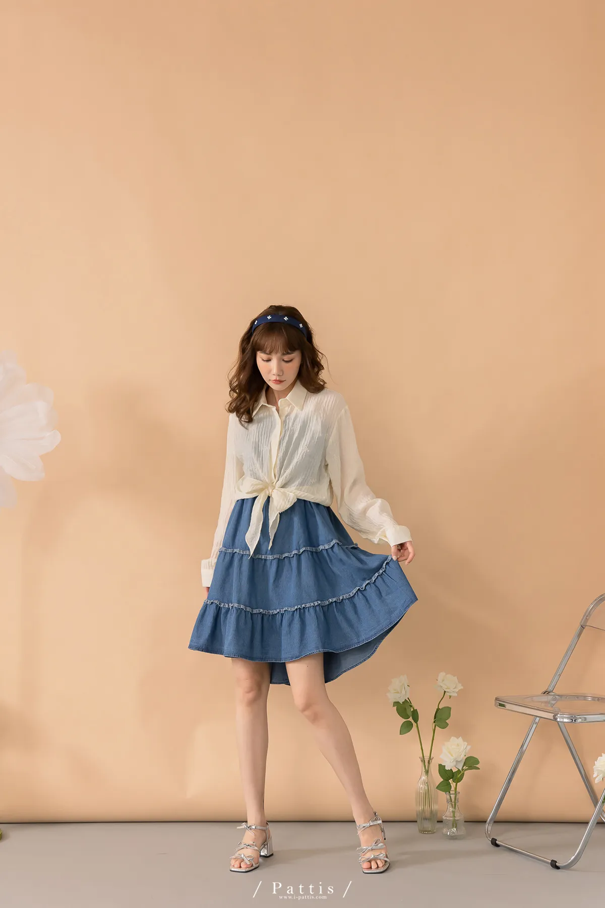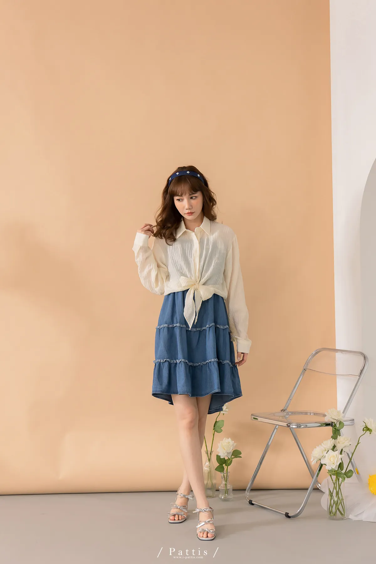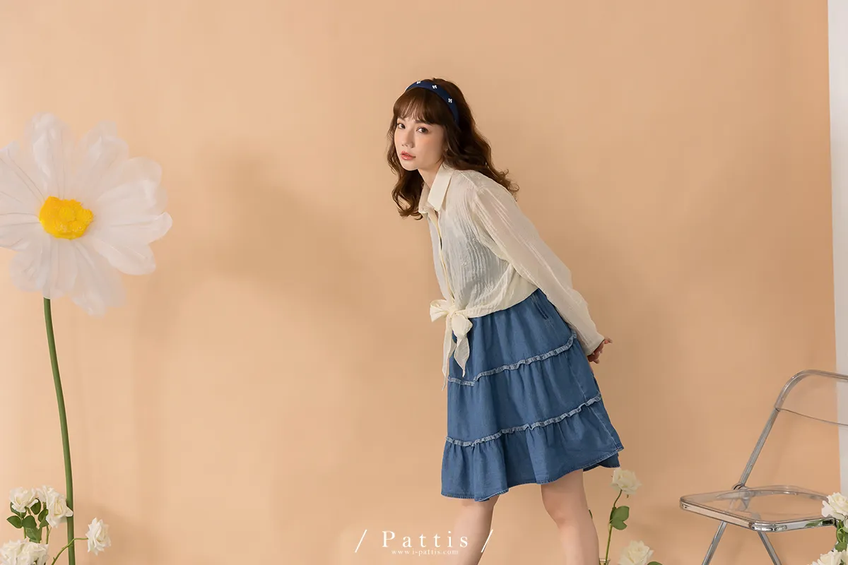 甜美造夢家 | 蝴蝶結刺繡綁帶襯衫(米黃)