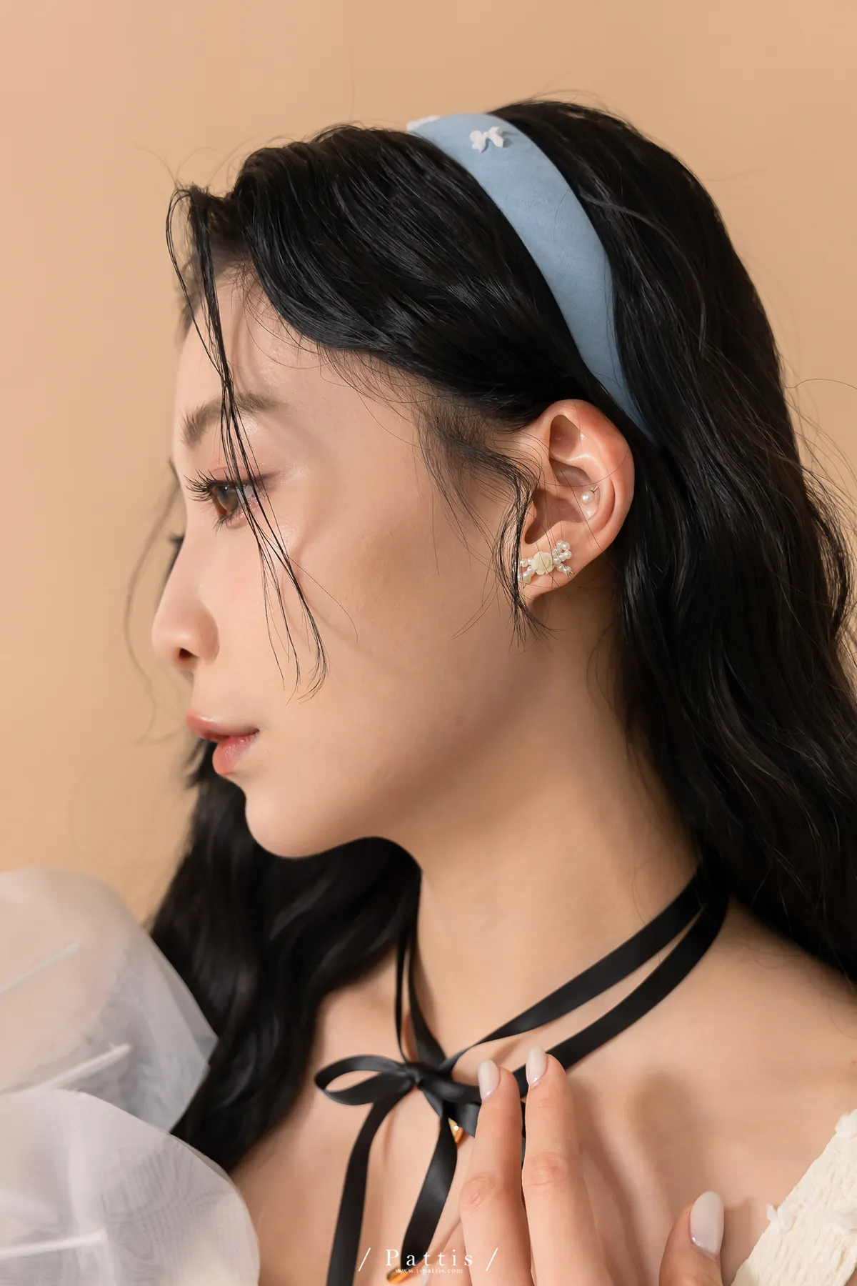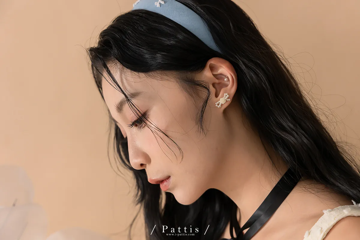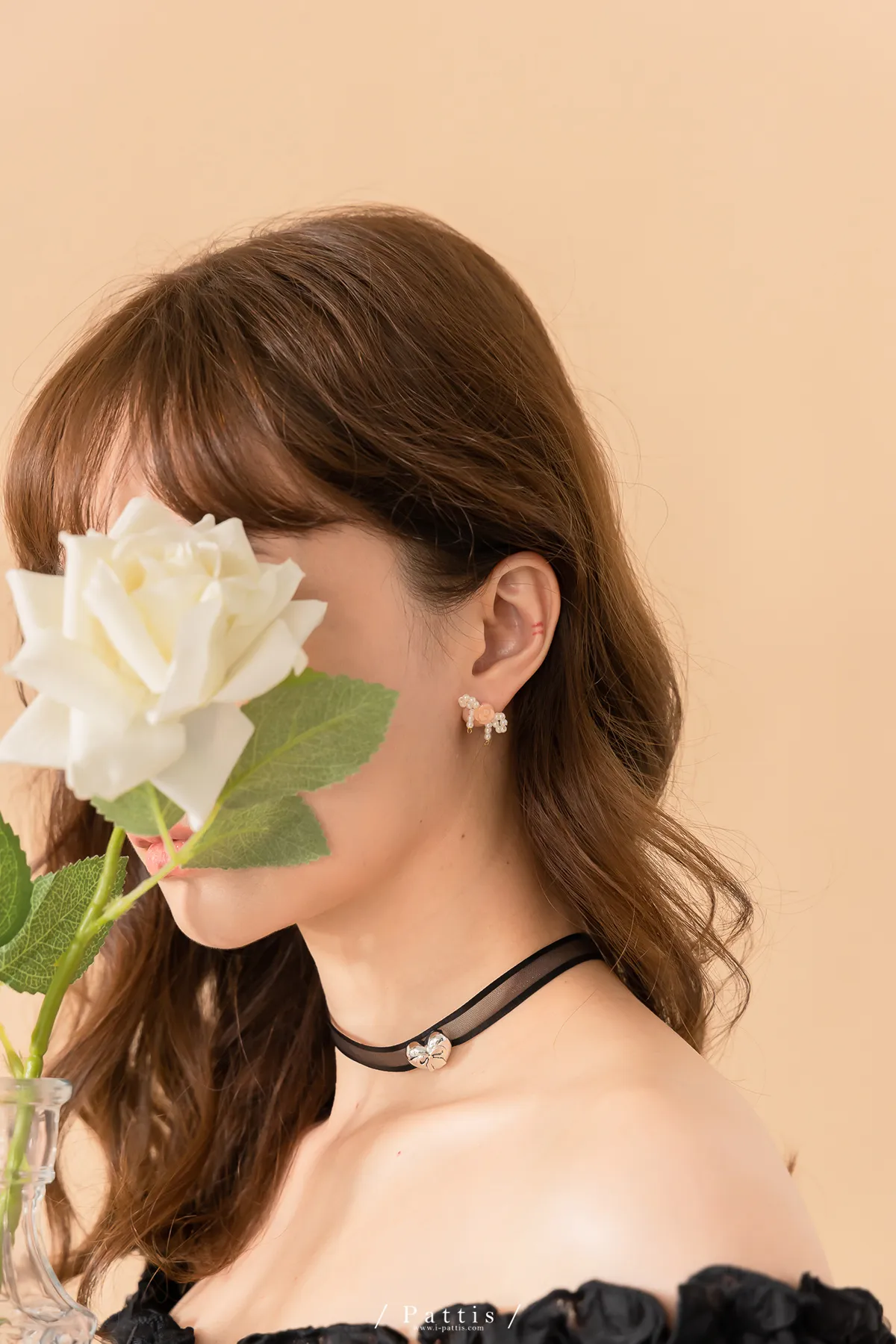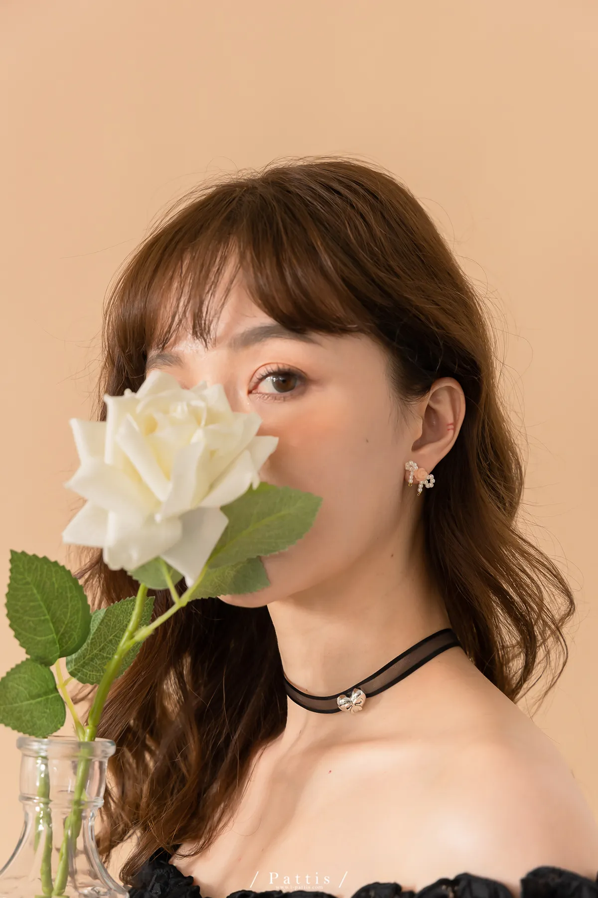 蝴蝶結造型珍珠玫瑰耳環(白/粉)