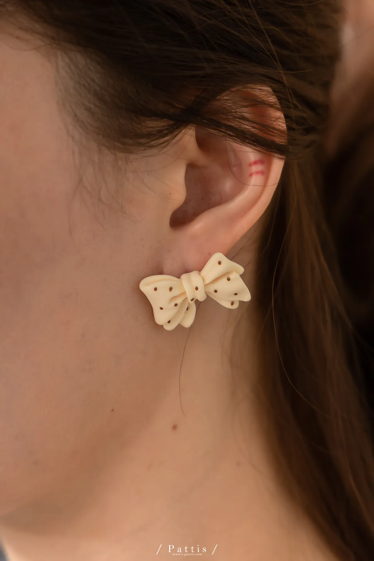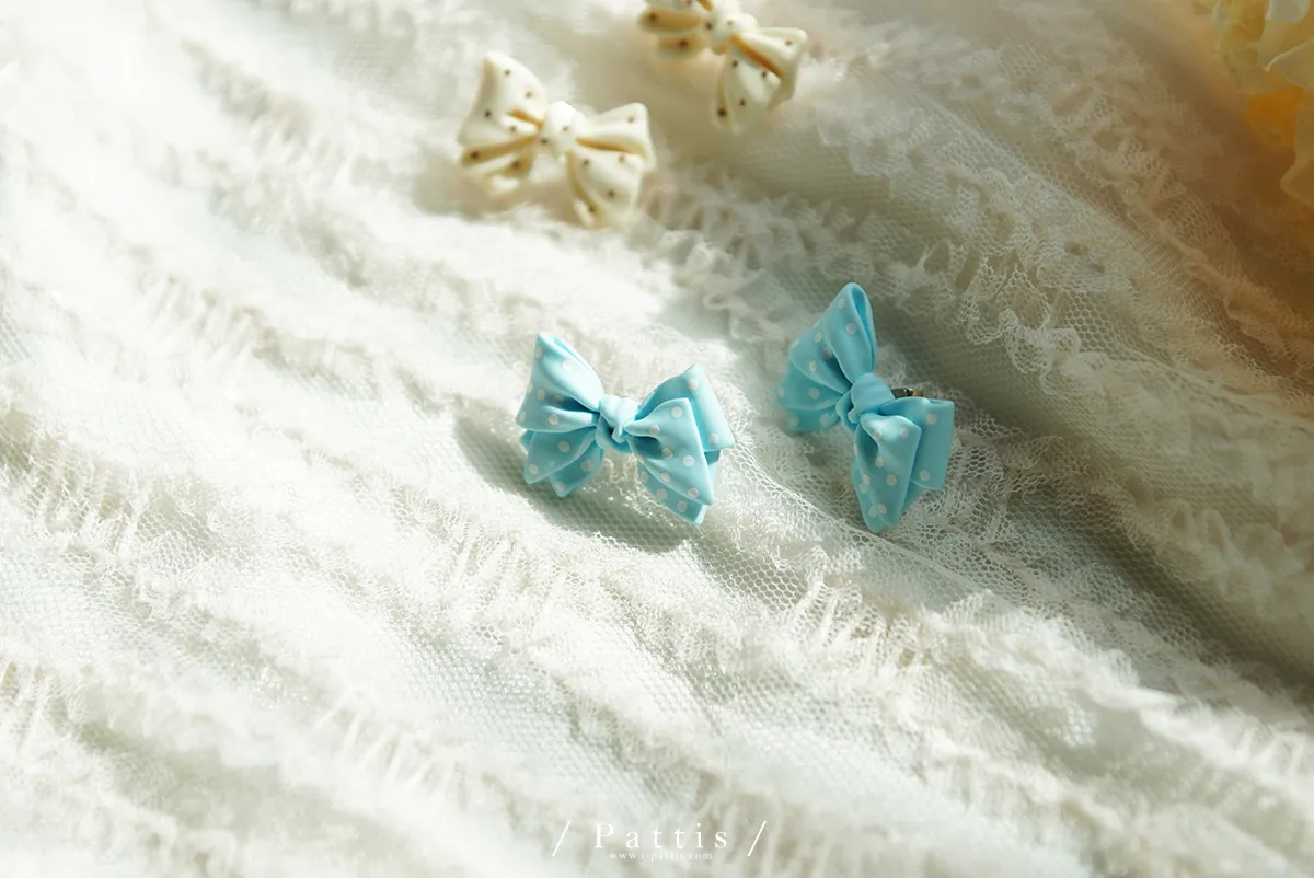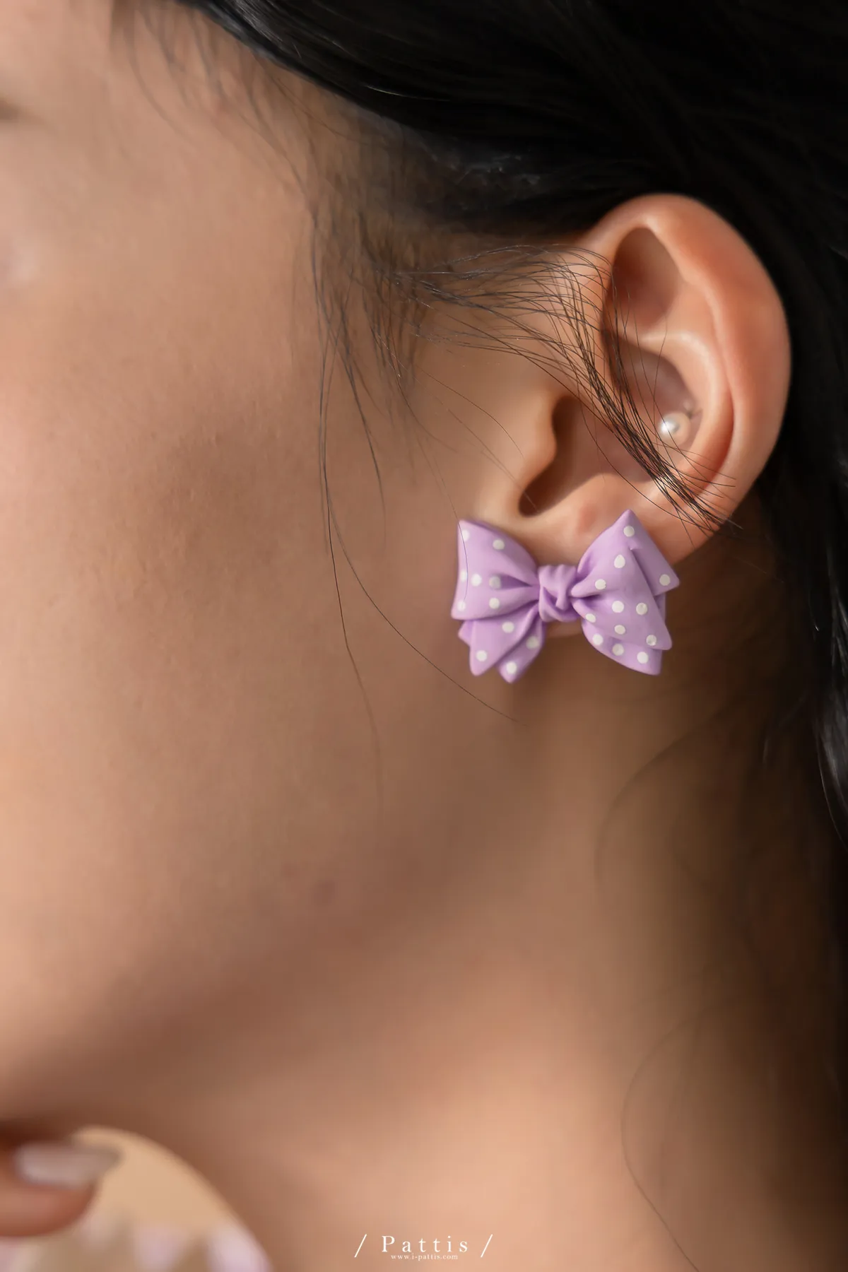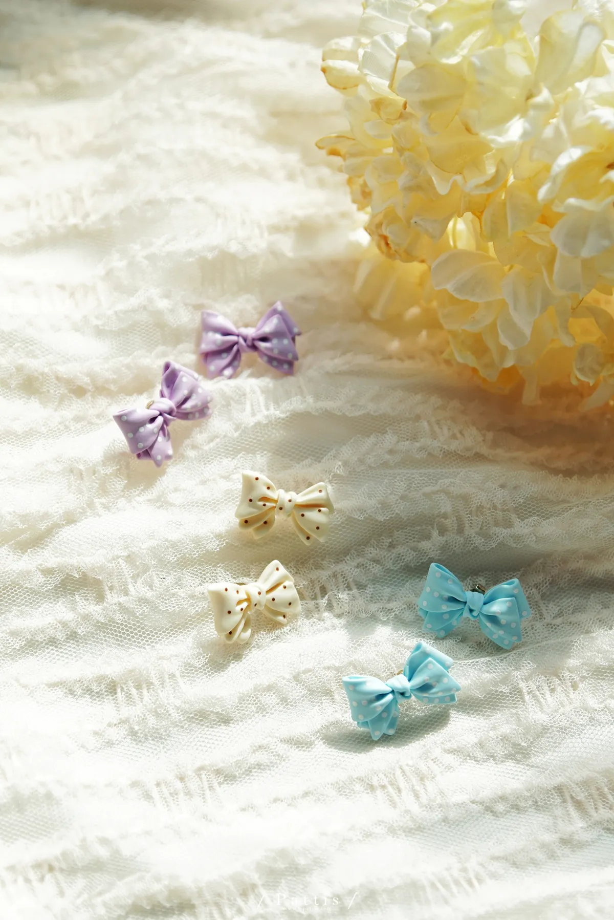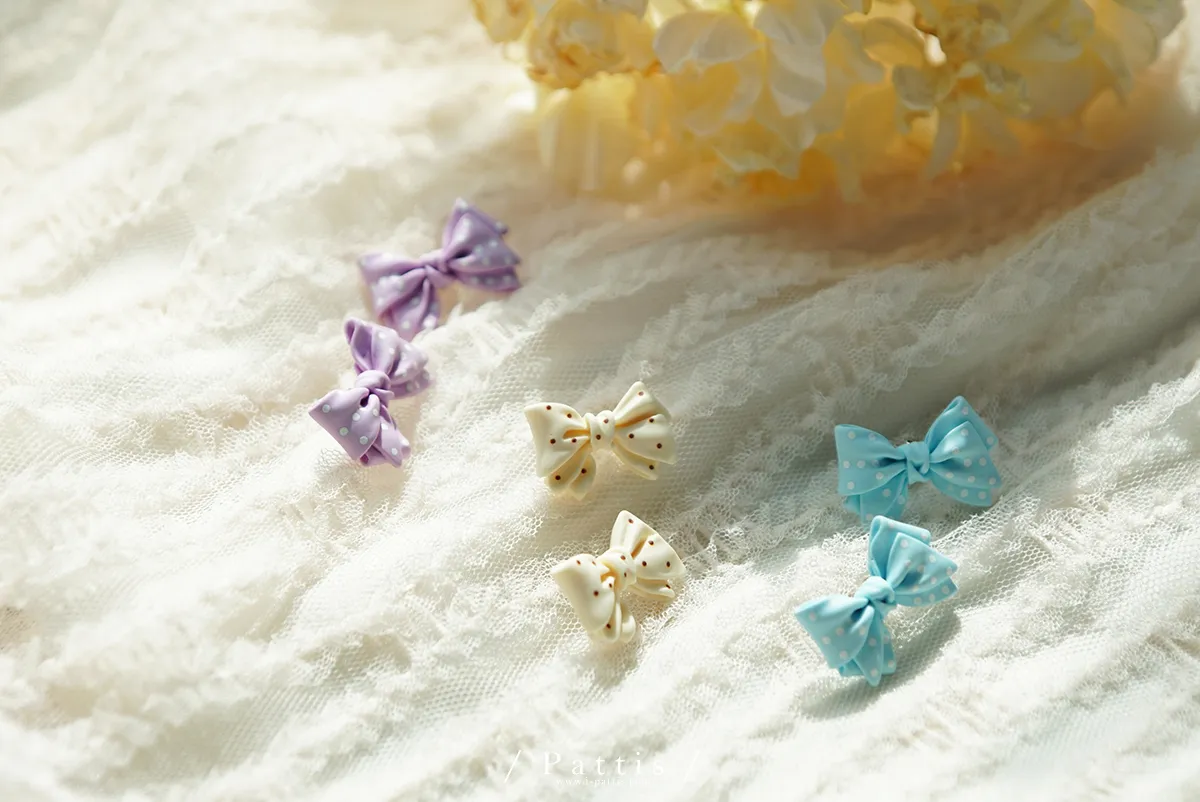 點點立體蝴蝶結耳環(米白/藍/紫)