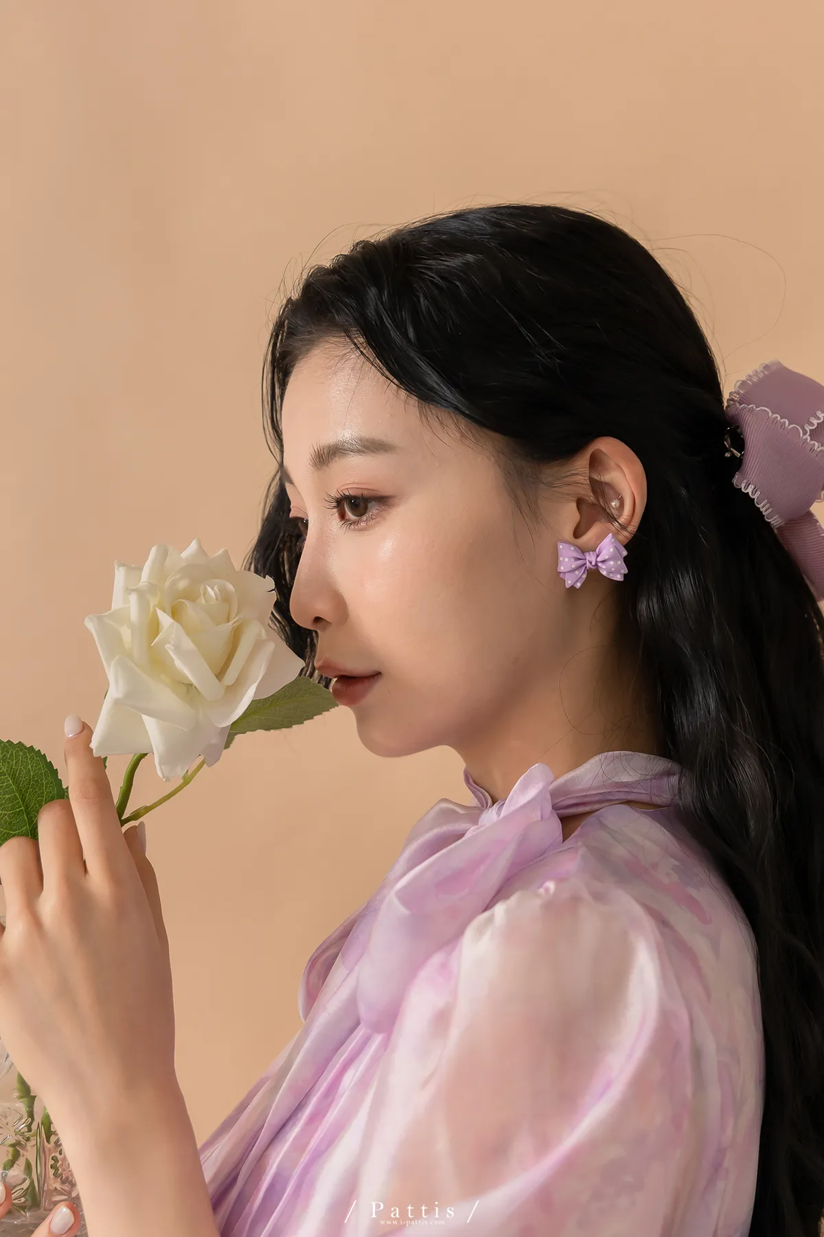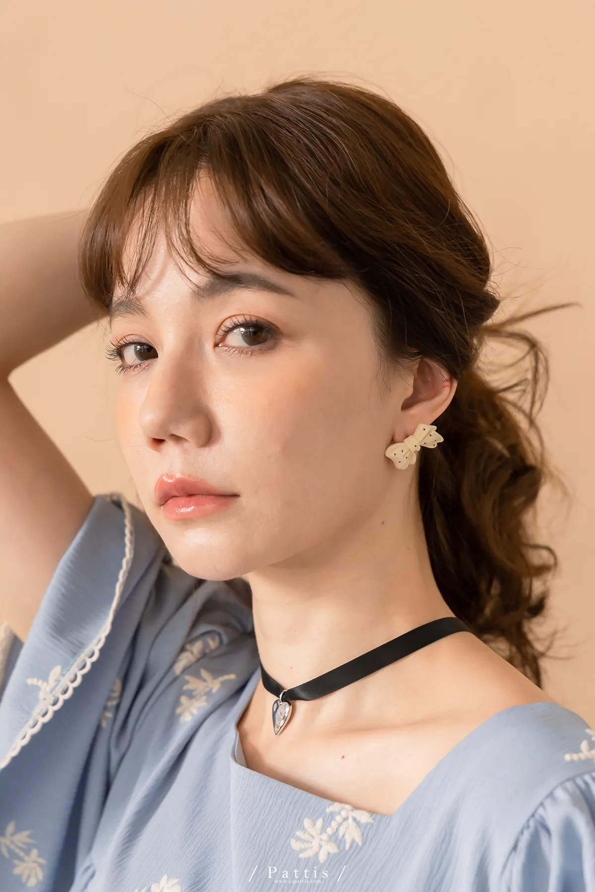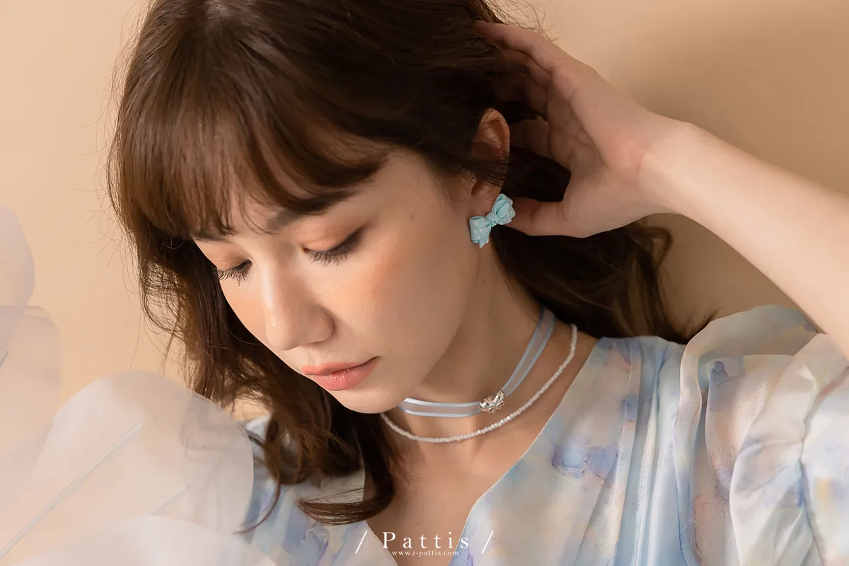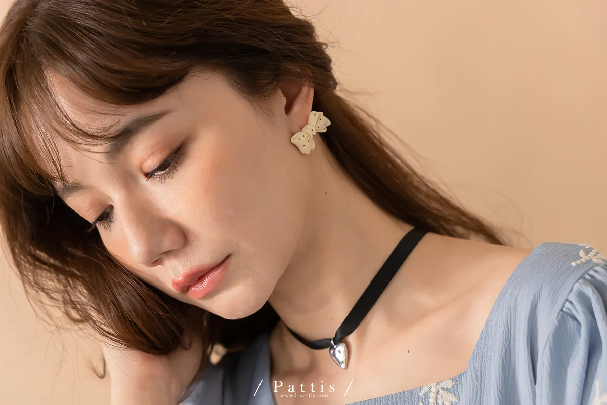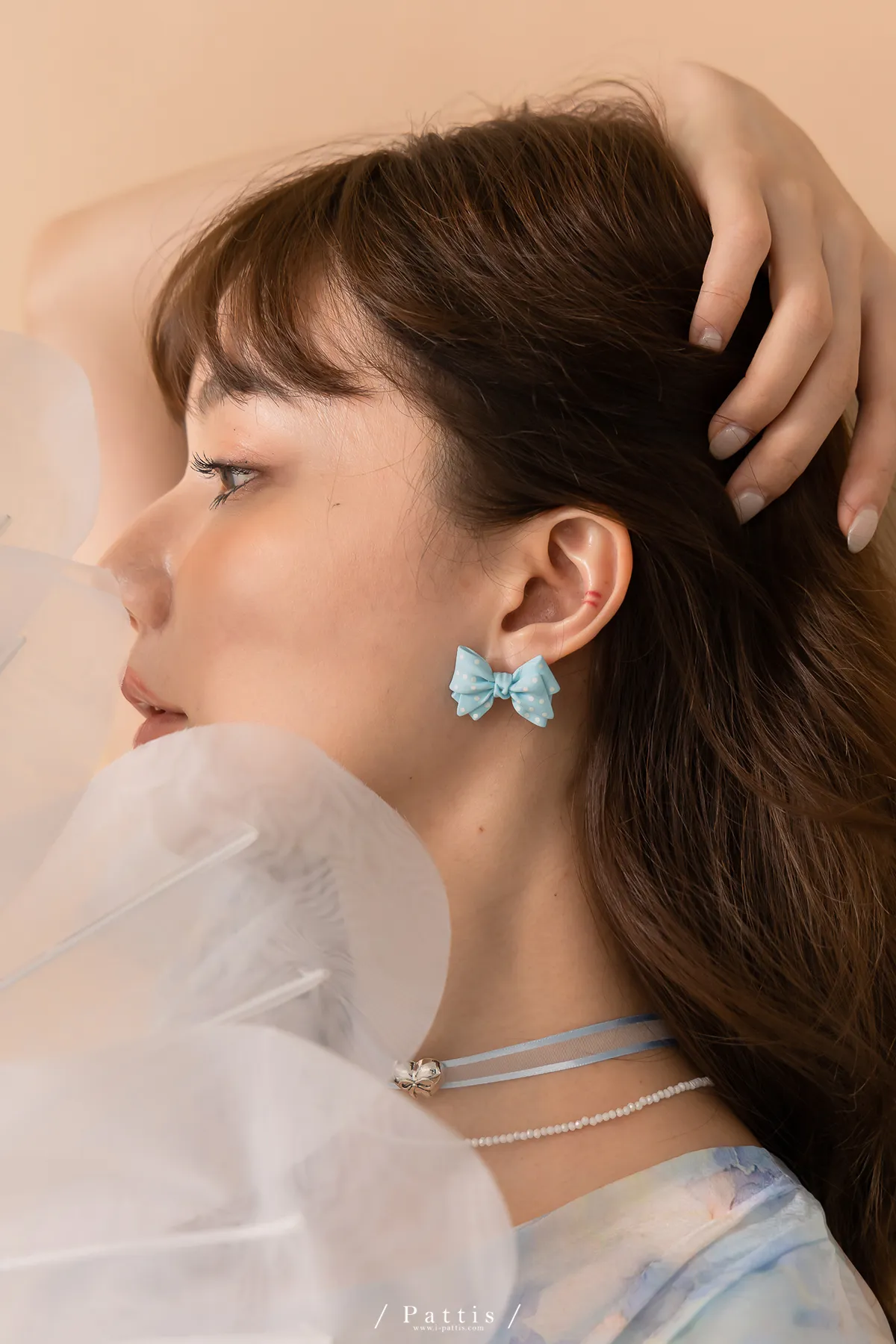 點點立體蝴蝶結耳環(米白/藍/紫)