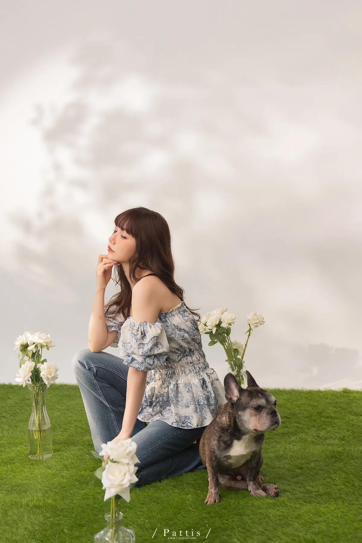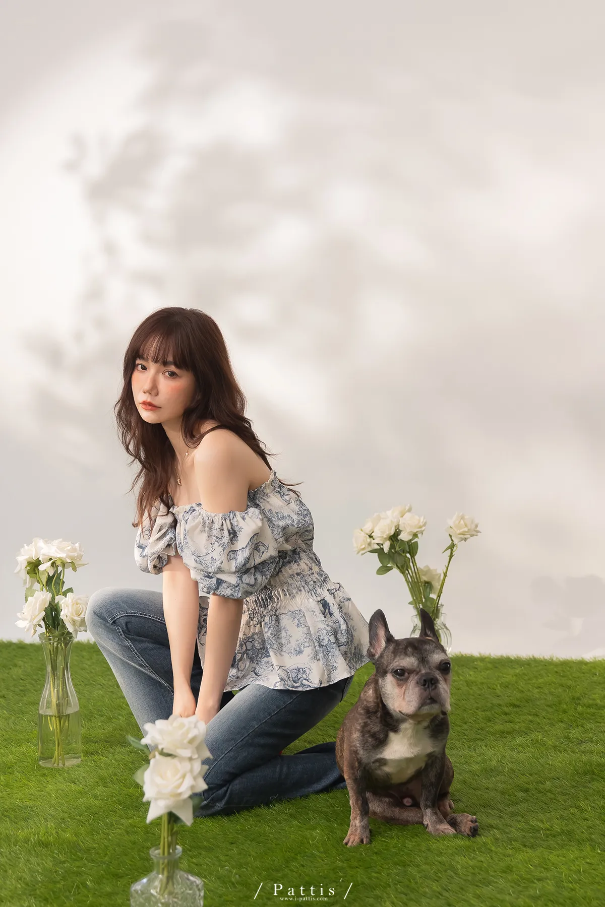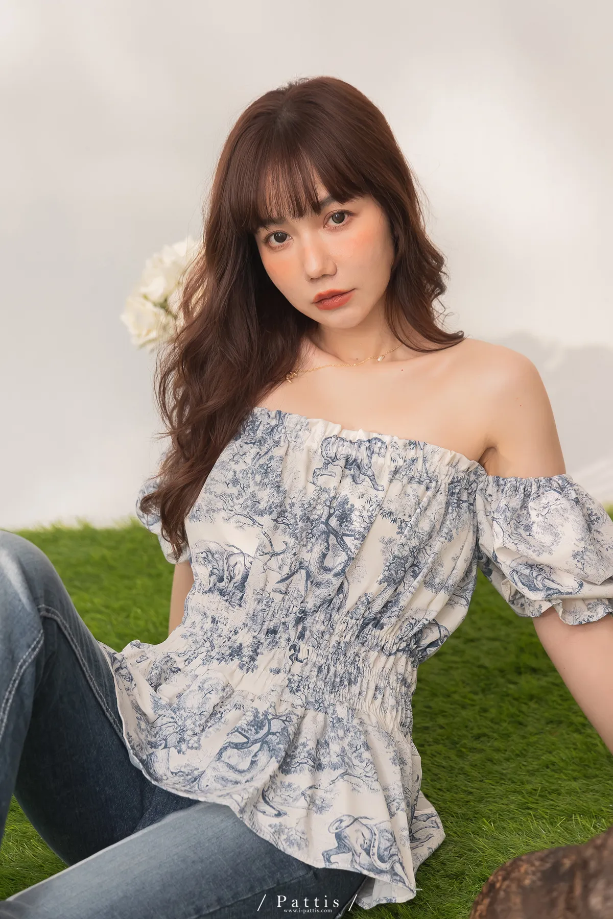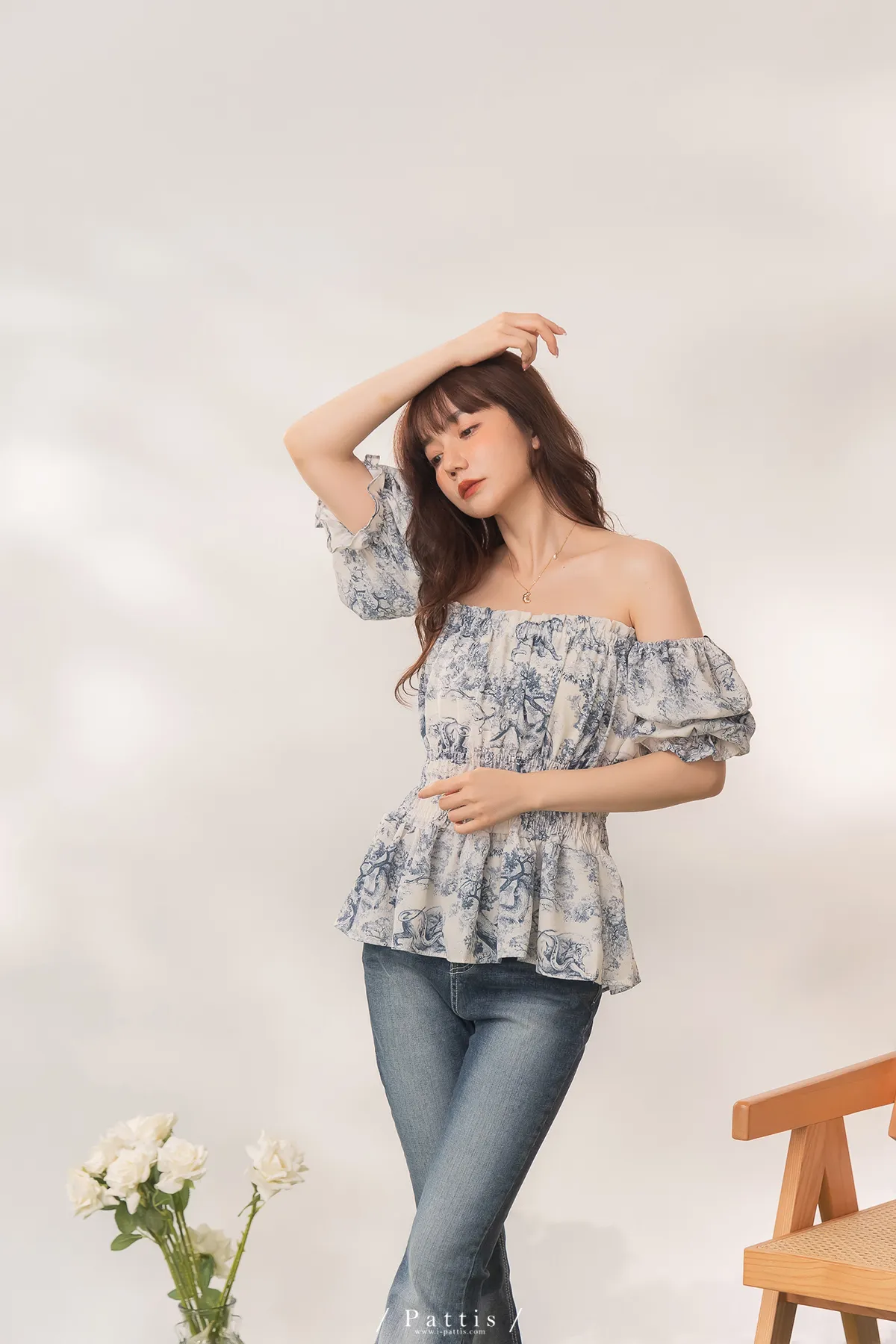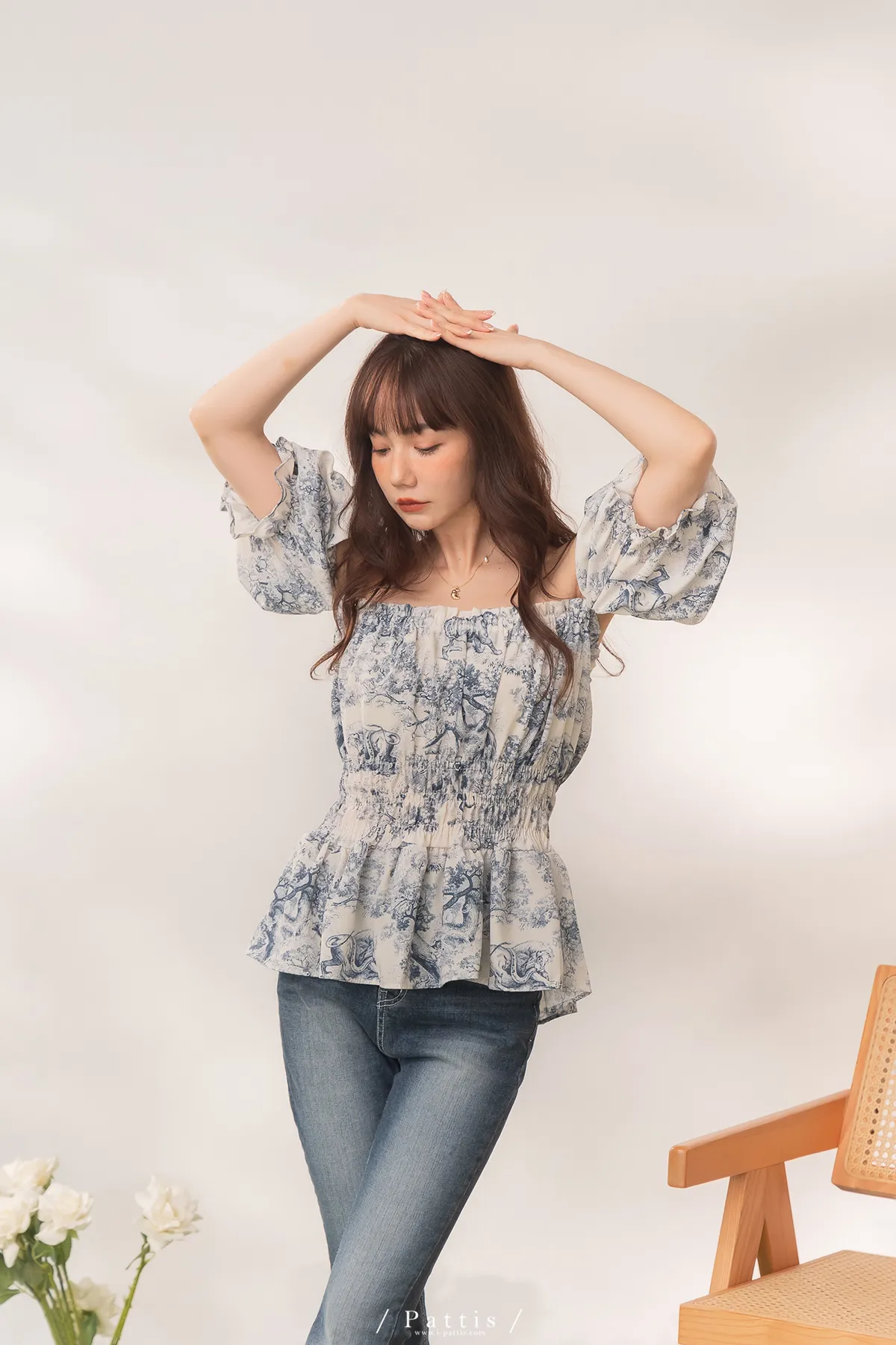 自律的優雅份子 | 2way束腰手繪感動物印花上衣(藍)