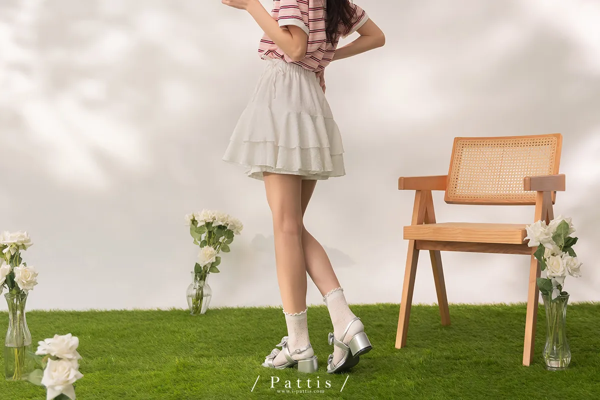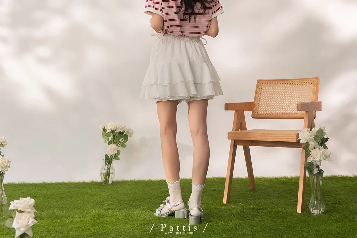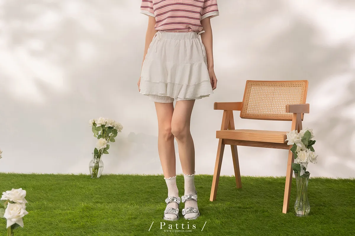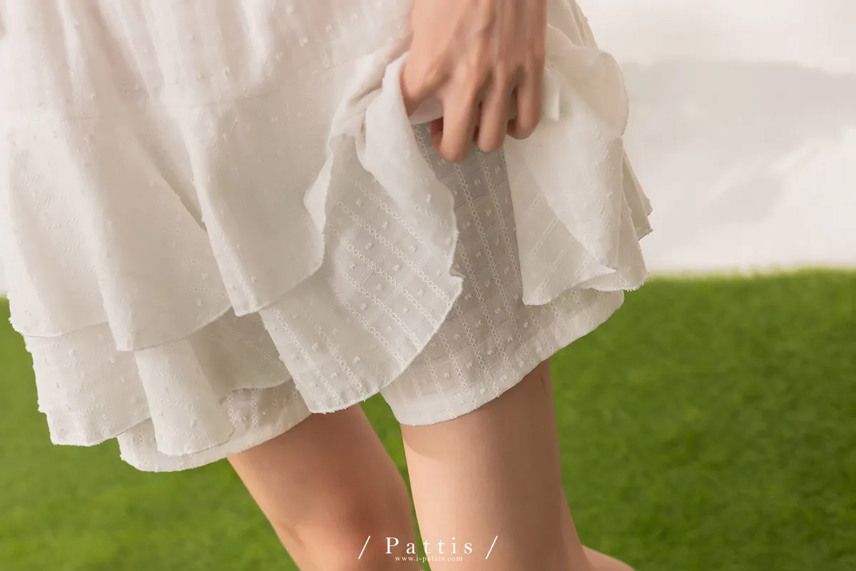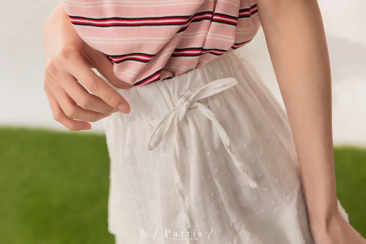 (現貨) 栗子與黑栗奶油塔 | 點點浮雕格紋蛋糕抽繩短褲裙(白)