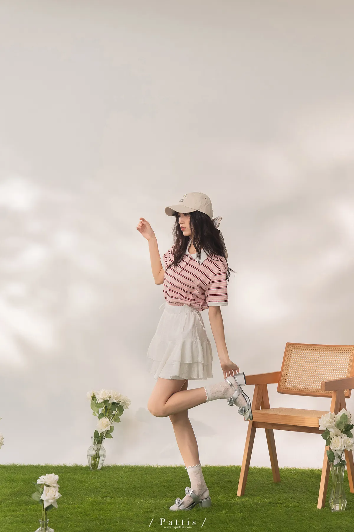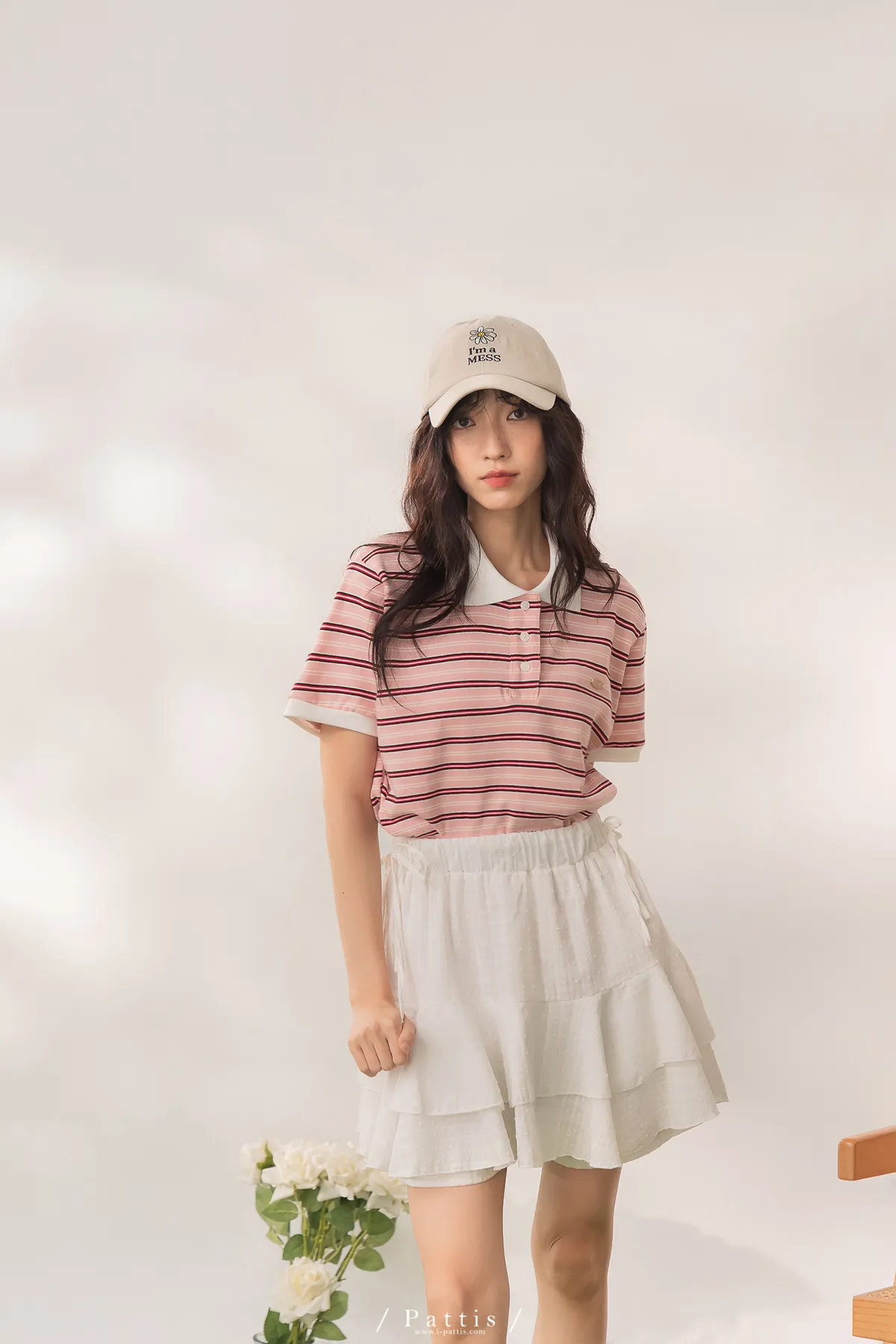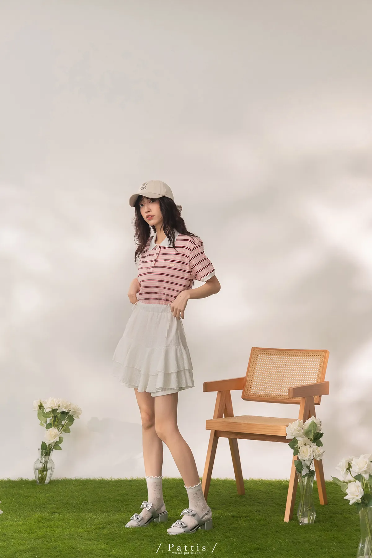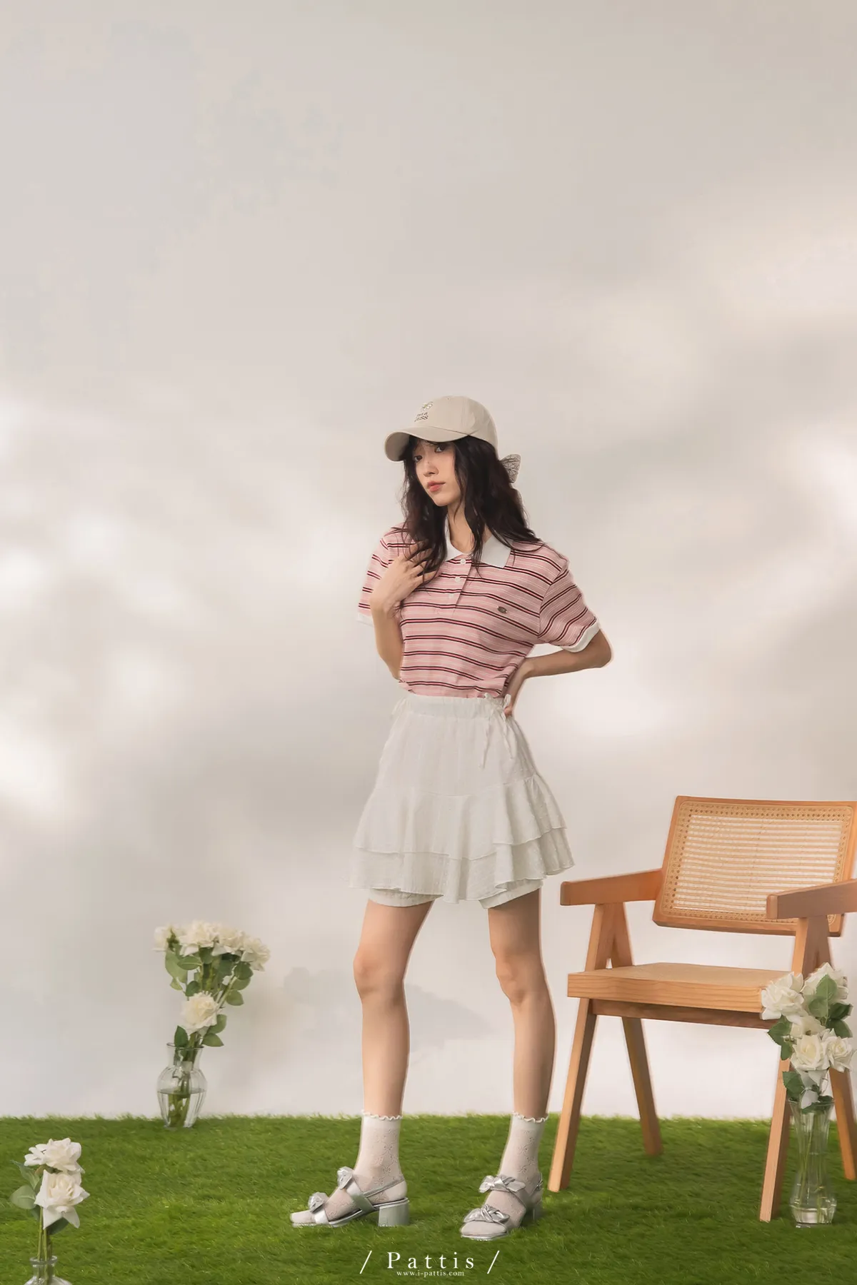 (現貨) 栗子與黑栗奶油塔 | 點點浮雕格紋蛋糕抽繩短褲裙(白)