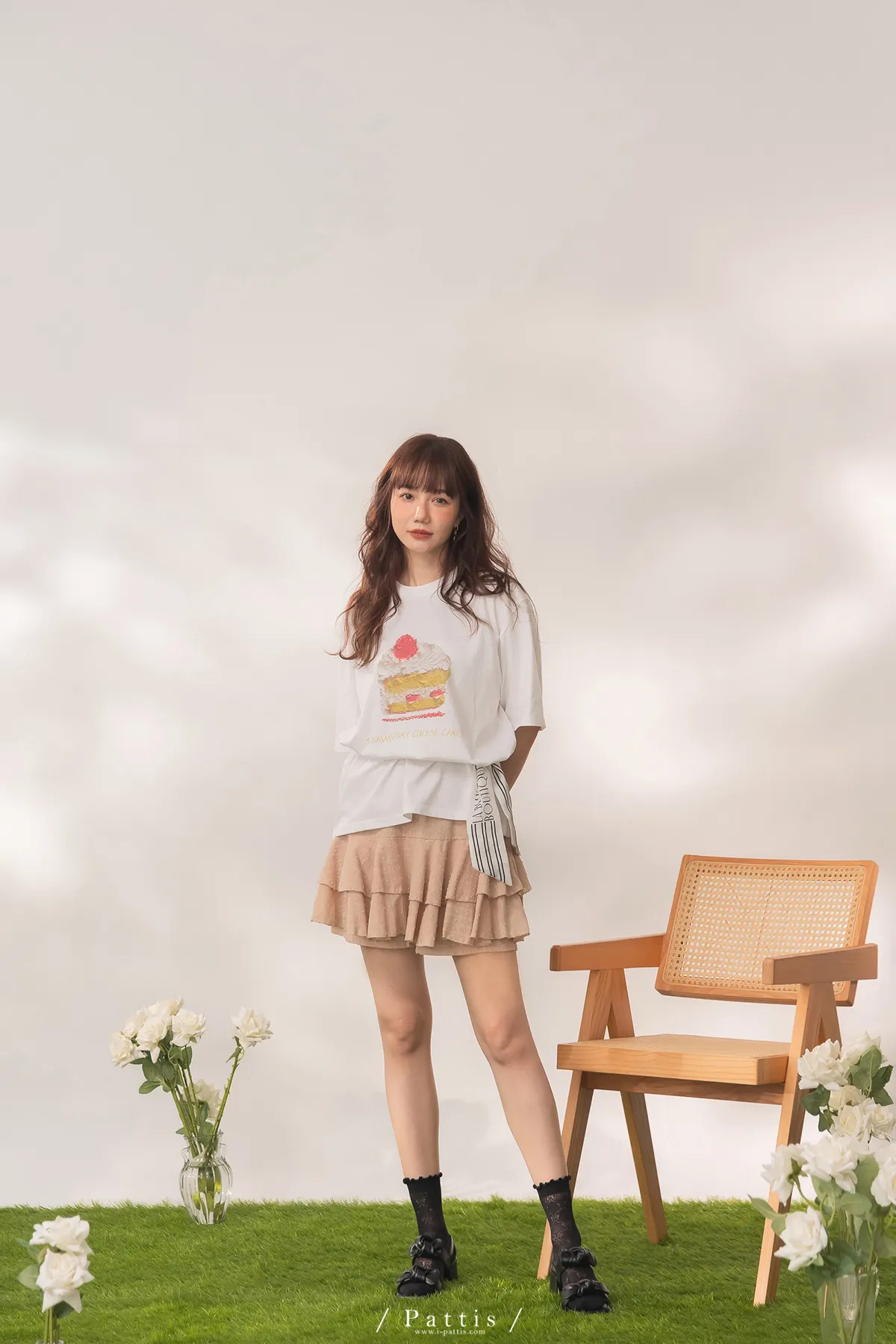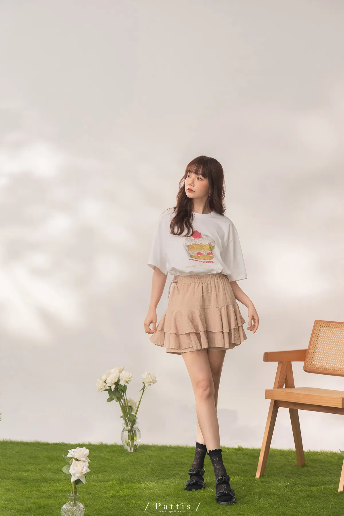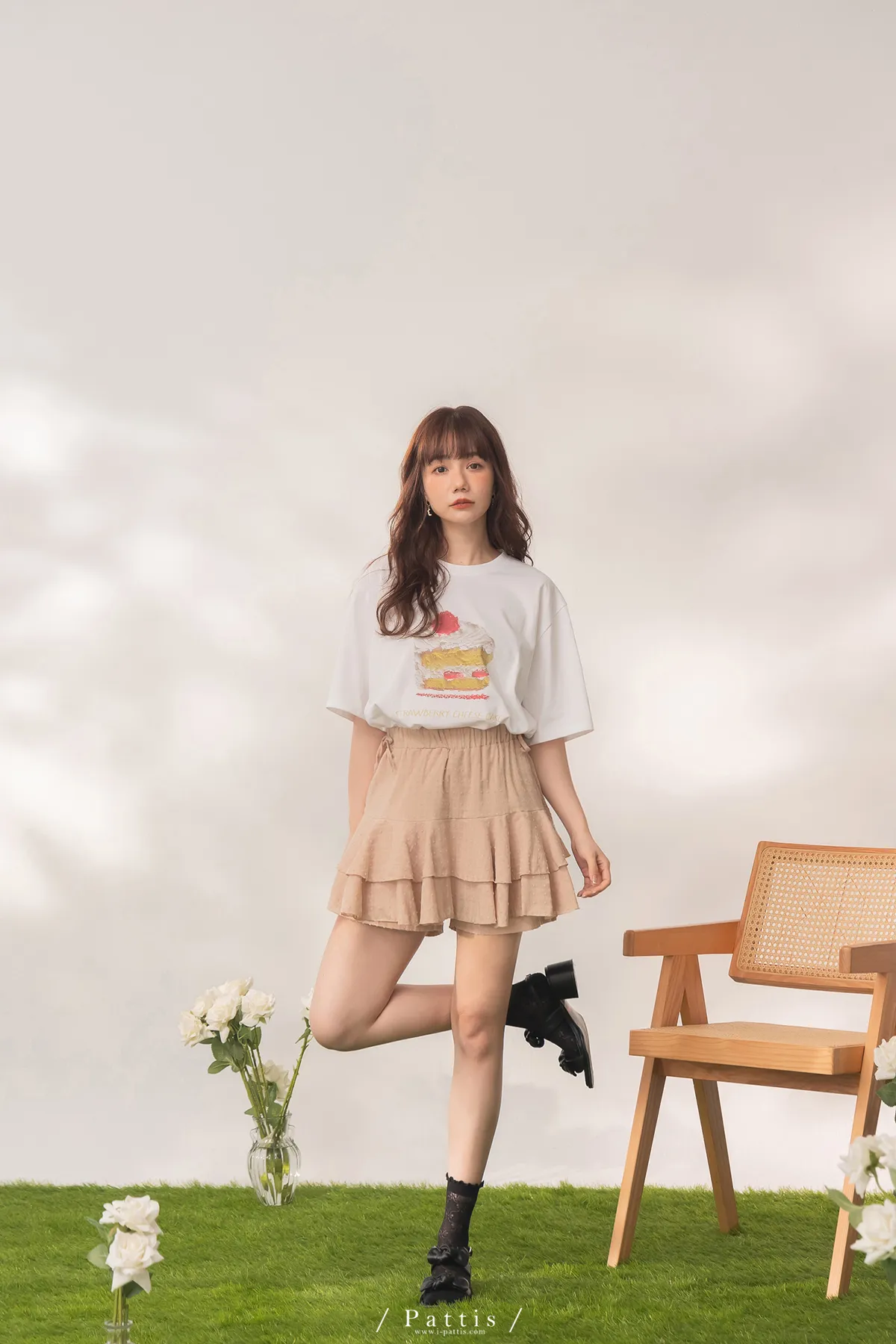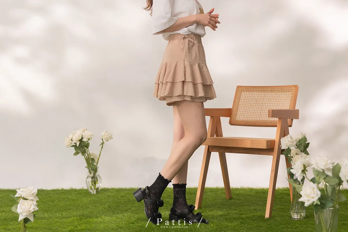 (現貨) 栗子與黑栗奶油塔 | 點點浮雕格紋蛋糕抽繩短褲裙(奶茶棕)