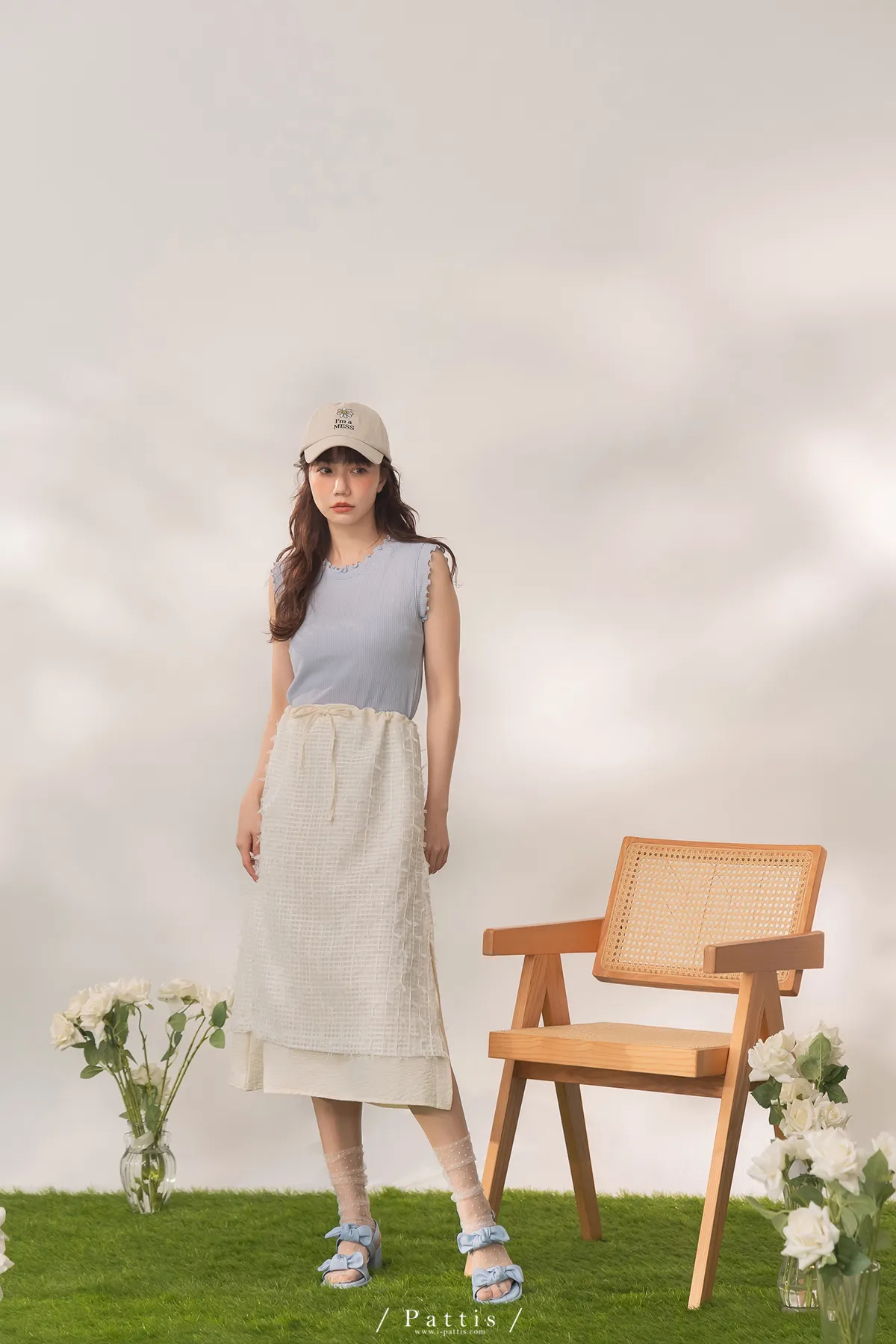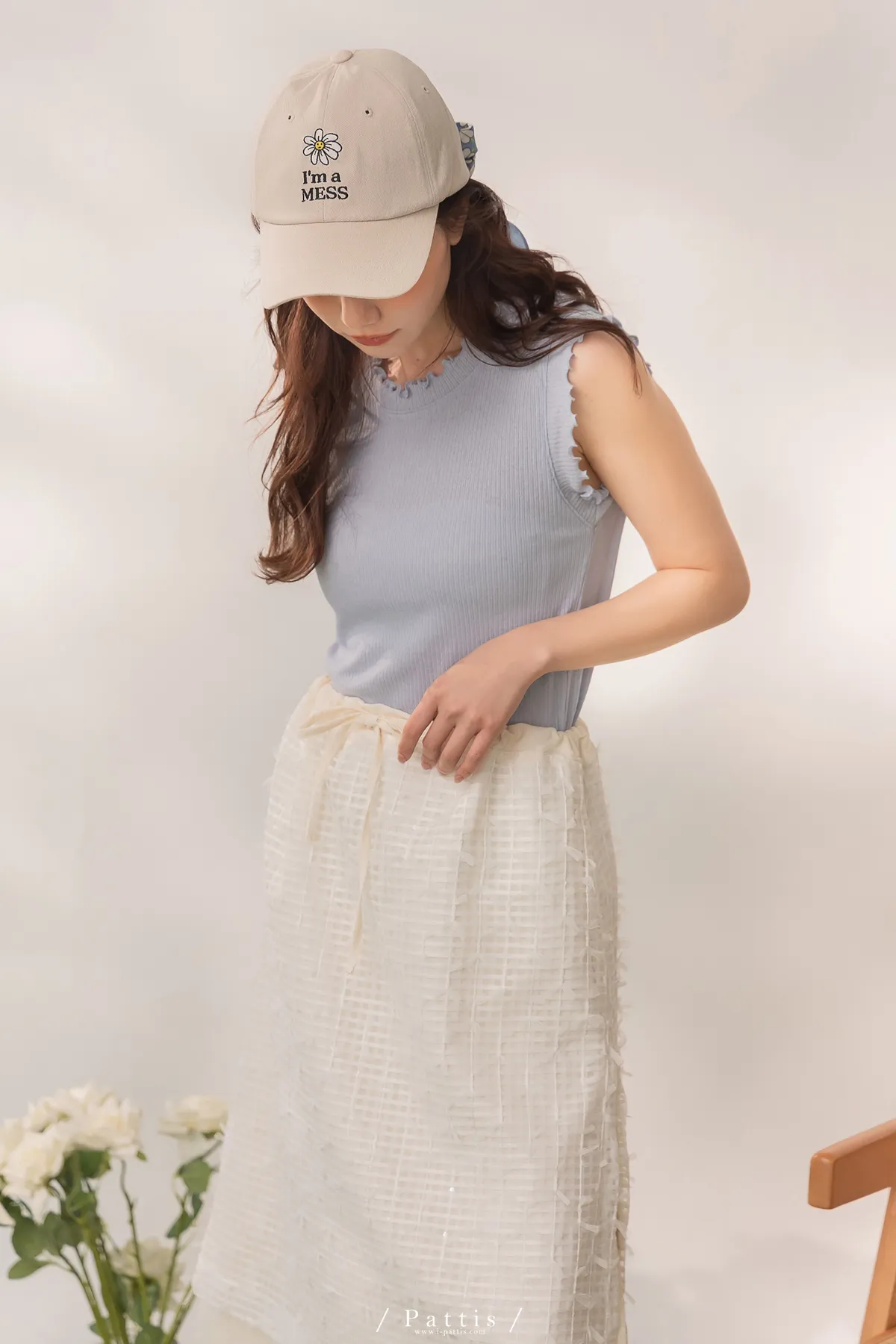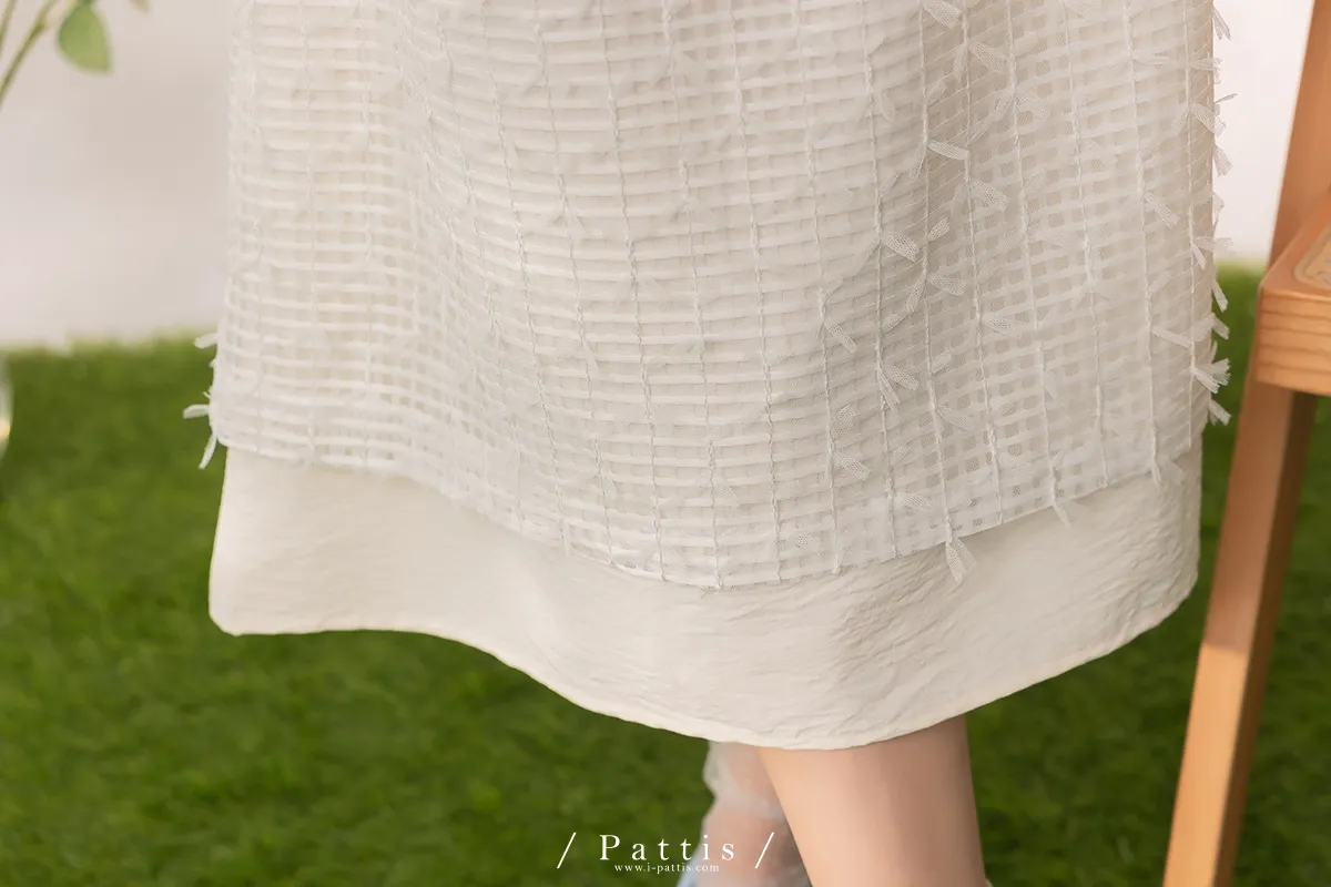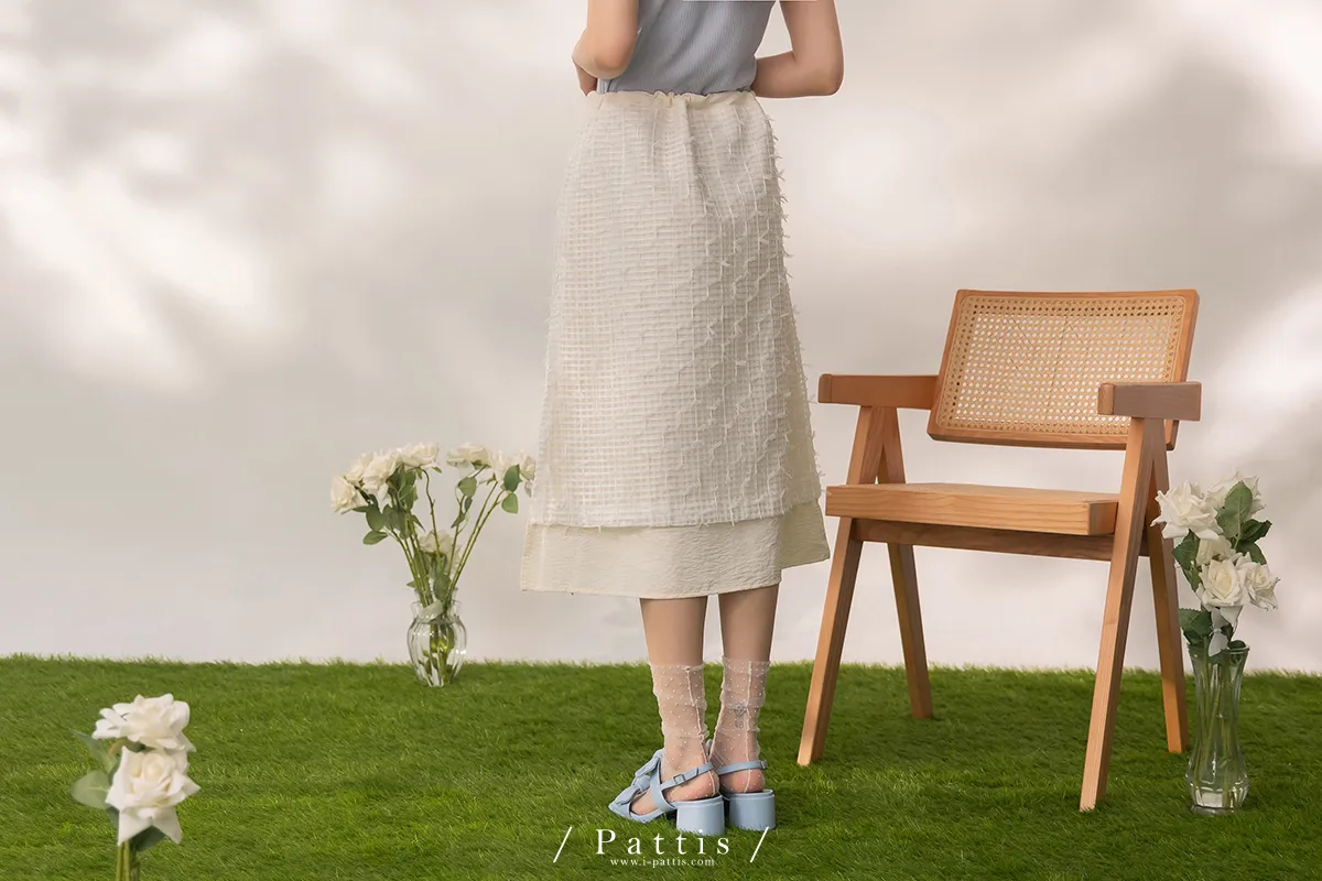 (現貨) 邱比特留下的痕跡 | 側開衩格紋綴亮片立體網紗抽繩裙(米白)