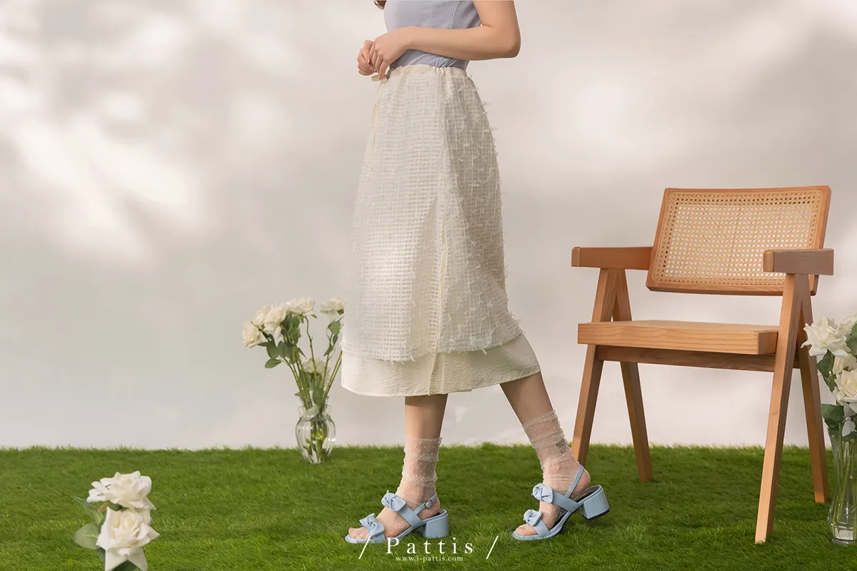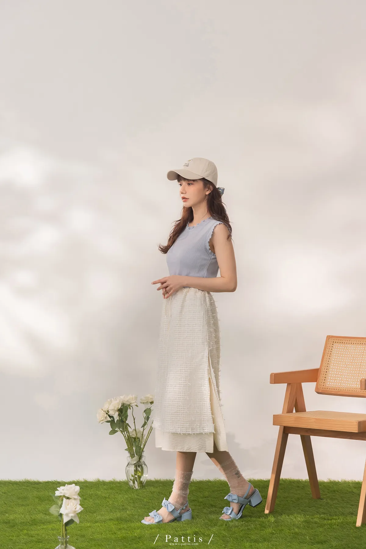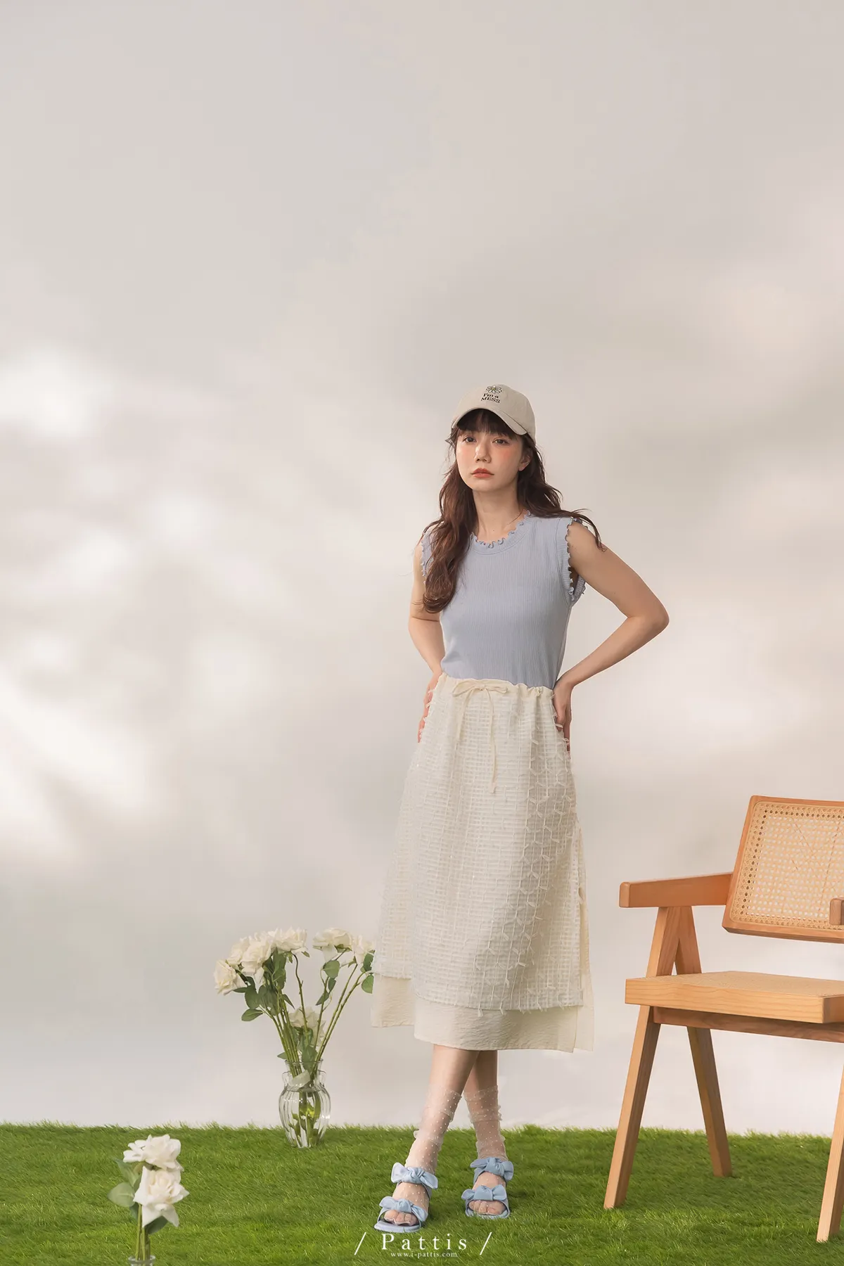 (現貨) 邱比特留下的痕跡 | 側開衩格紋綴亮片立體網紗抽繩裙(米白)