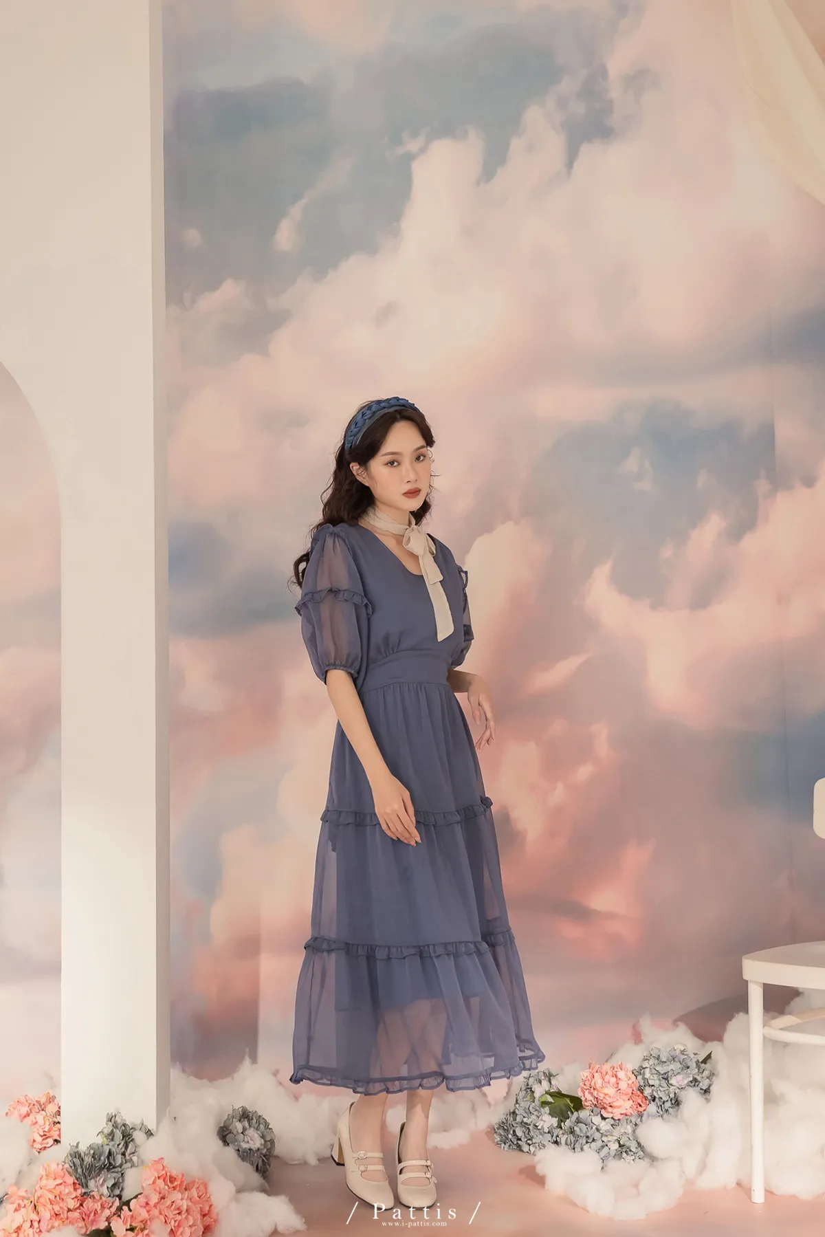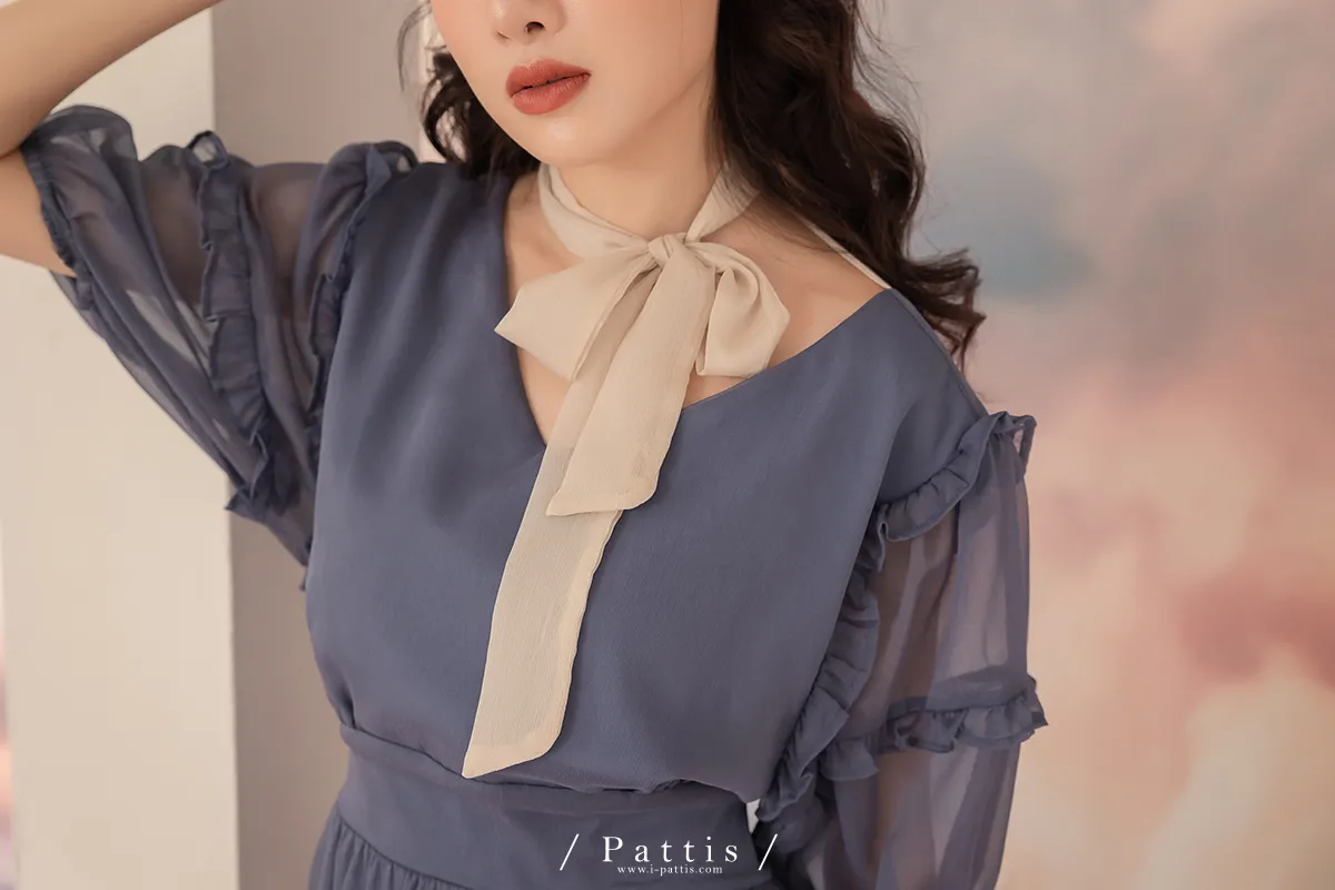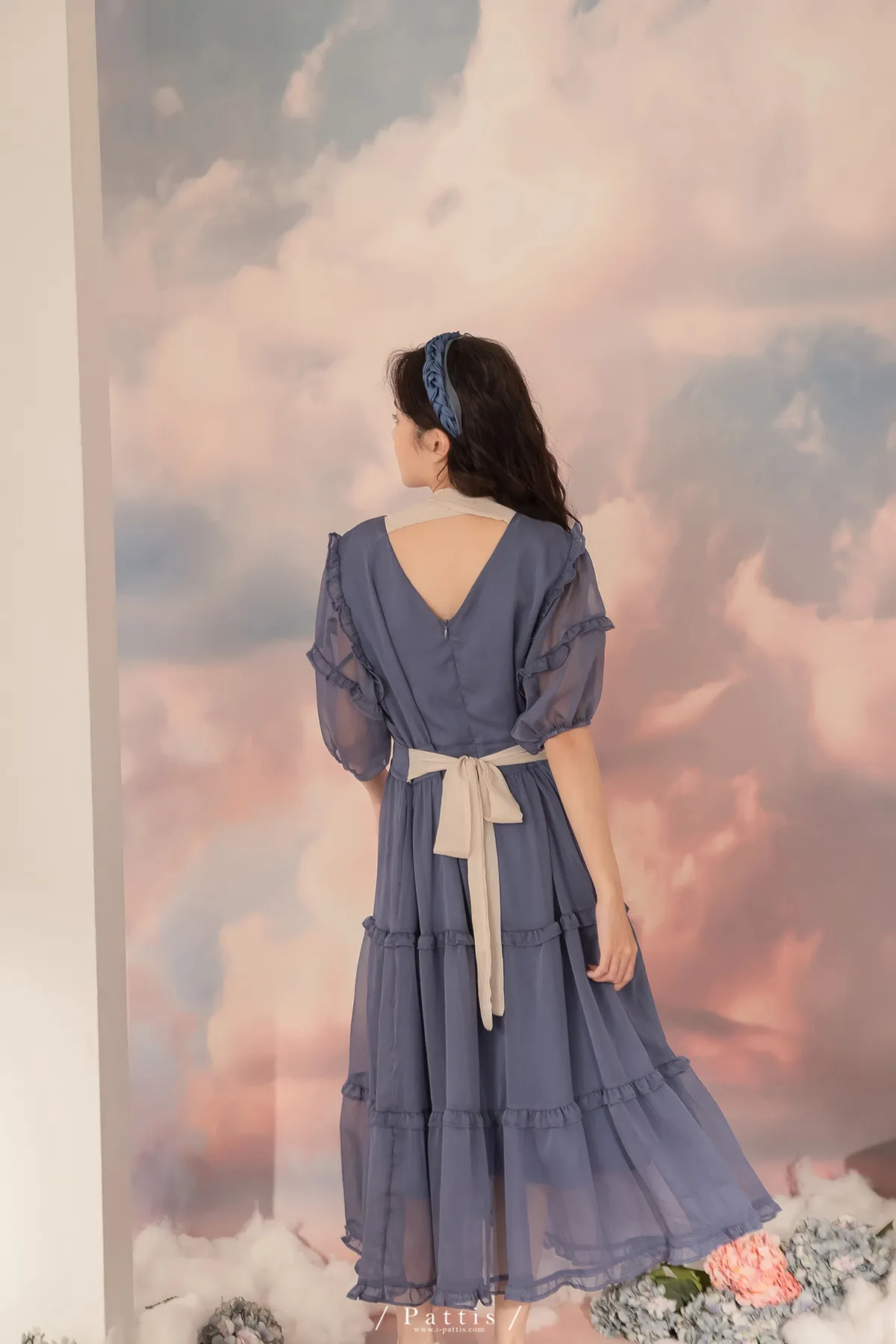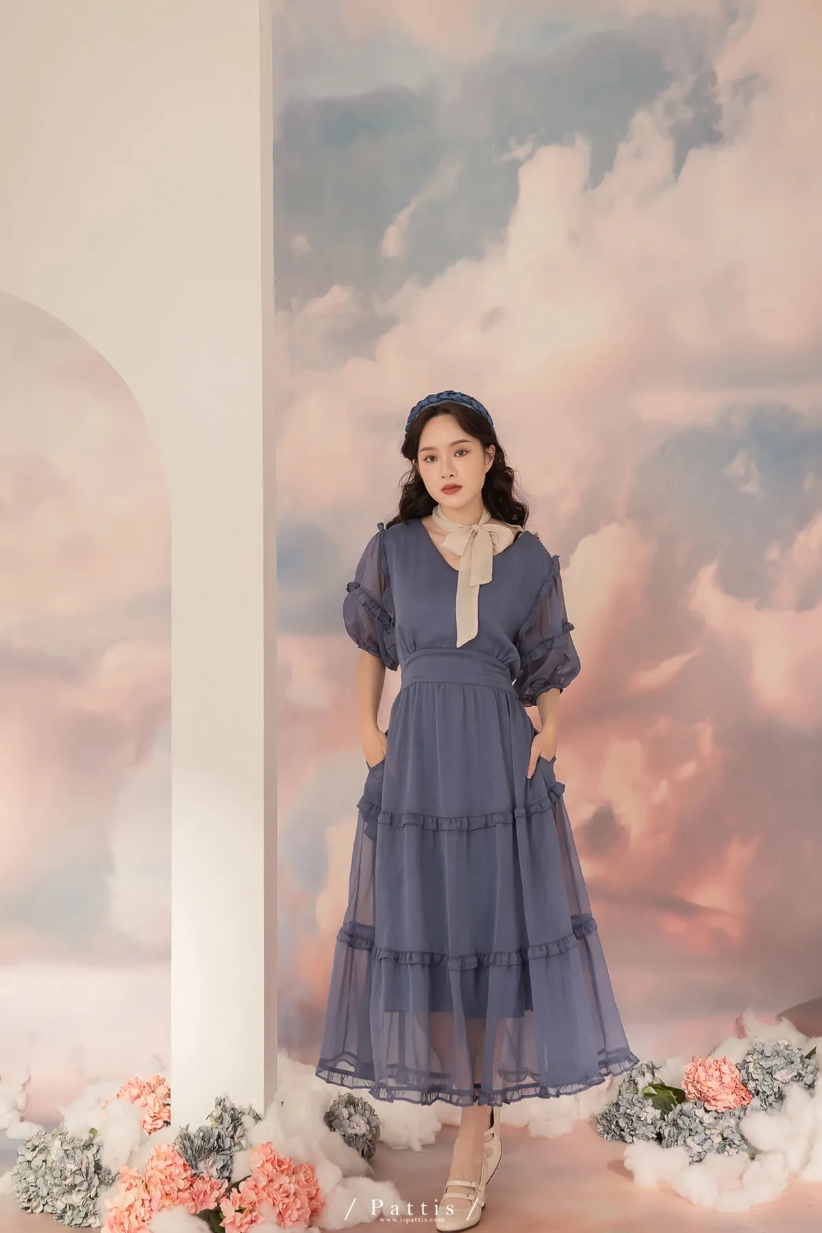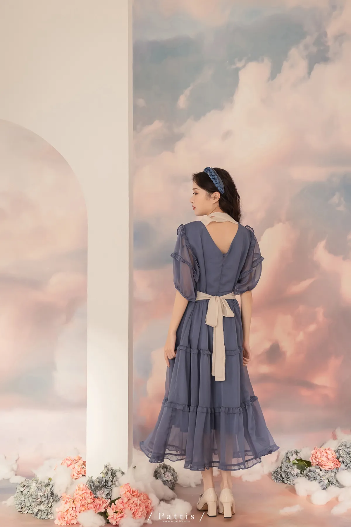 最初的但丁情詩 | 多way雙蝴蝶結V領荷葉洋裝(矢車菊藍)