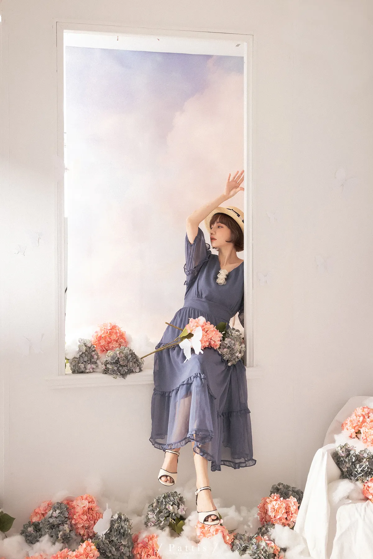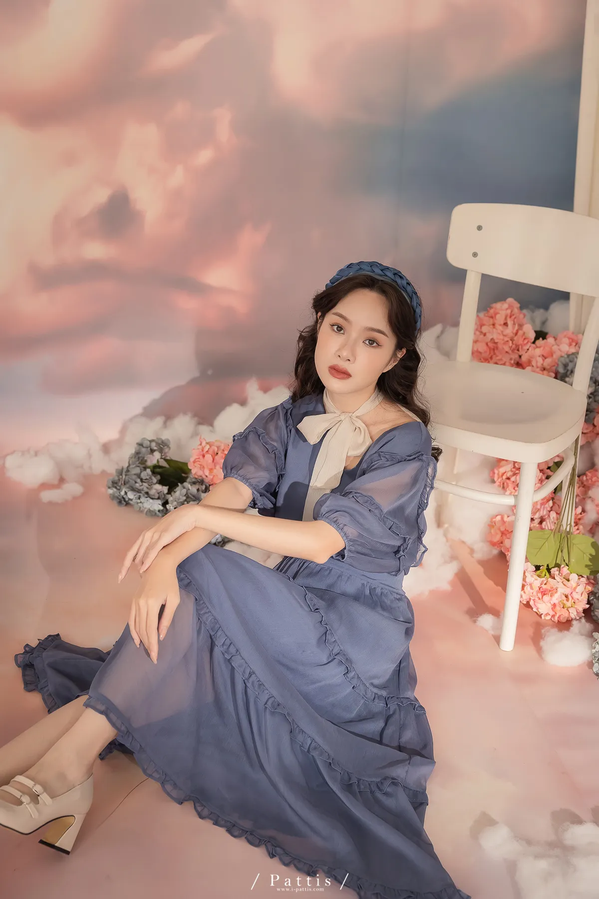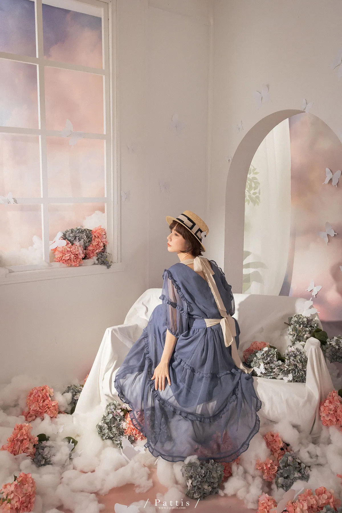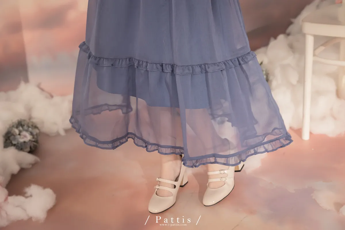 最初的但丁情詩 | 多way雙蝴蝶結V領荷葉洋裝(矢車菊藍)