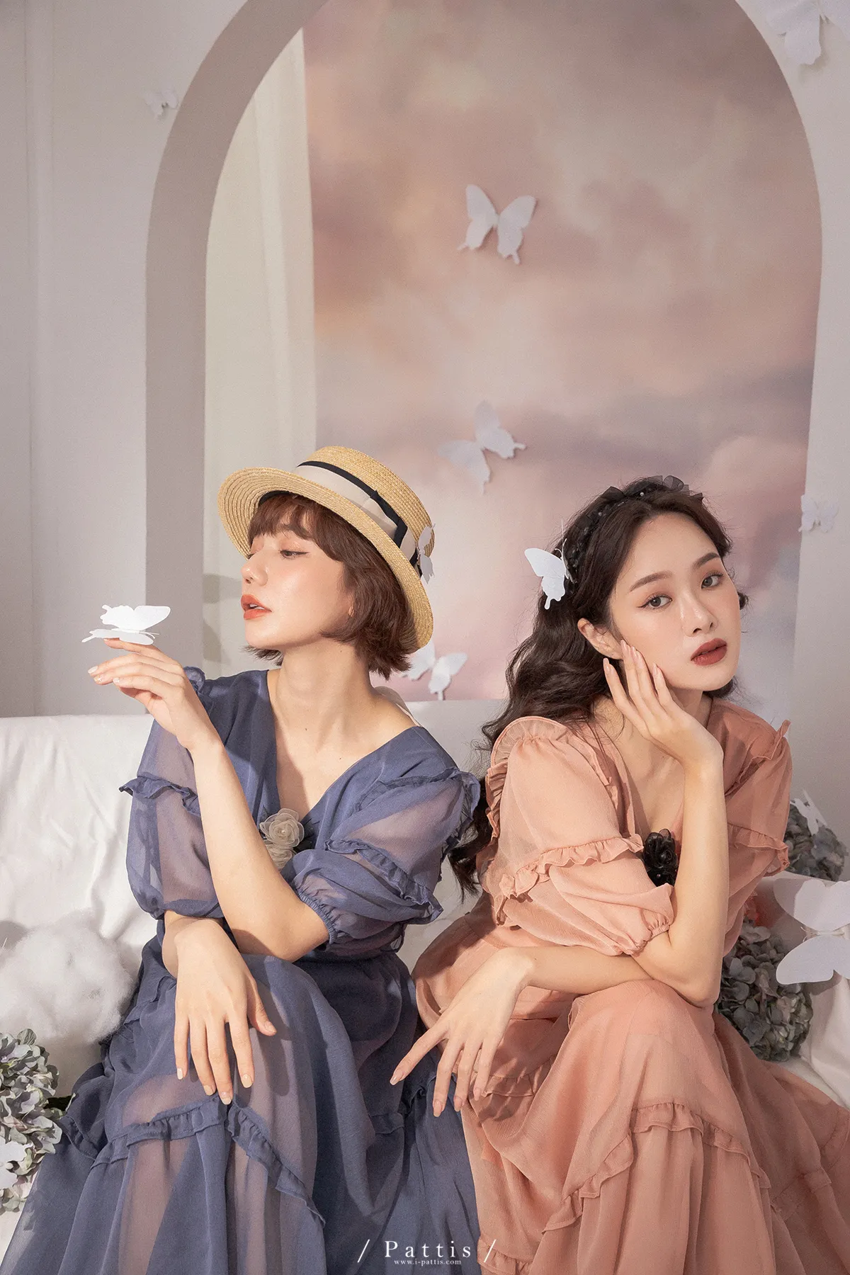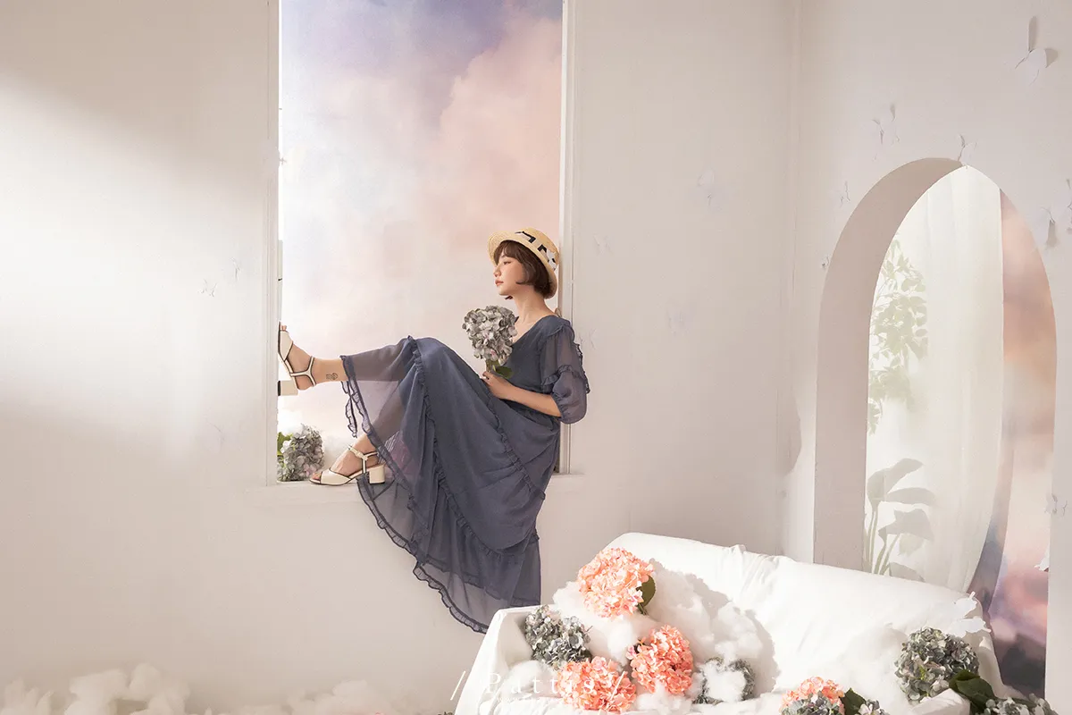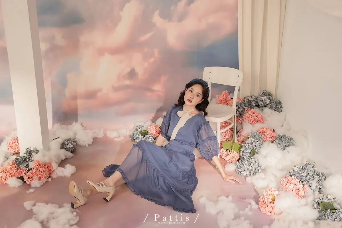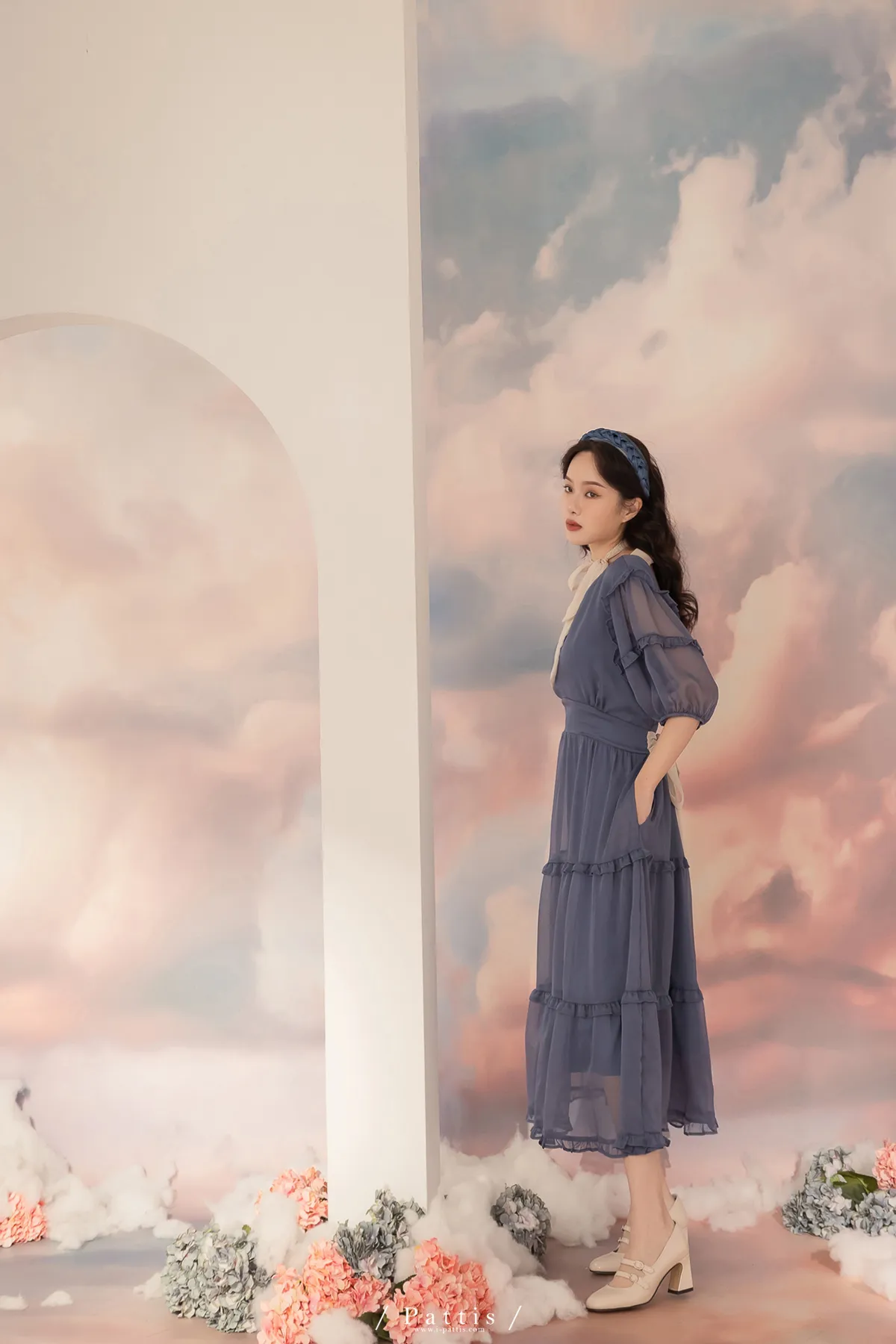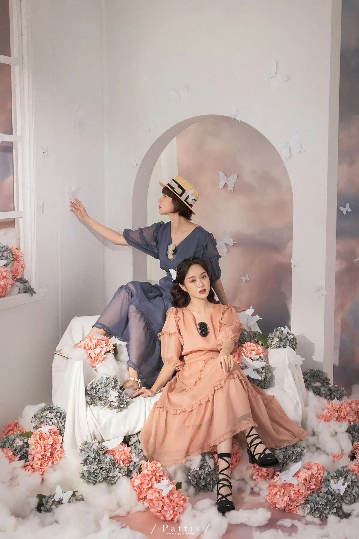最初的但丁情詩 | 多way雙蝴蝶結V領荷葉洋裝(矢車菊藍)