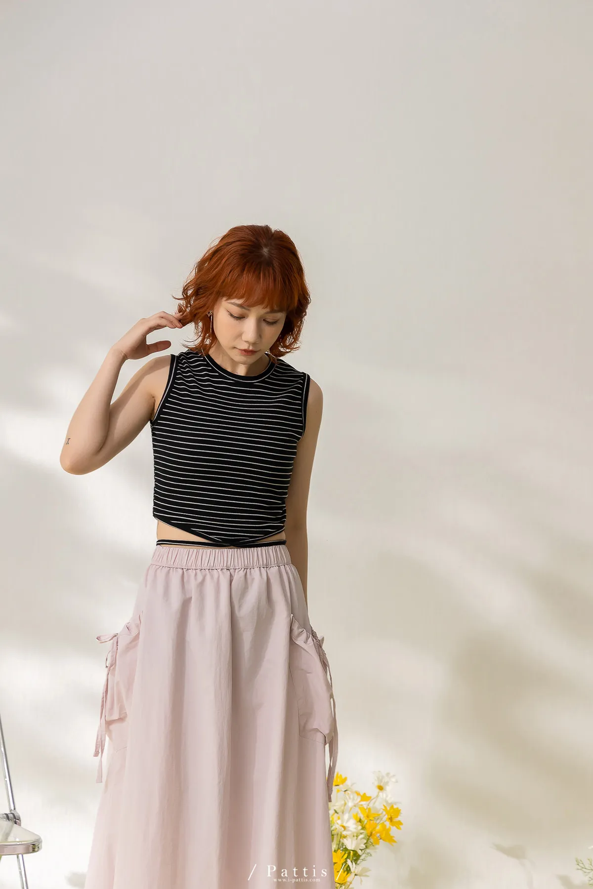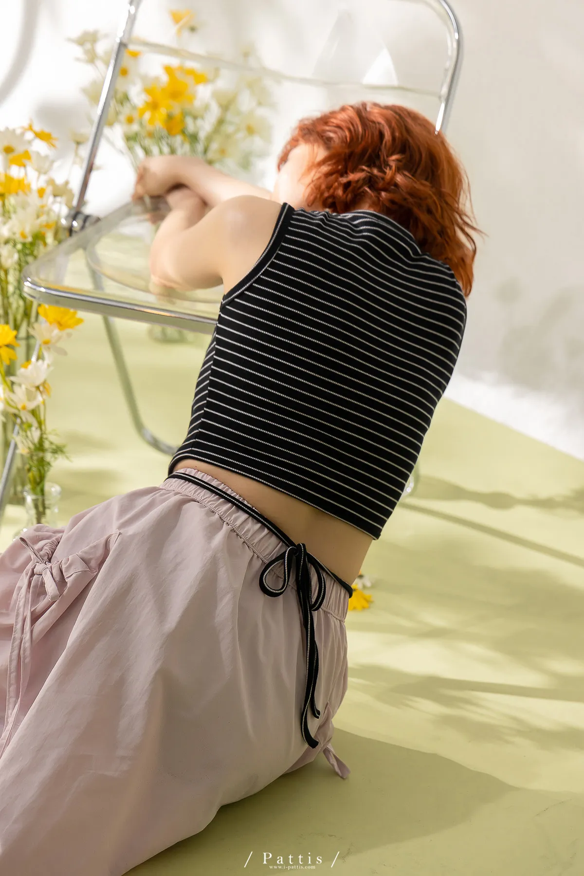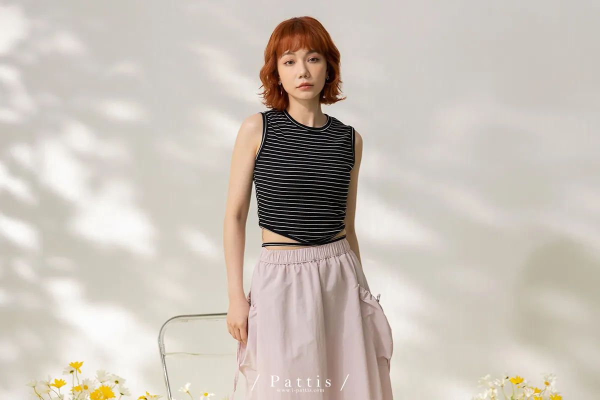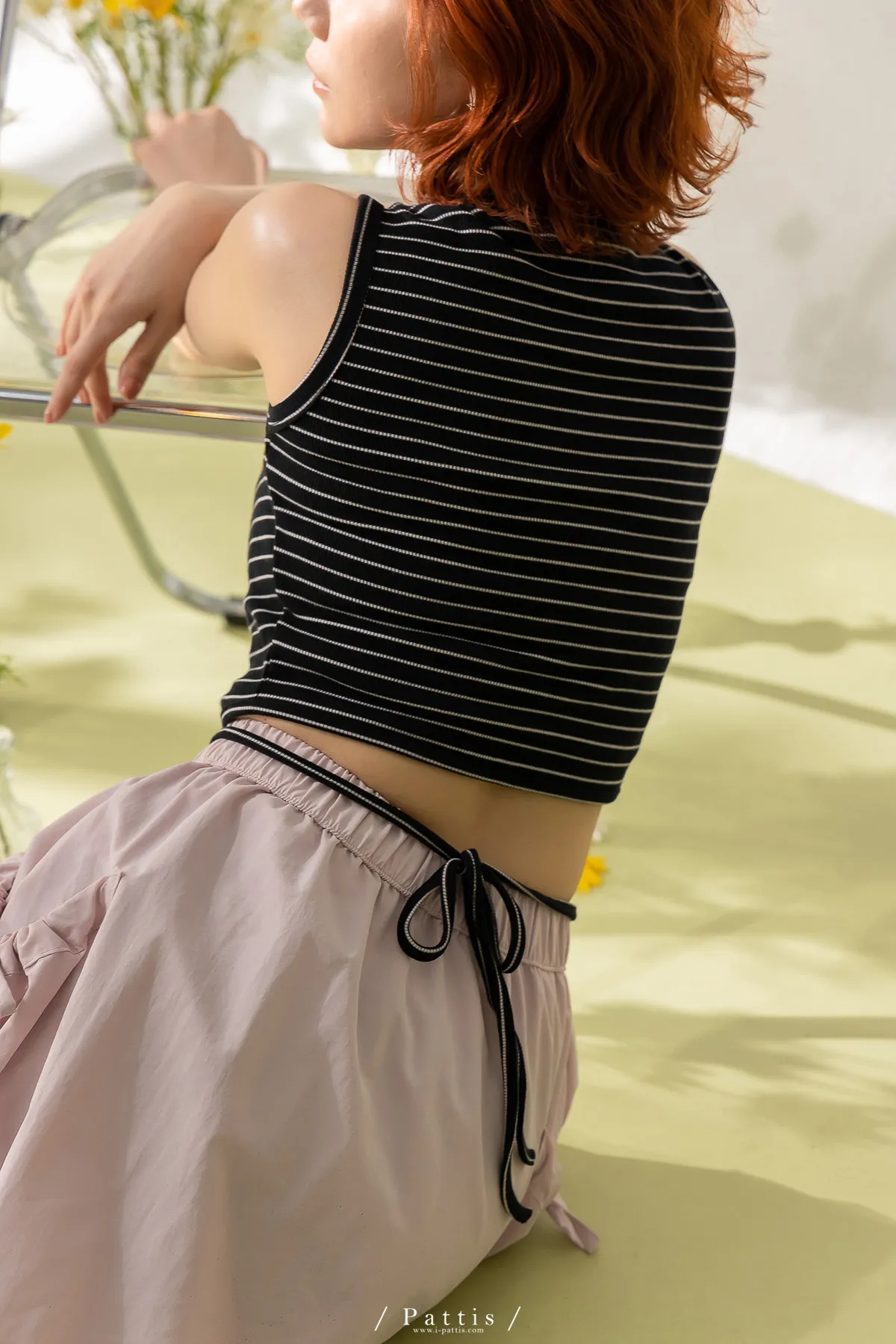 燕尾軌跡 | 尖尾腰綁帶條紋背心(黑)