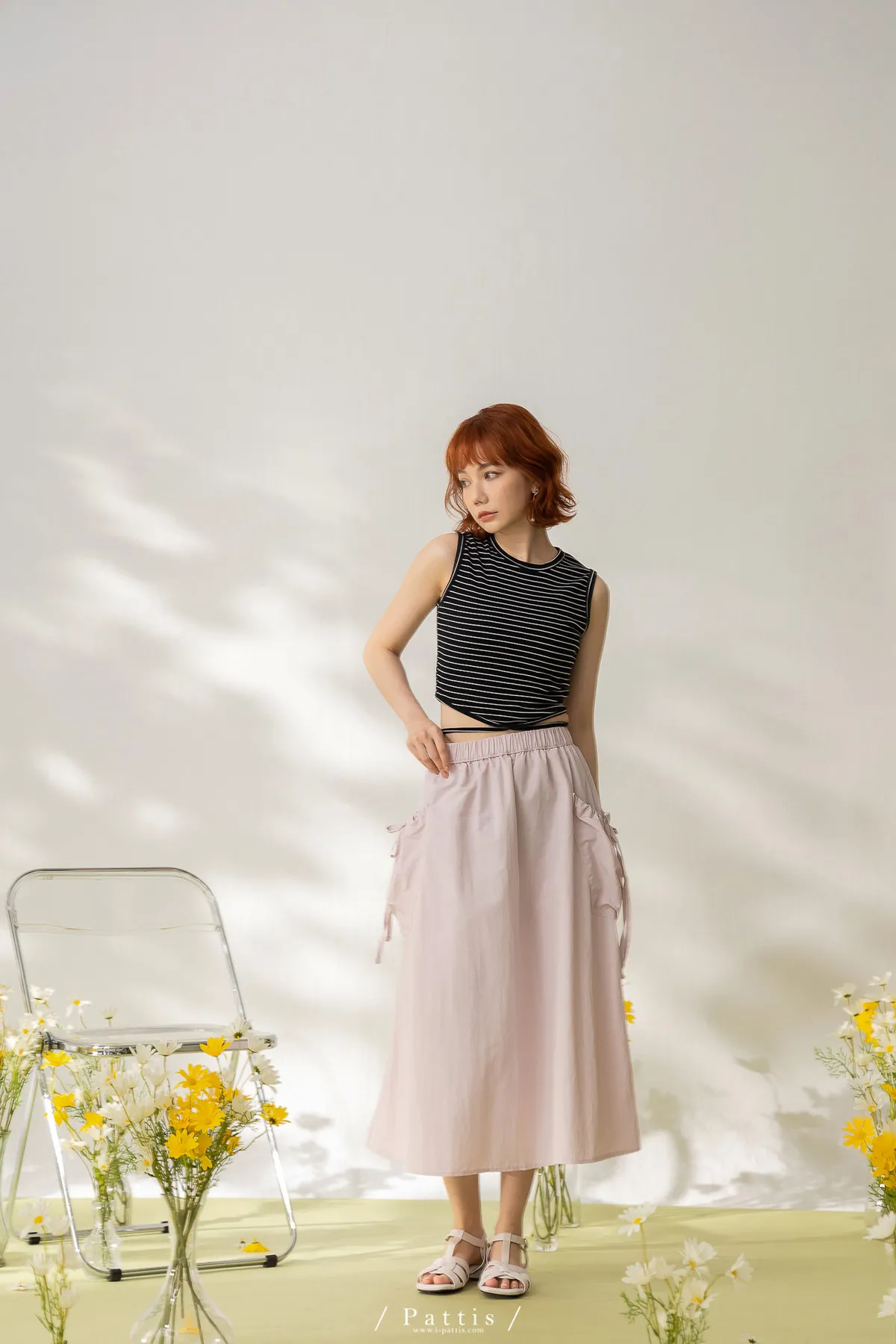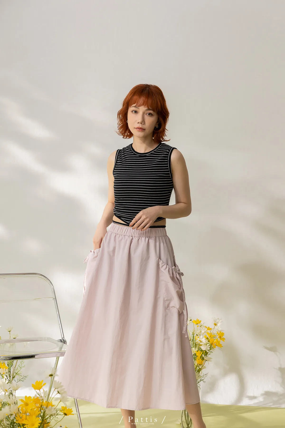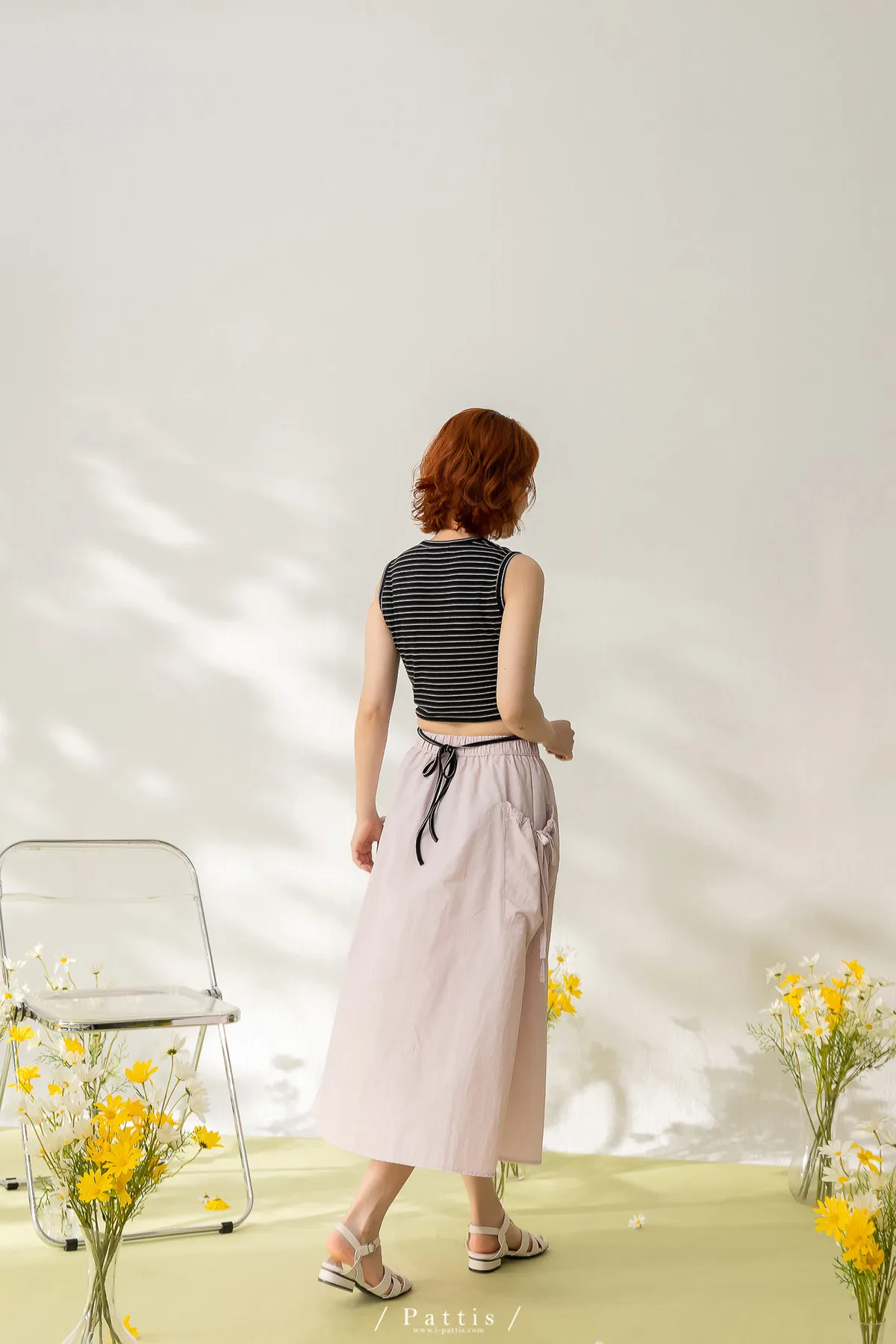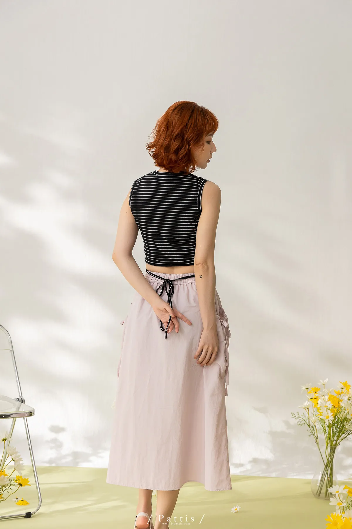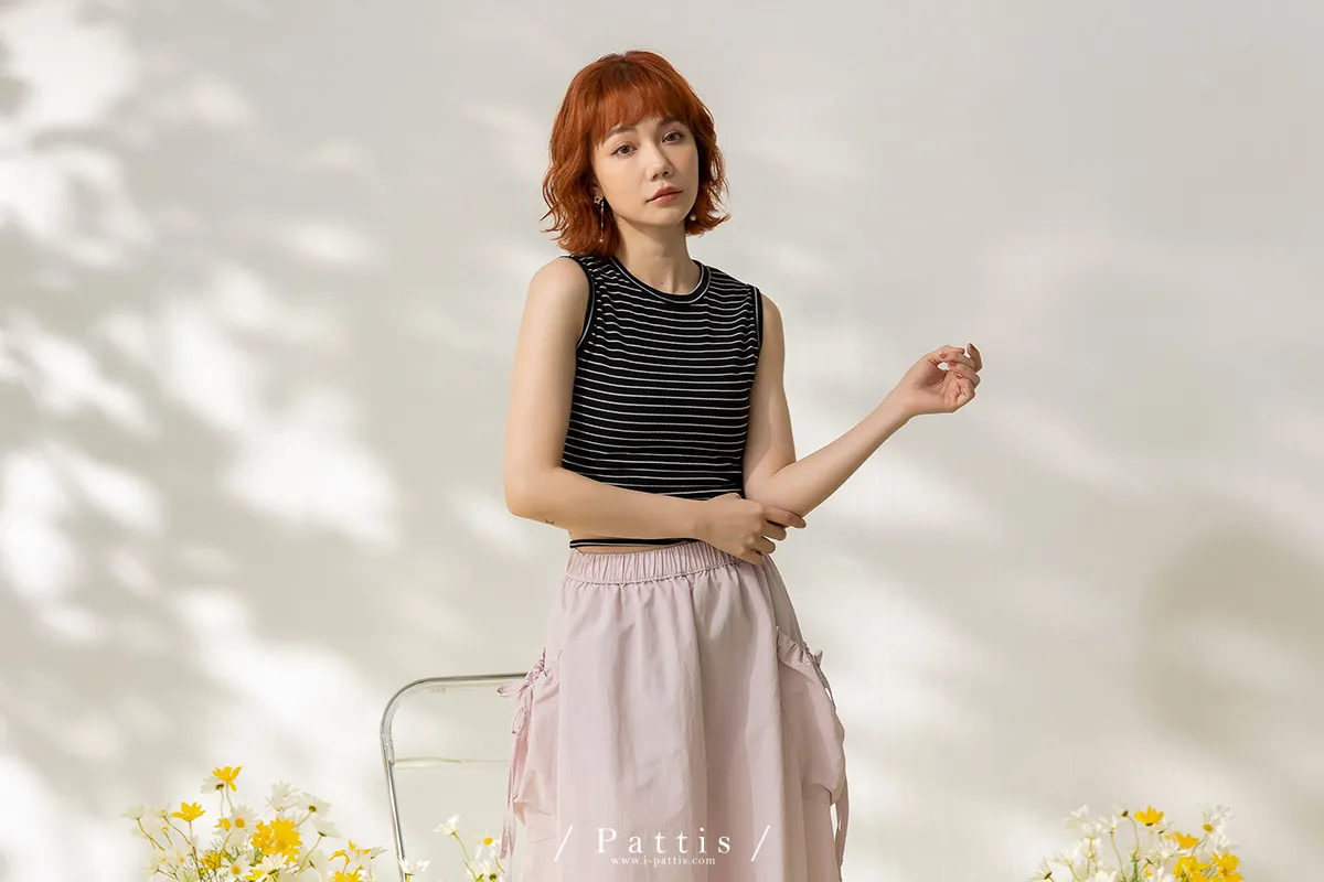 燕尾軌跡 | 尖尾腰綁帶條紋背心(黑)