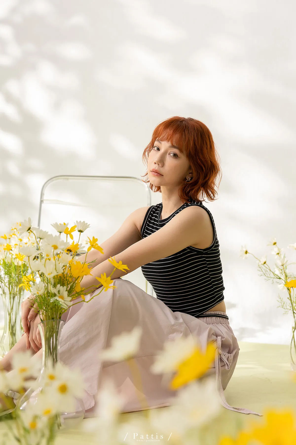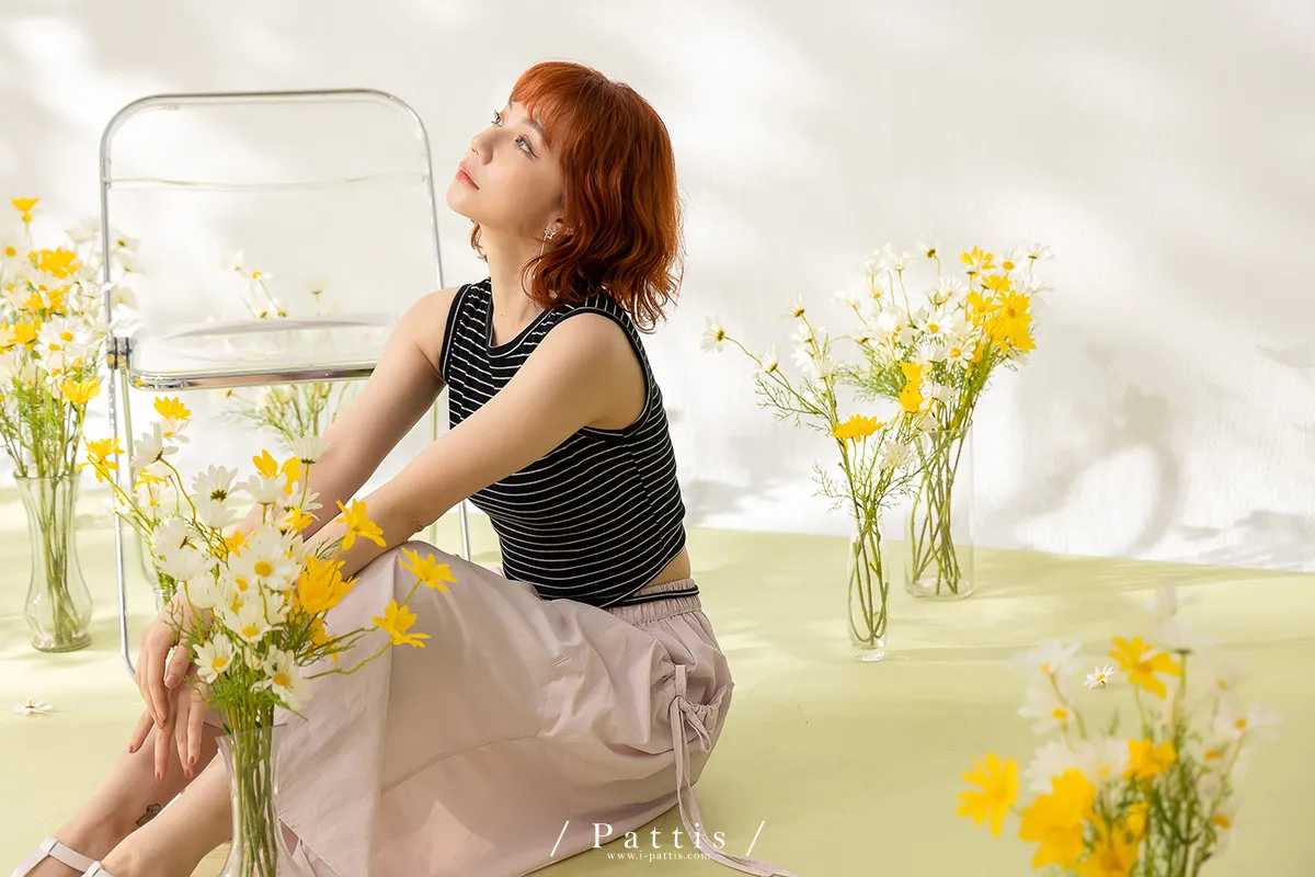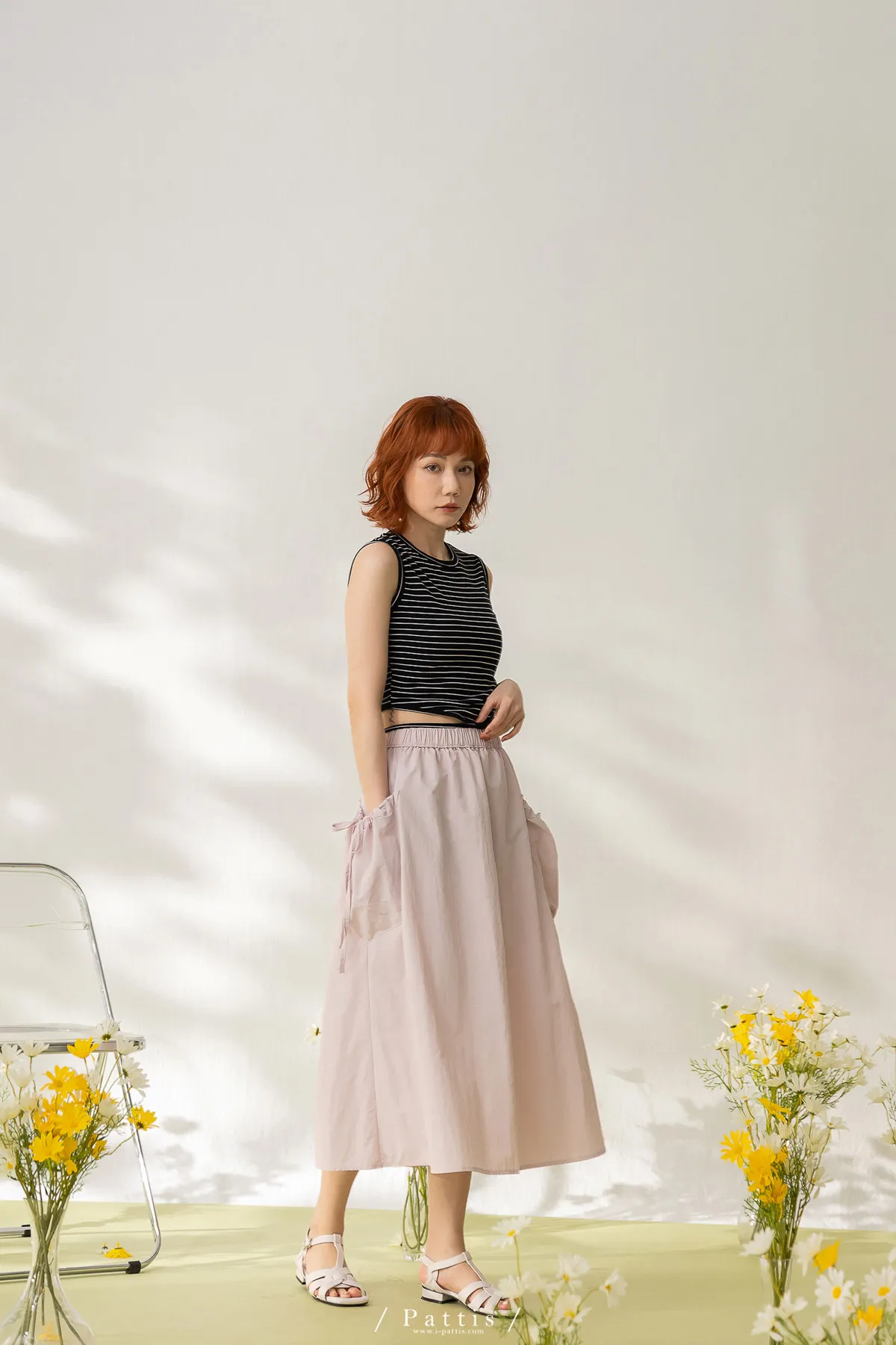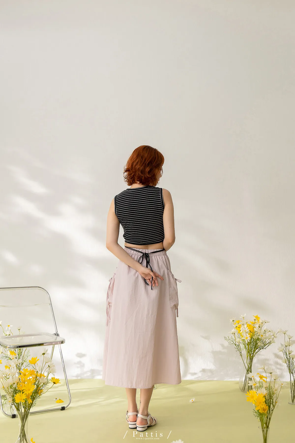 燕尾軌跡 | 尖尾腰綁帶條紋背心(黑)