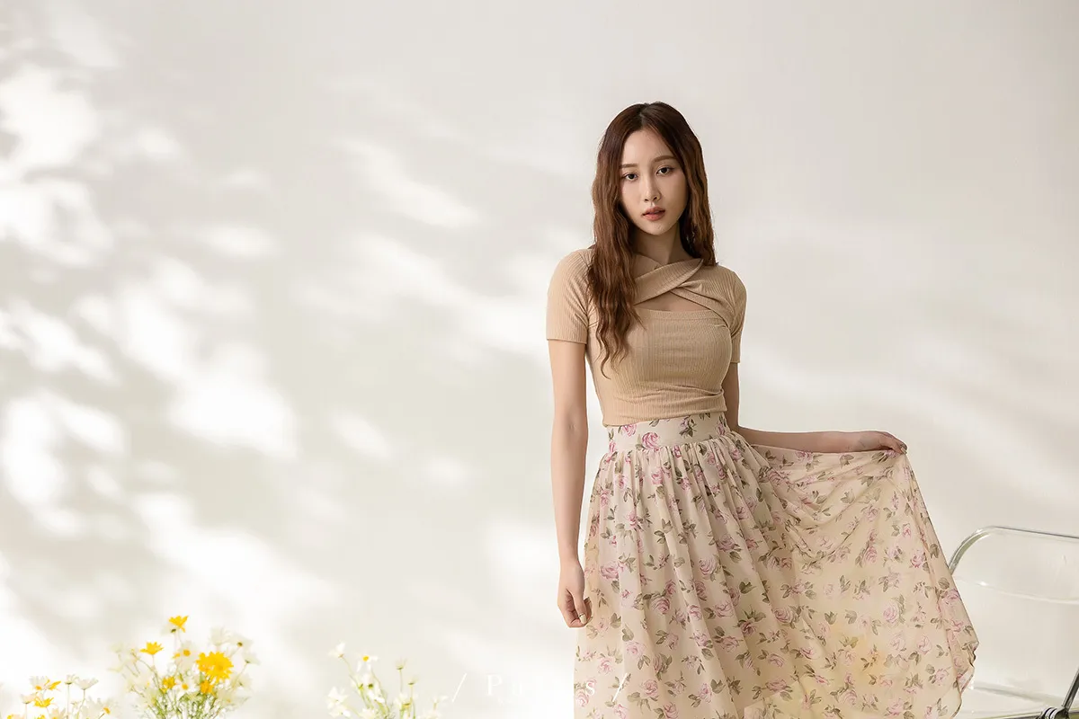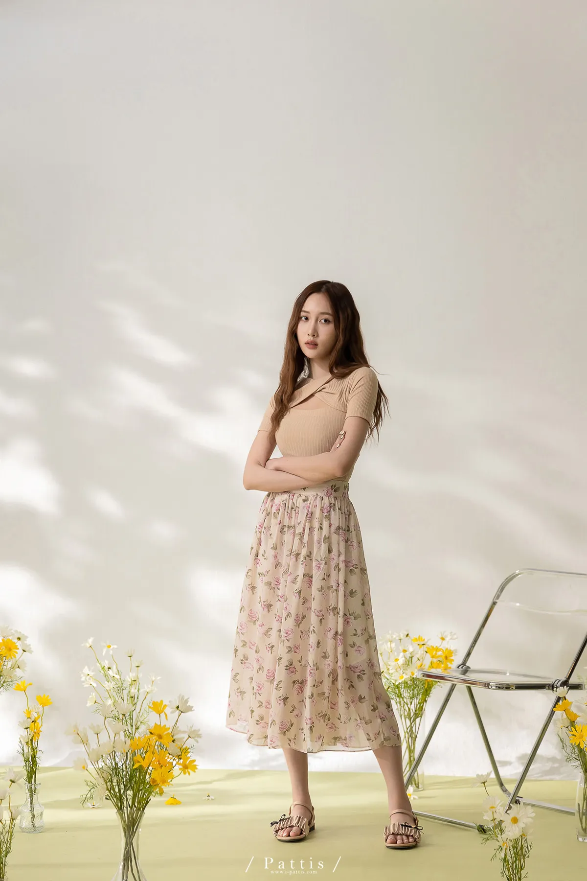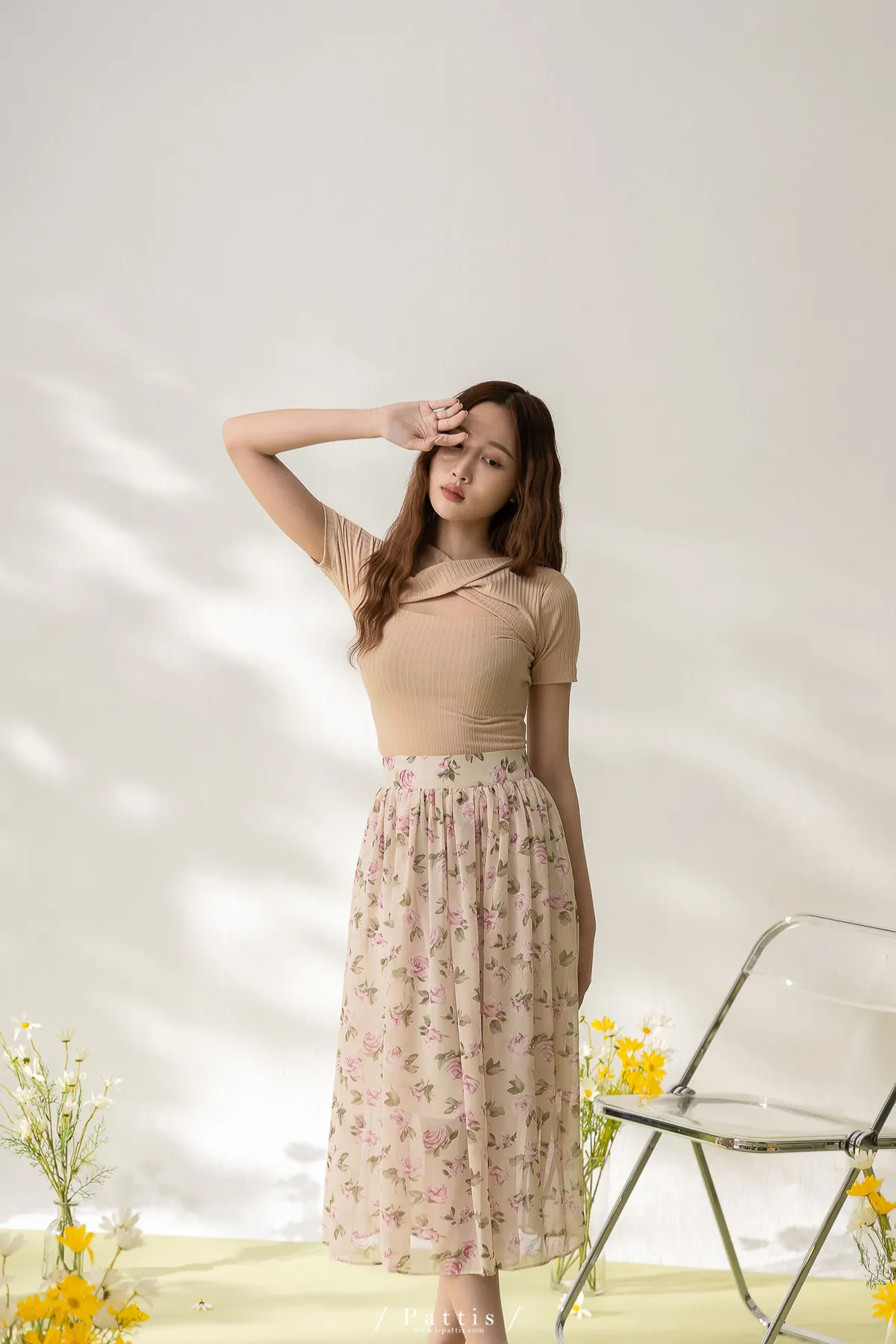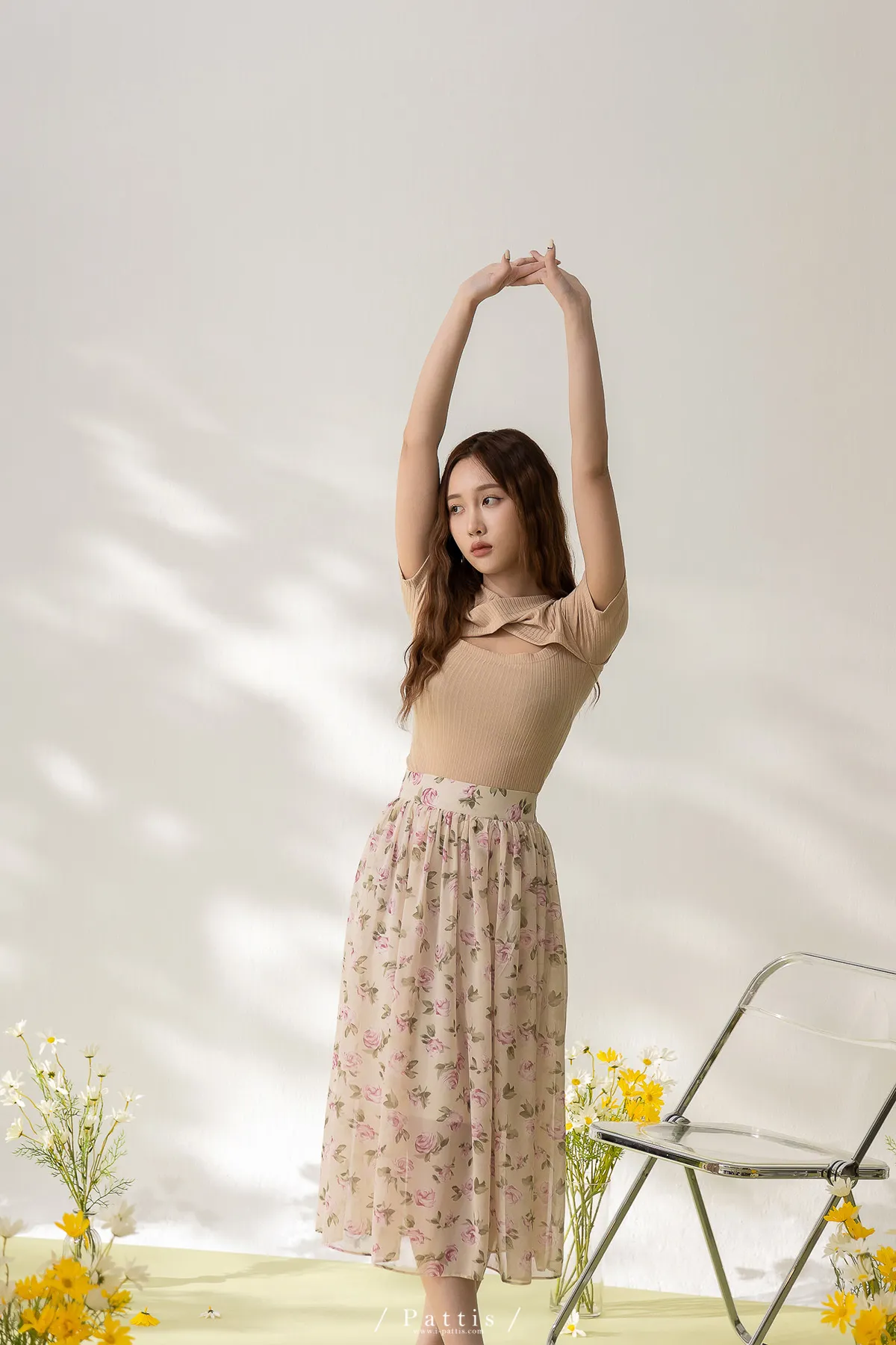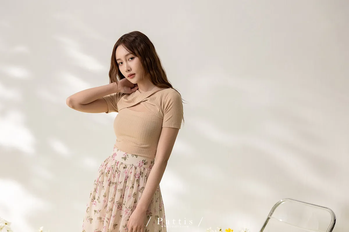 單色極光 | 親膚羅紋翻摺縷空上衣(裸杏)