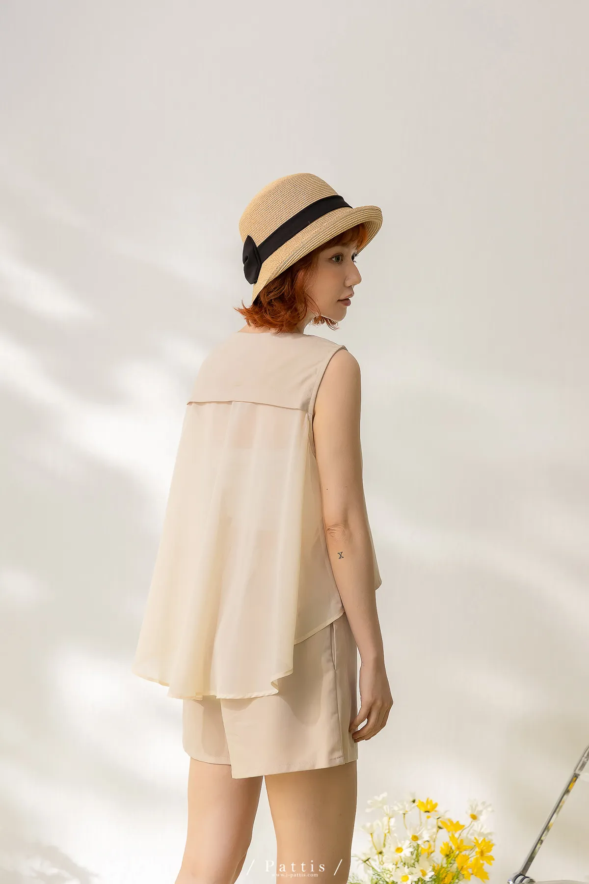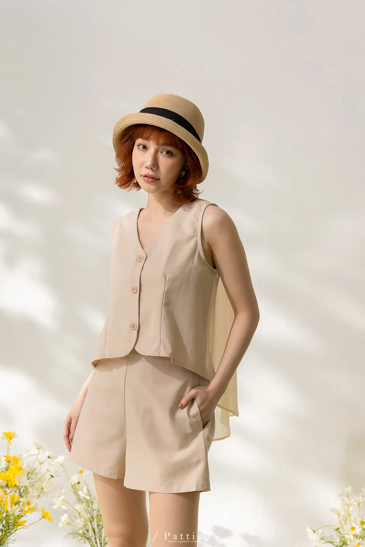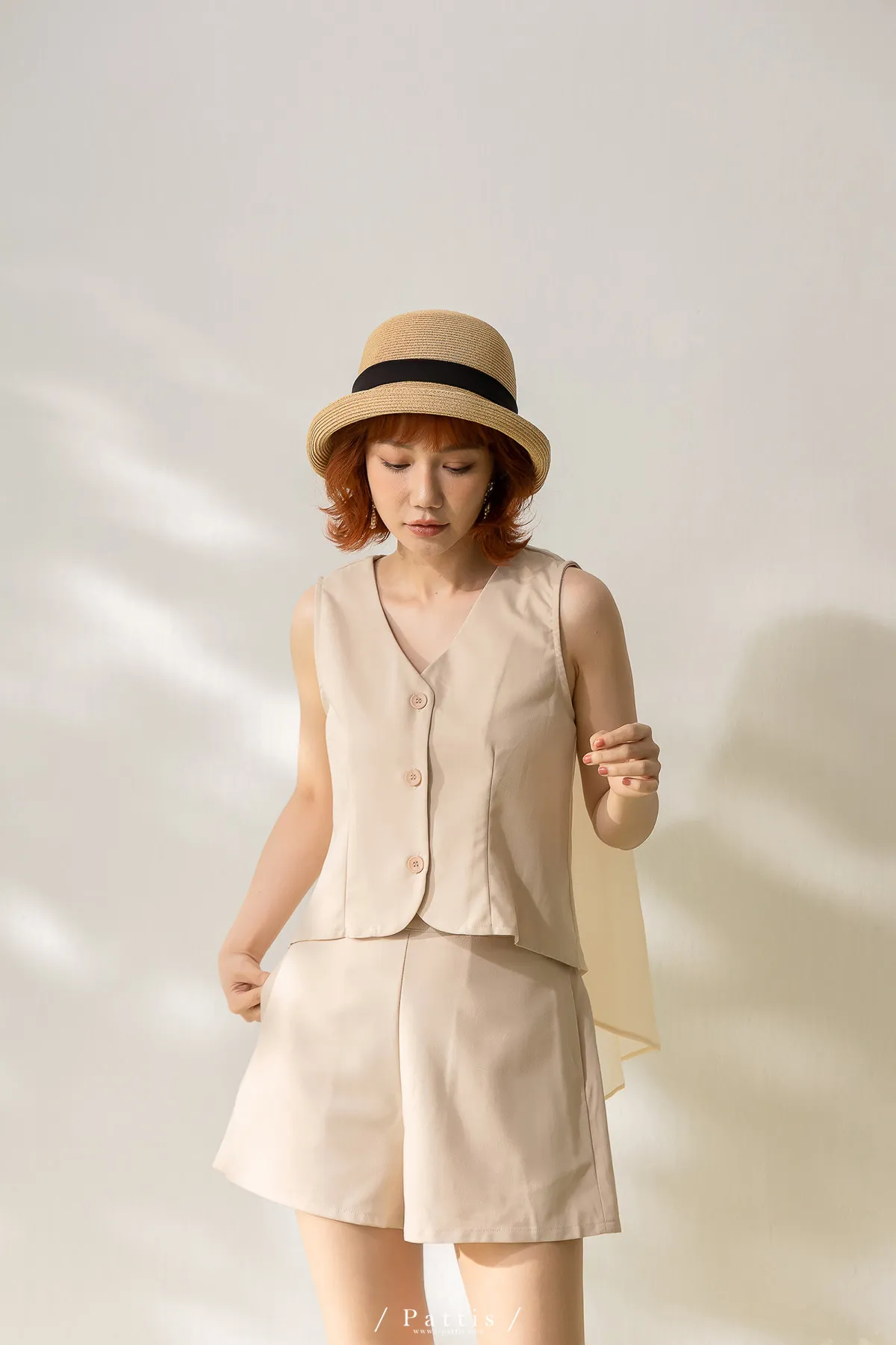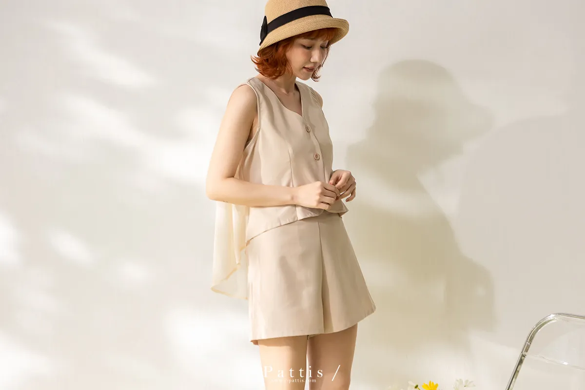 海風旋律 | V字前短後長背心+短褲set組(淺杏)