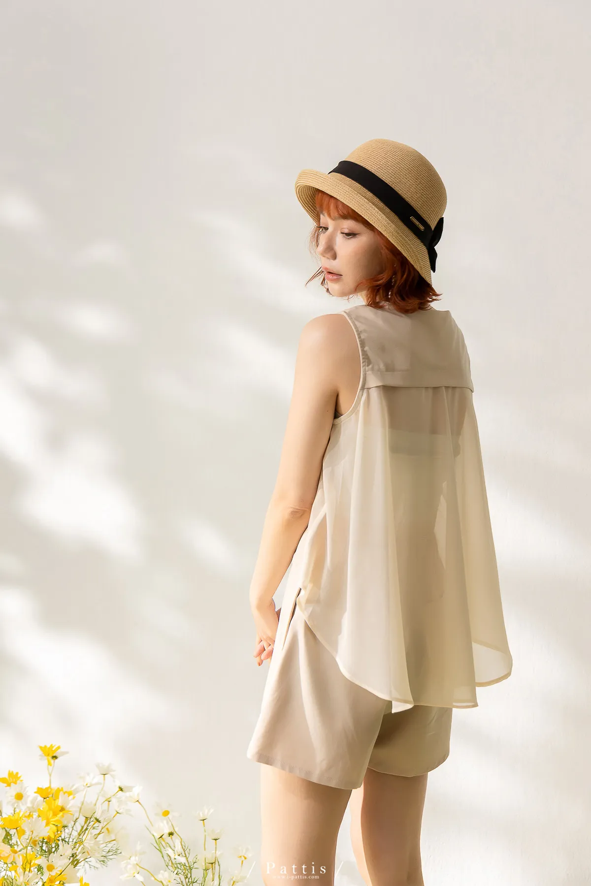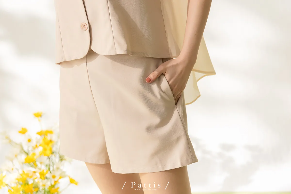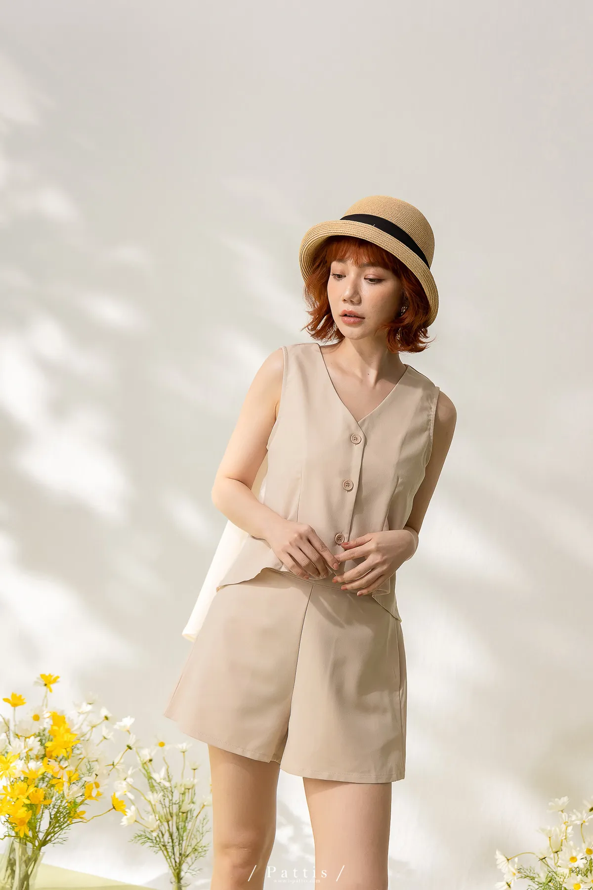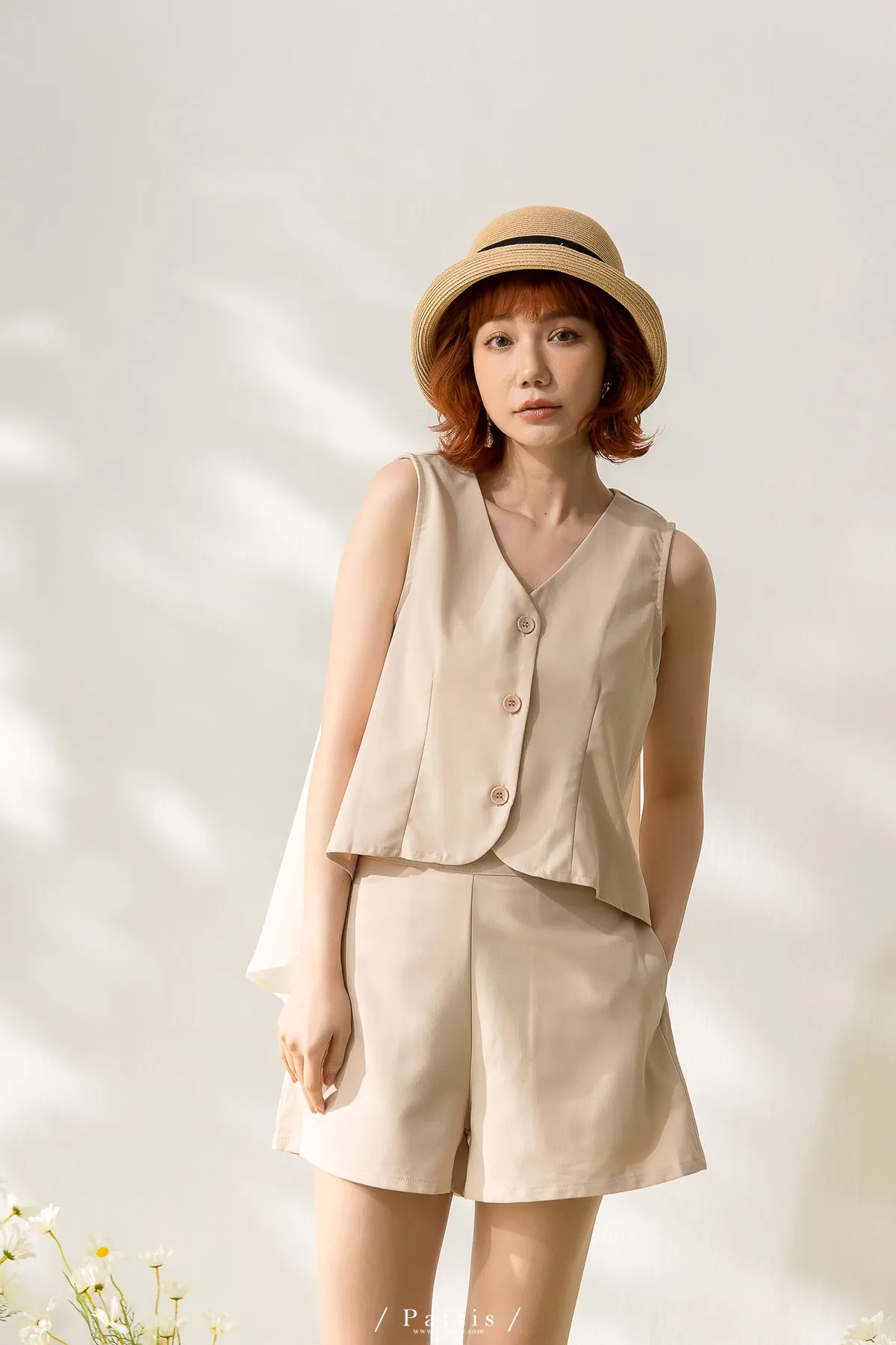 海風旋律 | V字前短後長背心+短褲set組(淺杏)