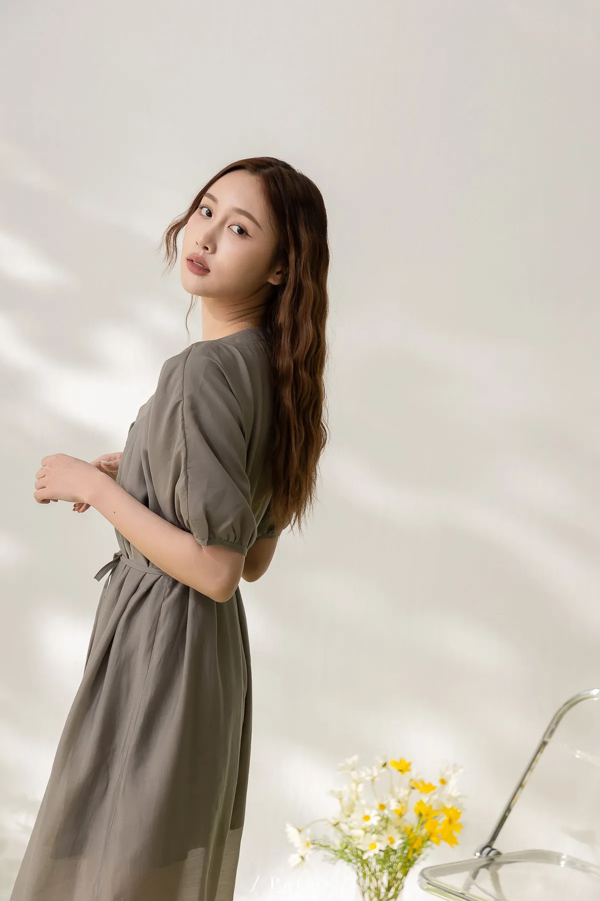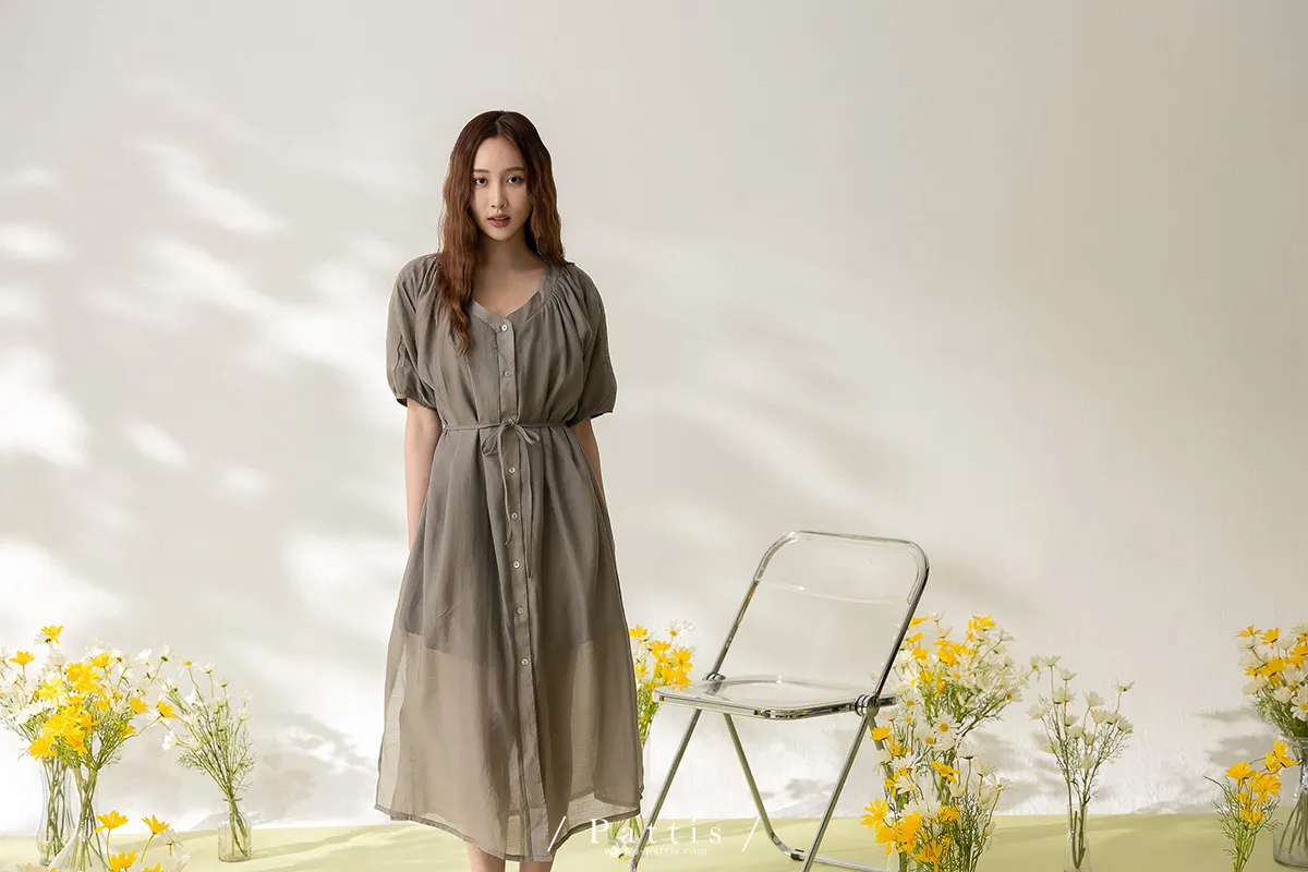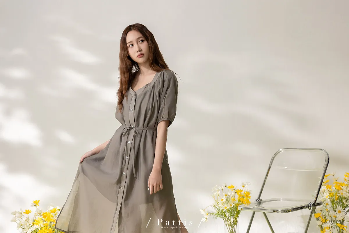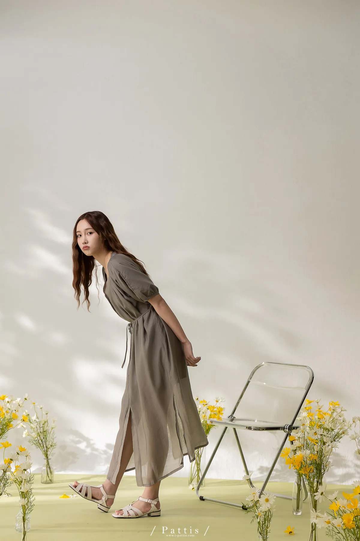 晨光下的你 | 絲光軟雪紡綁帶洋裝(單一色)