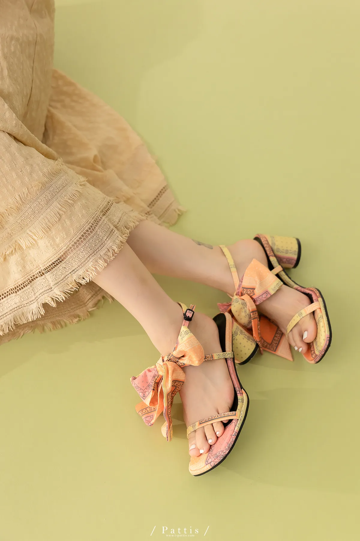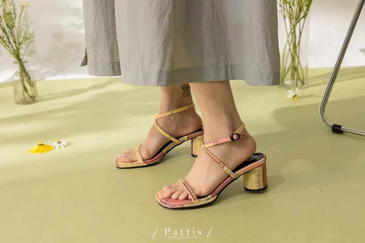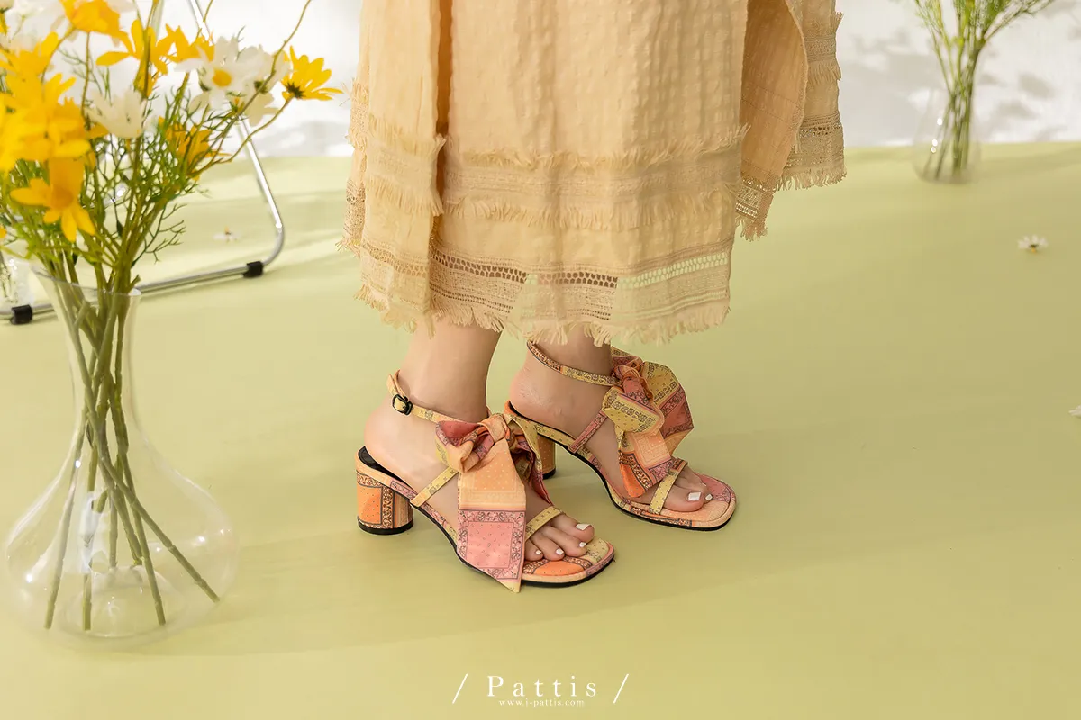 (現貨-印花橘紅24.5)可拆式絲巾綁帶2way涼鞋(藍/印花橘紅)