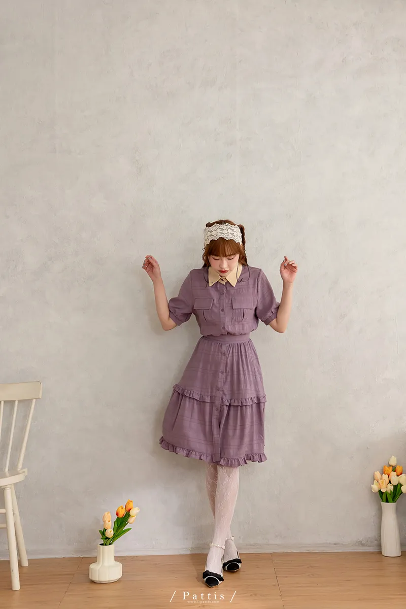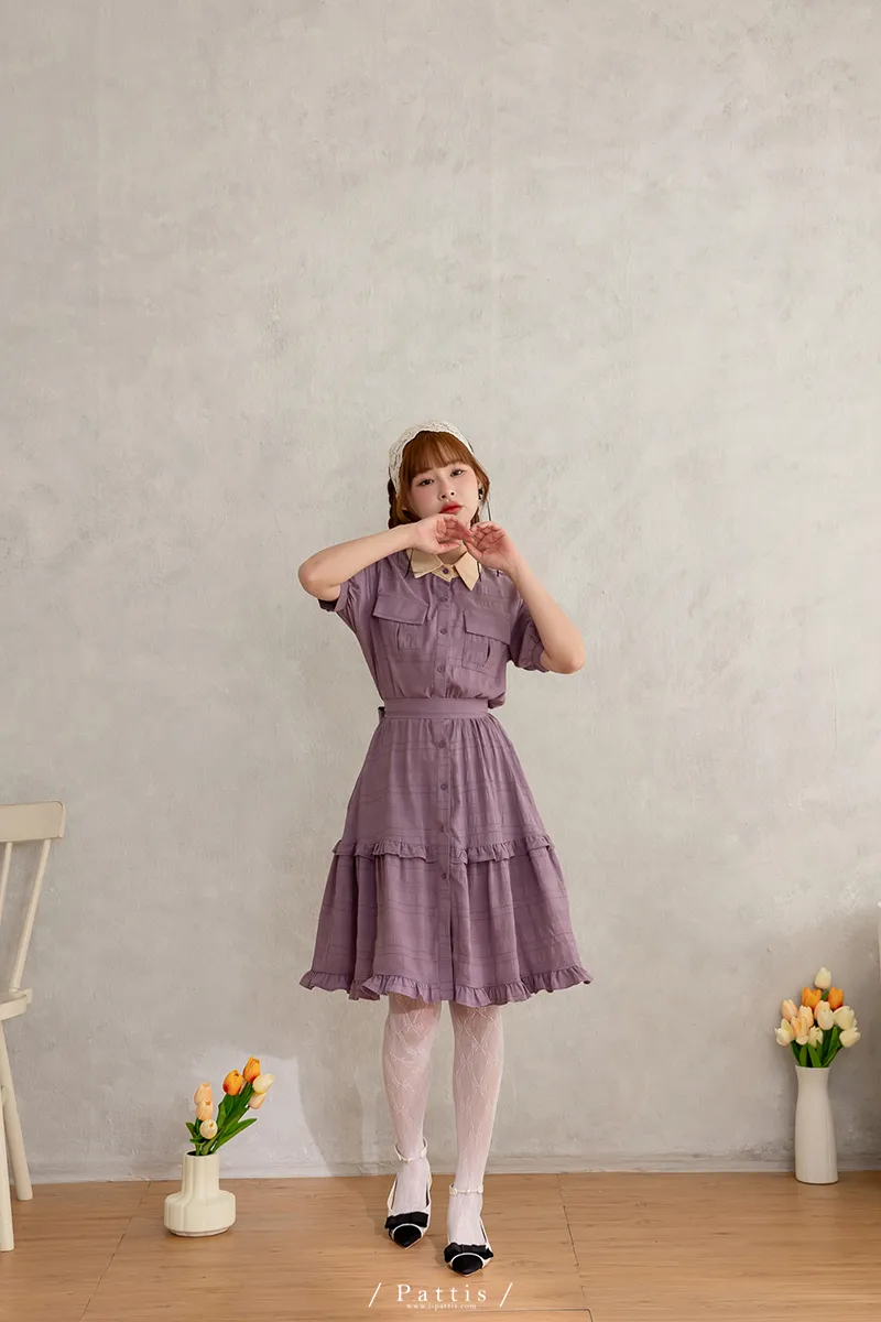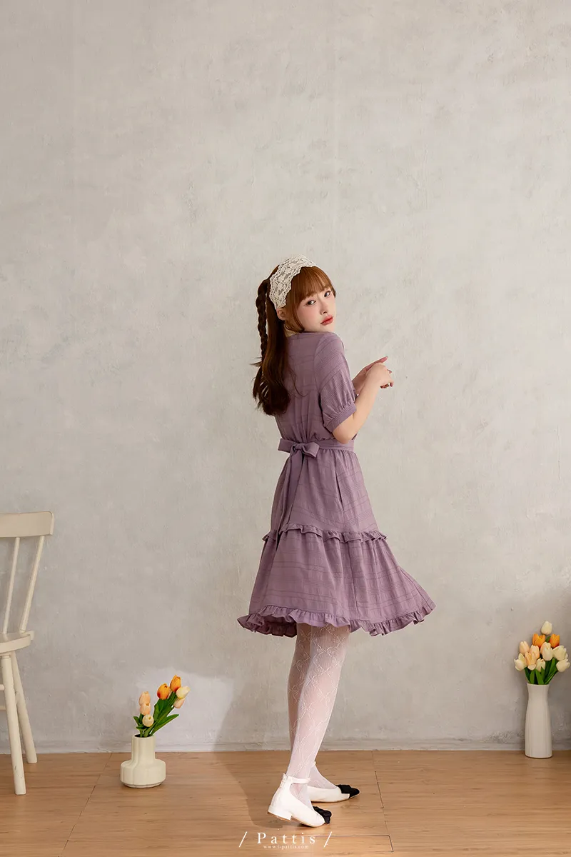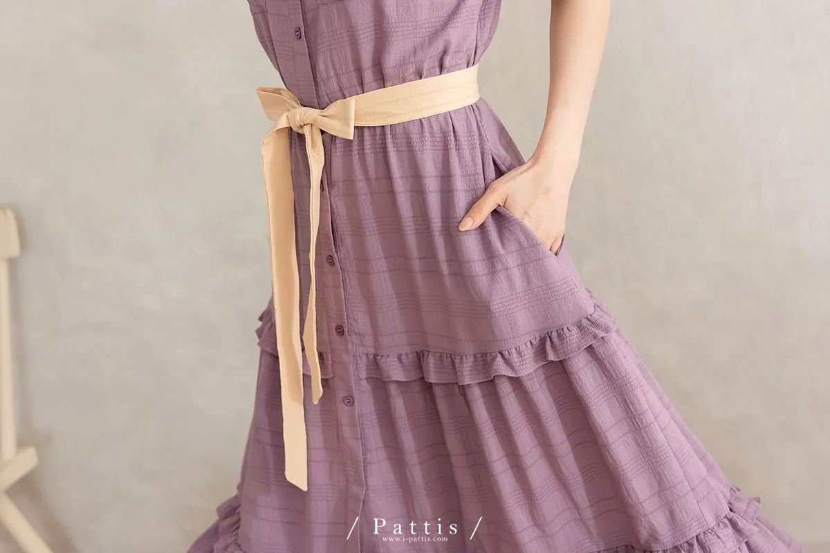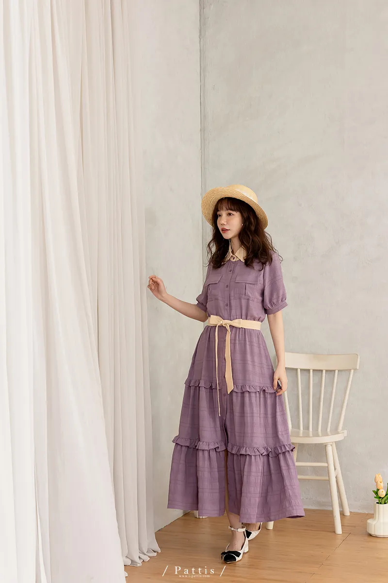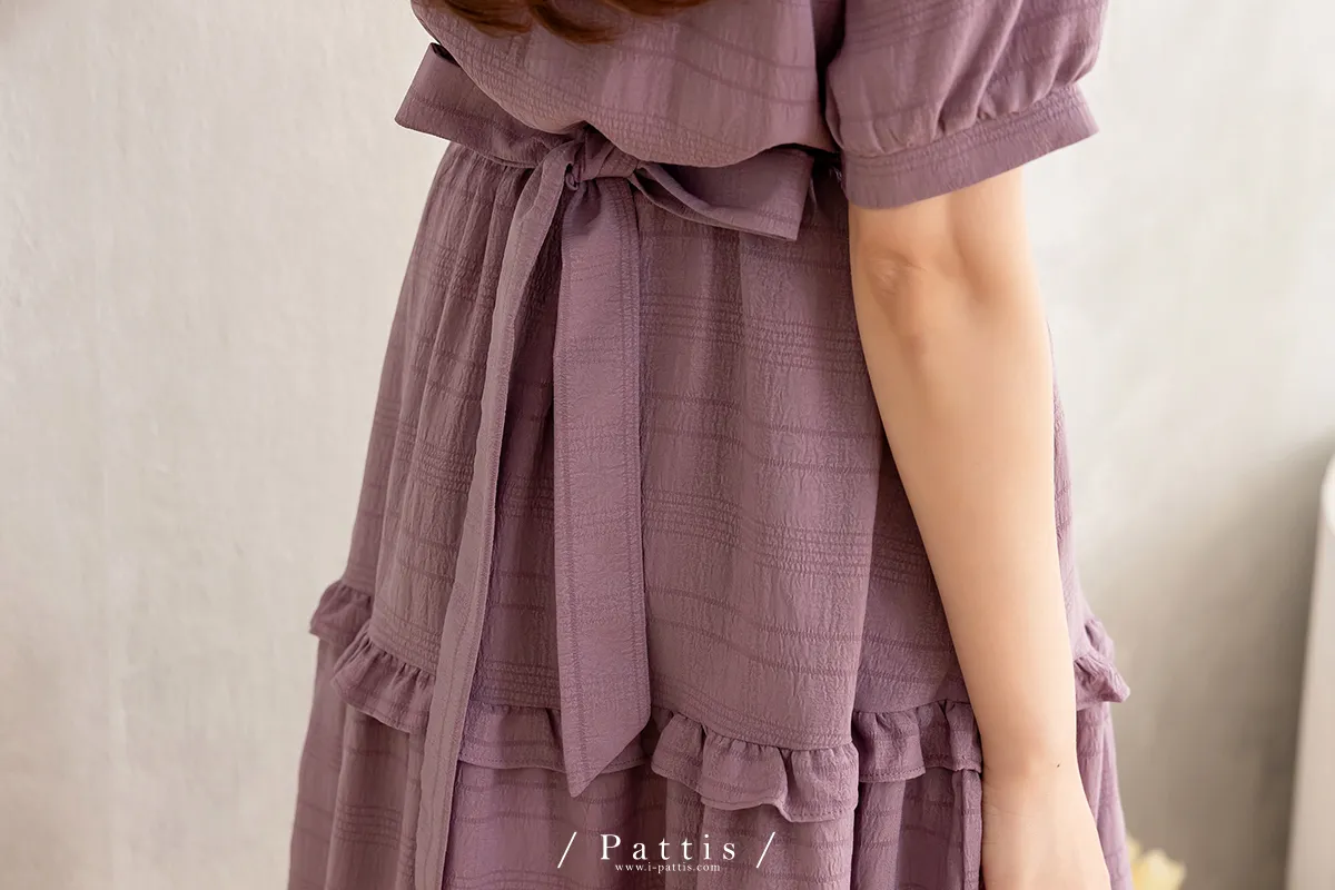 十二點前的輕吻 | 浮雕格紋荷葉可拆2way洋裝(胭花紫荊)