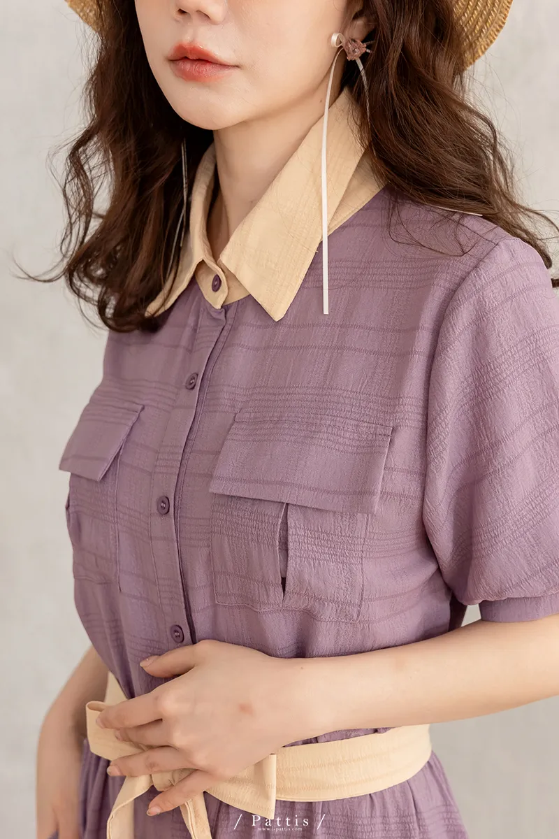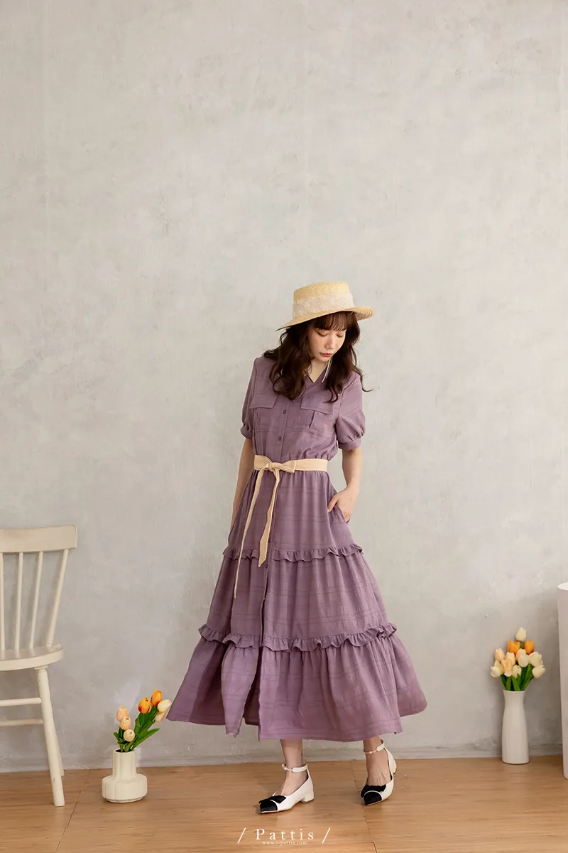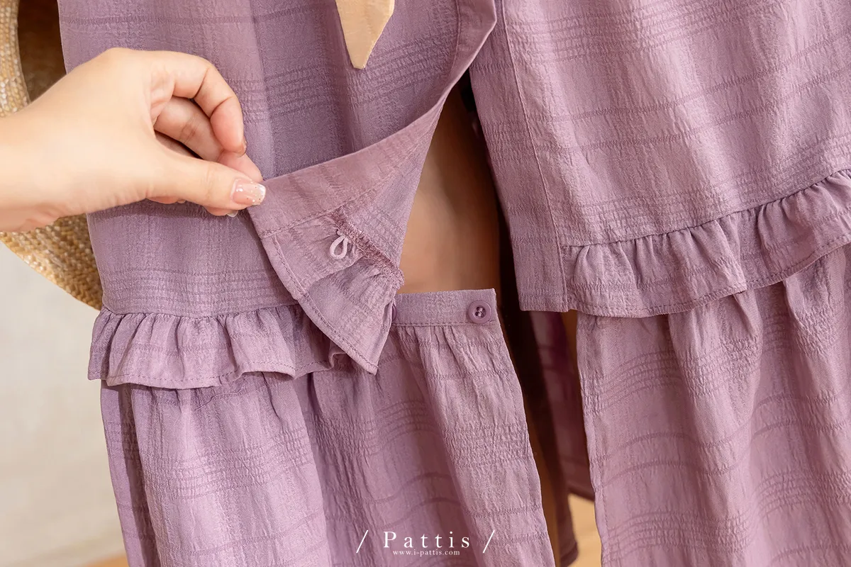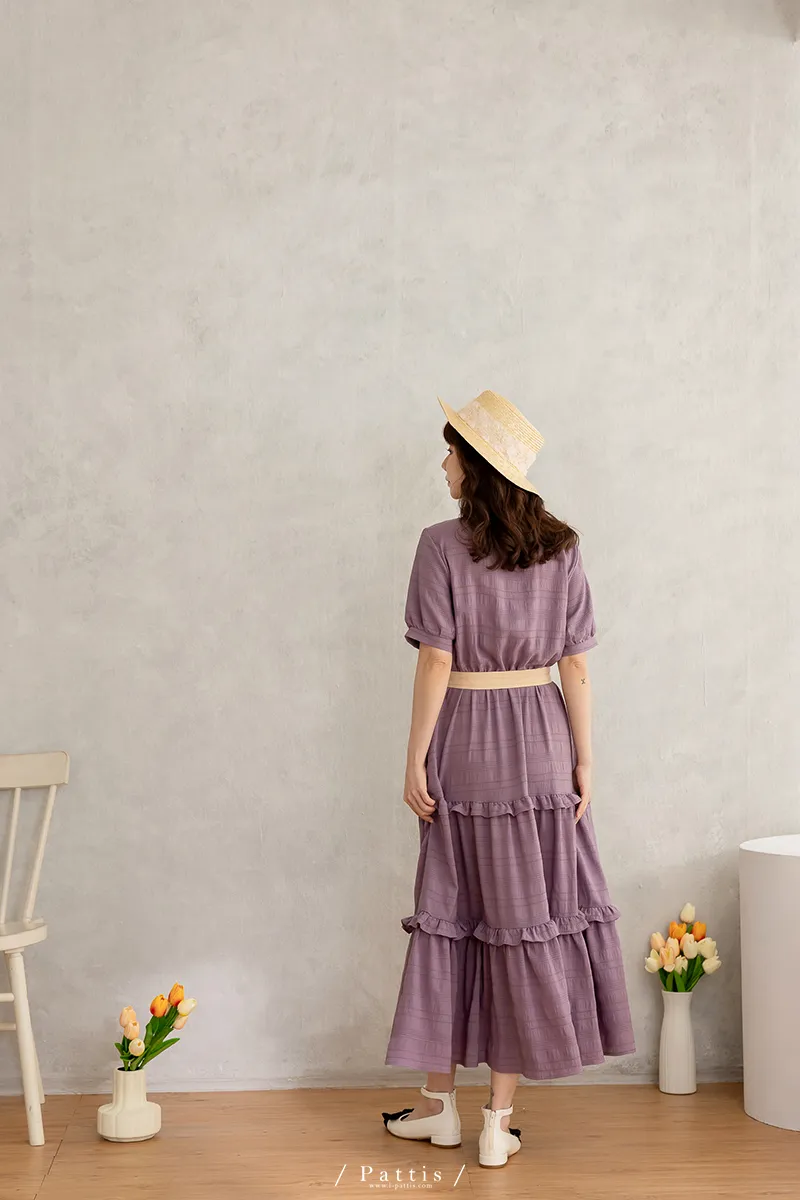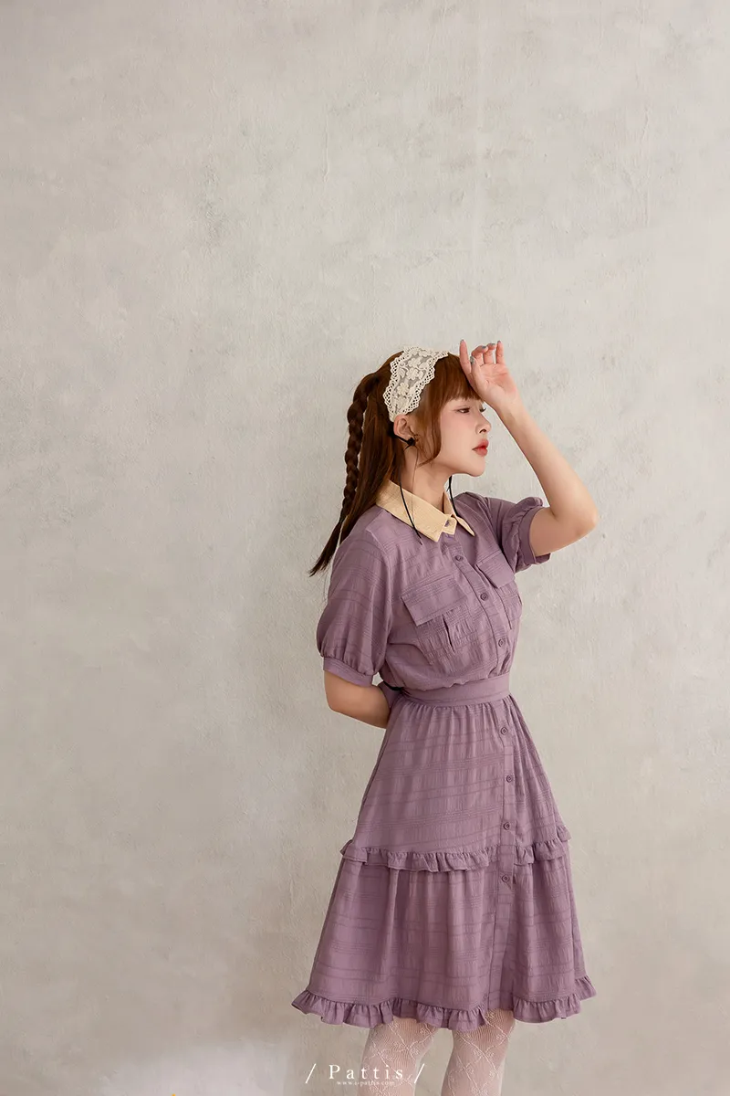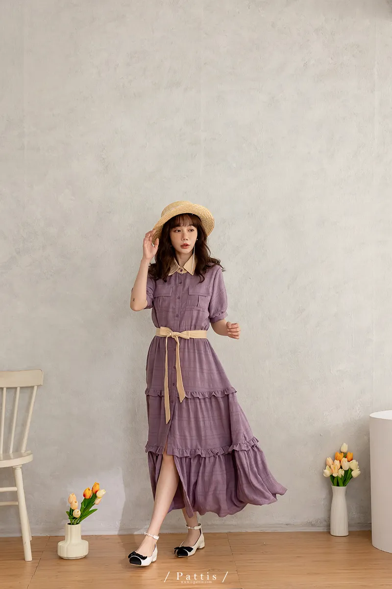 十二點前的輕吻 | 浮雕格紋荷葉可拆2way洋裝(胭花紫荊)