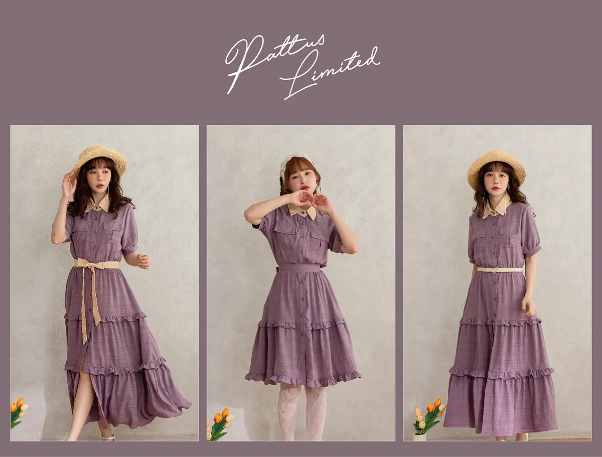★此款裙襬可以拆卸(長洋短洋2way自由切換),並附2條綁帶(紫色*1+米杏*1)