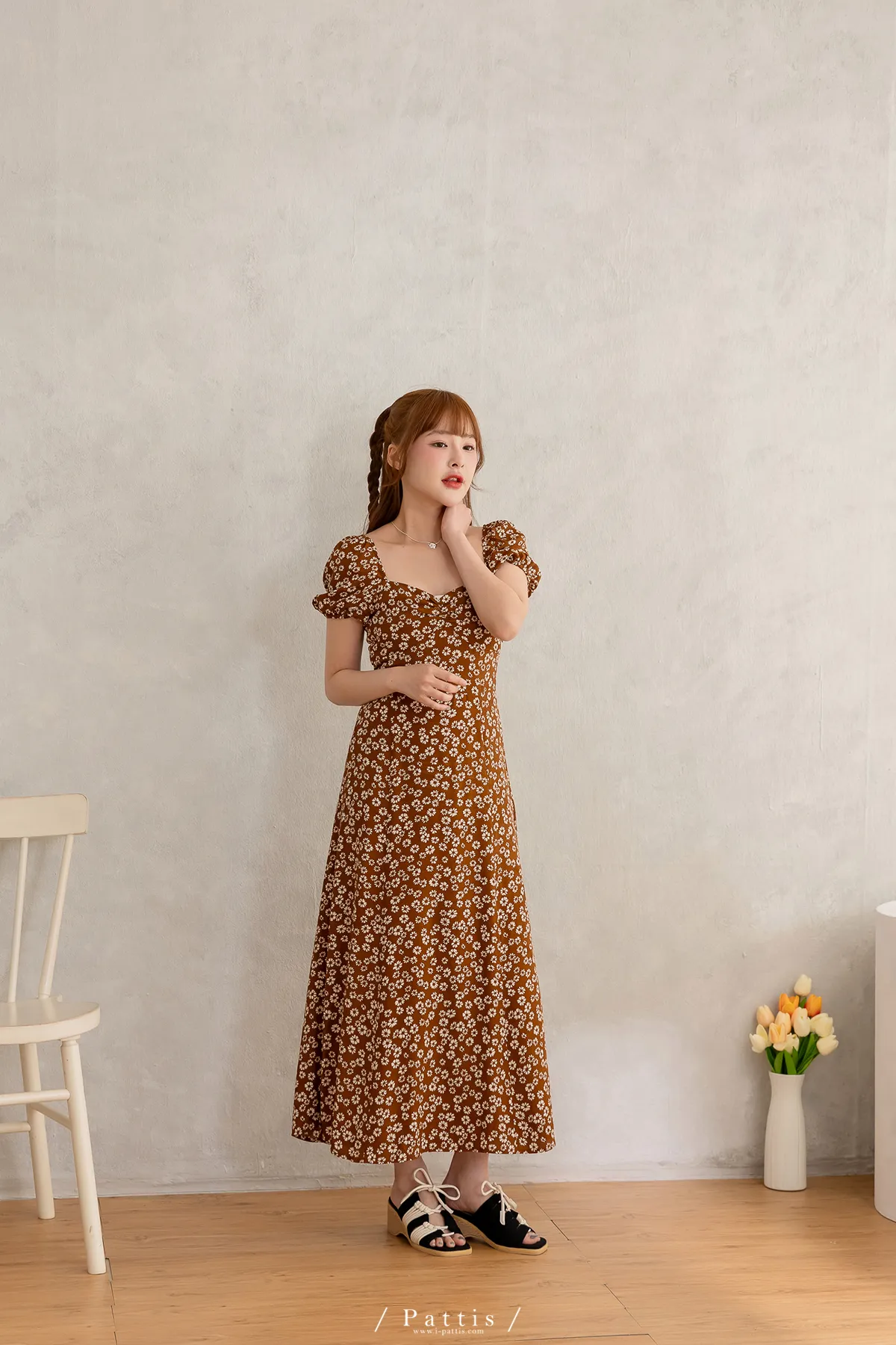 / NG品 原價$1680 /那日的約會信 | 小雛菊蓬袖瘦身2way洋裝(咖)