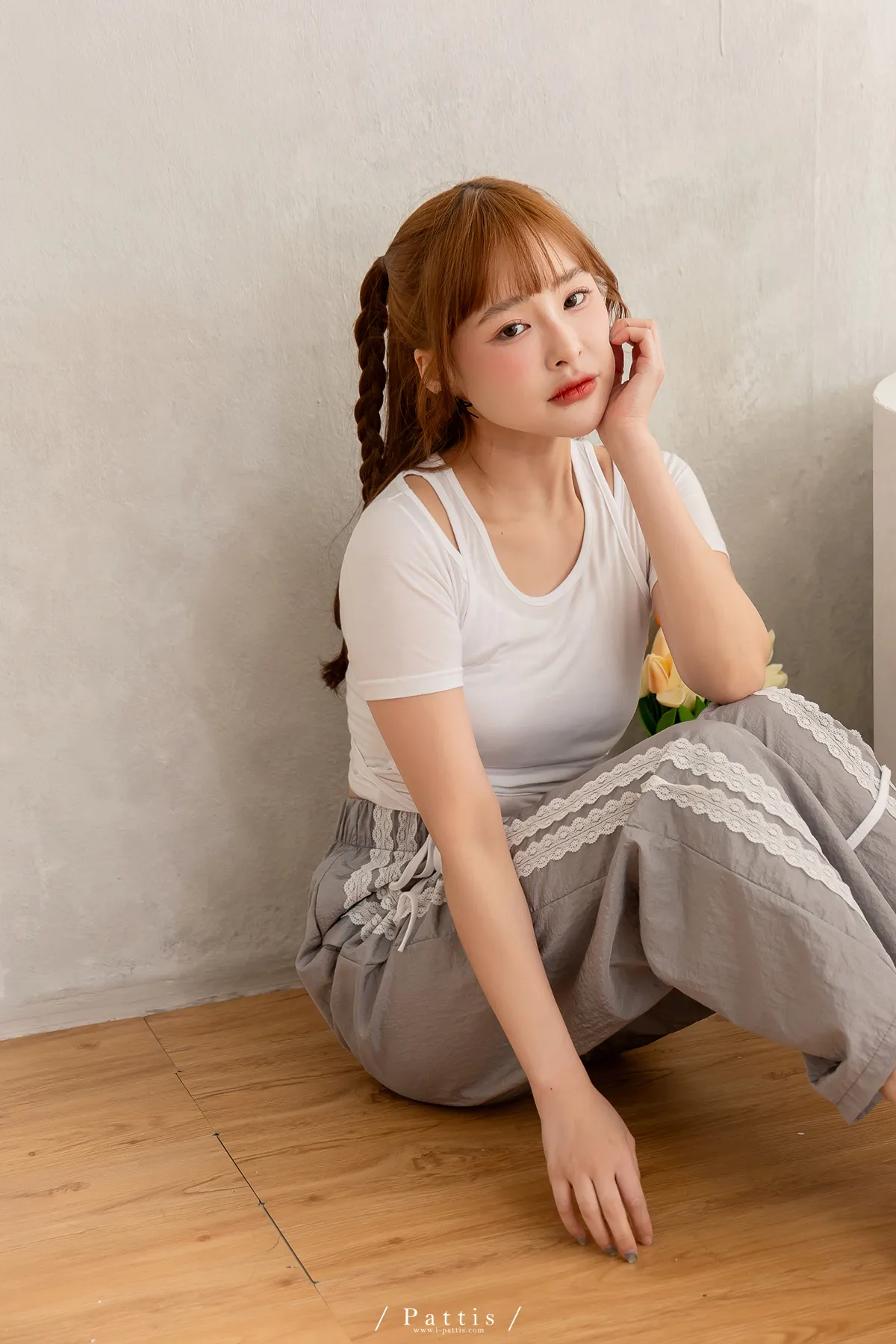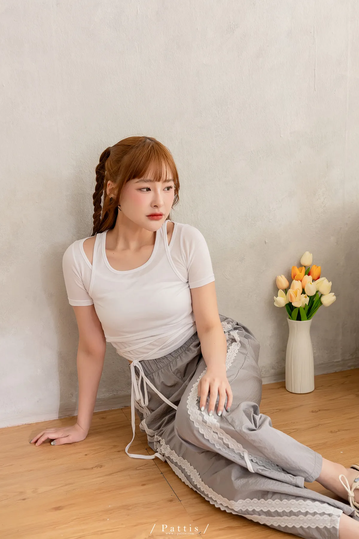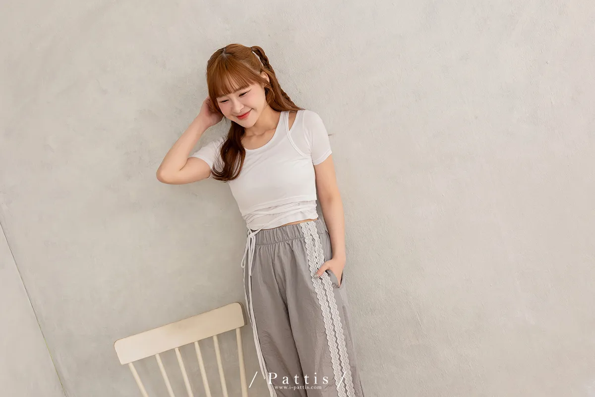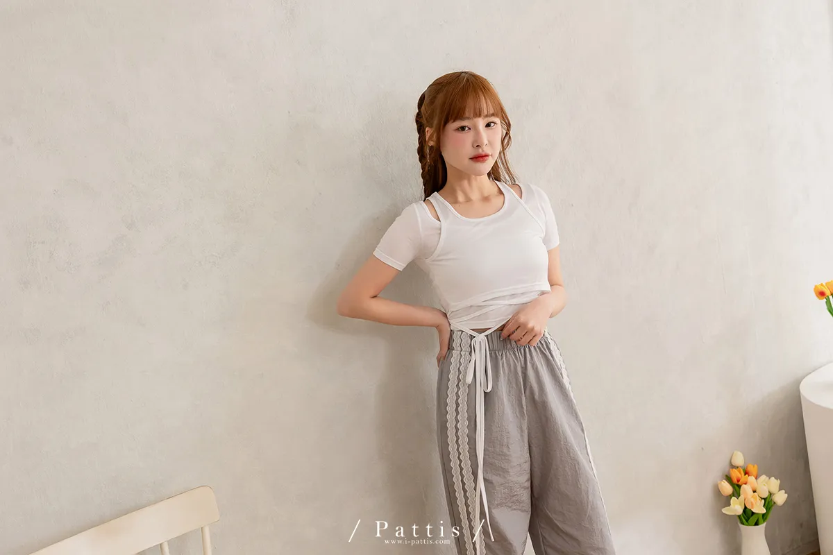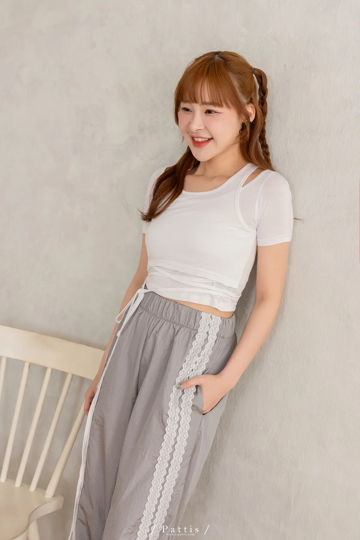 *特*藏在心底的秘密 | 假兩件綁帶圓領造型上衣(白)