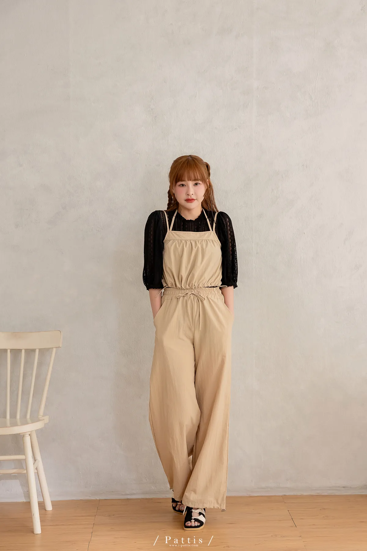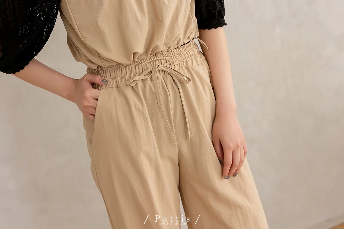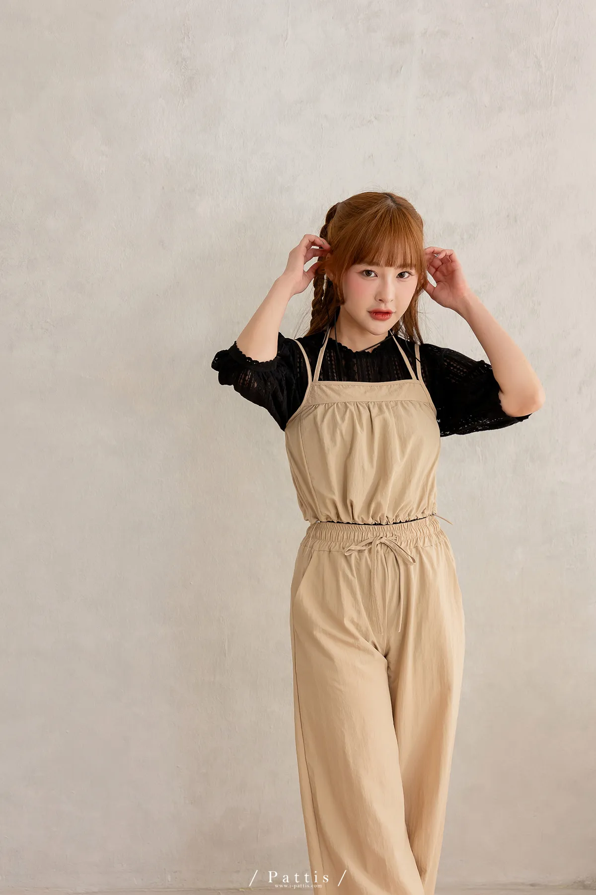 沙漠限定的吻 | 雙繫帶收腰背心+綁帶寬褲set(米杏)