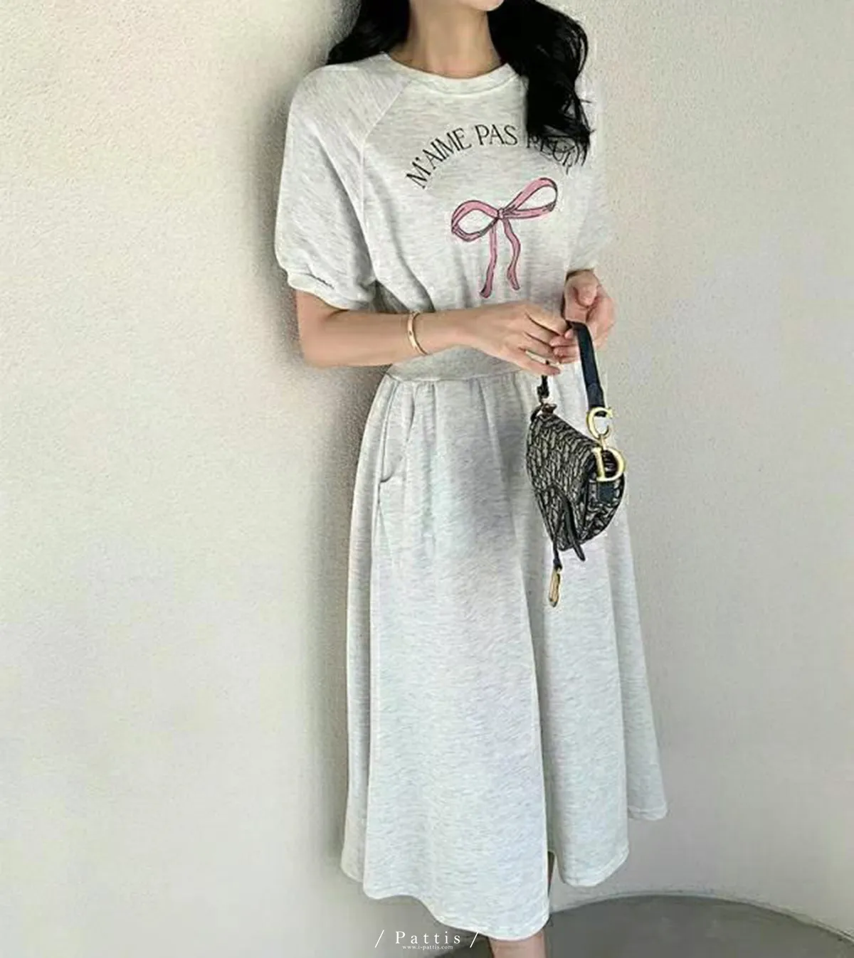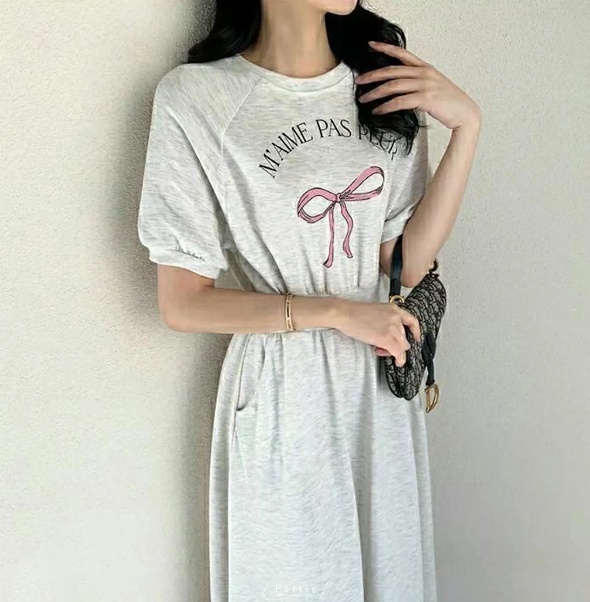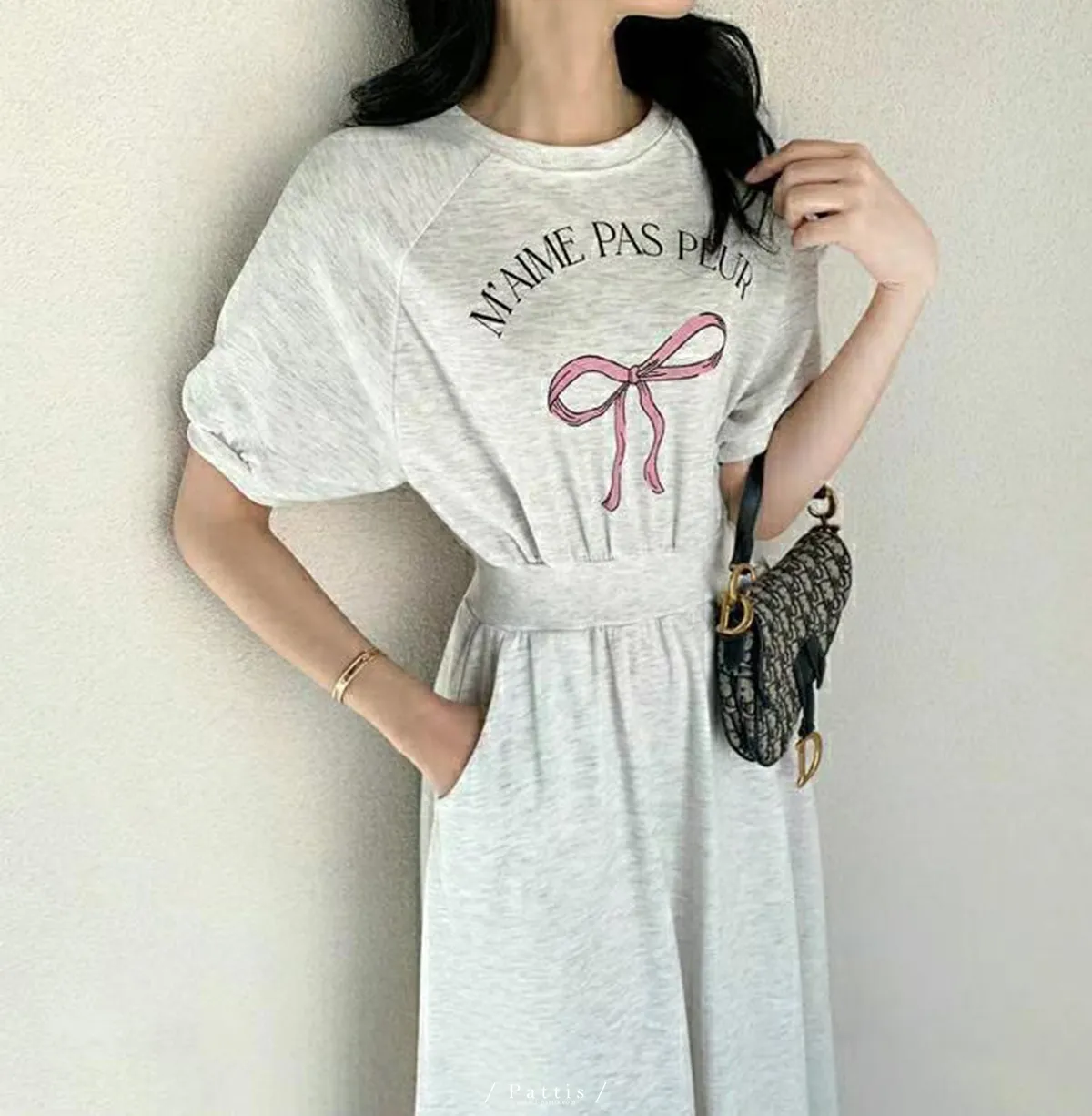 / NG品 原價$1180 / 蝴蝶結字母縮腰口袋洋裝(燕麥米)