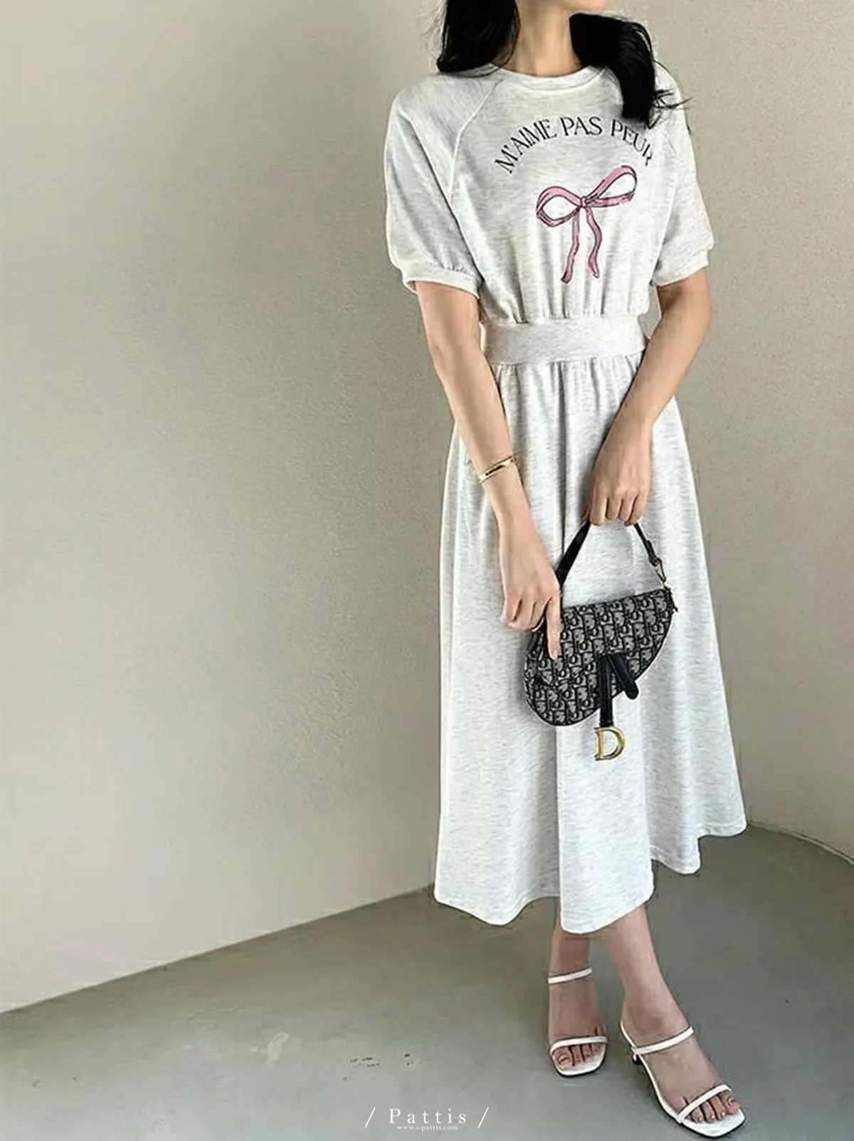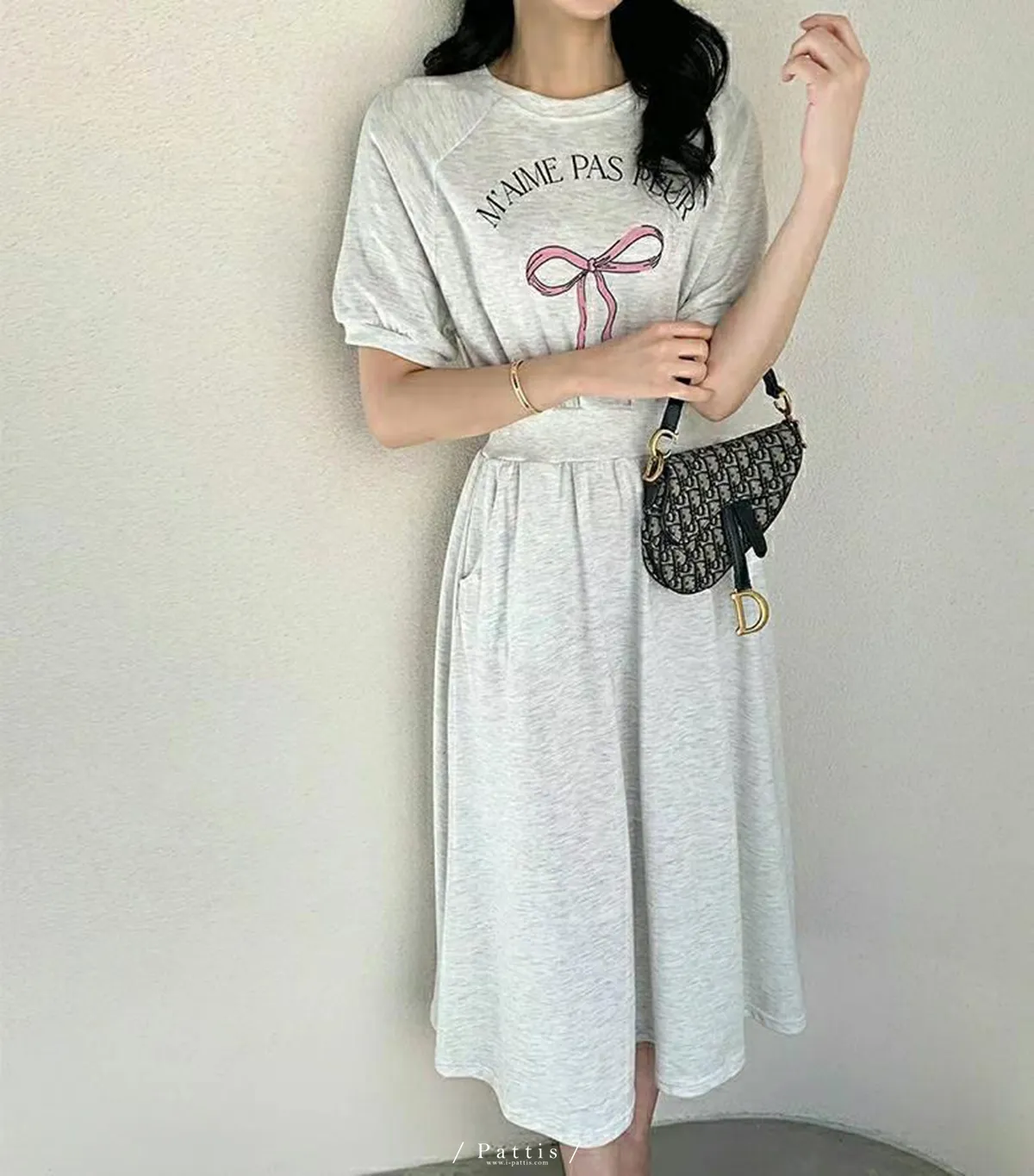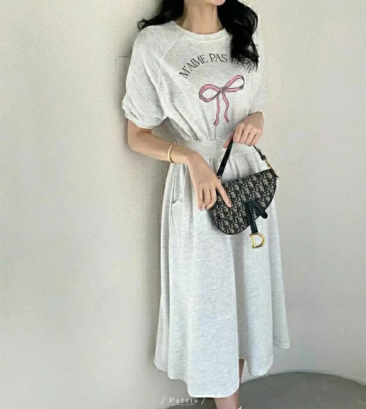 / NG品 原價$1180 / 蝴蝶結字母縮腰口袋洋裝(燕麥米)