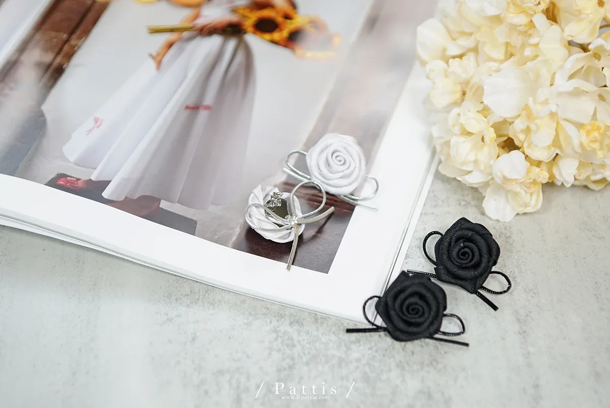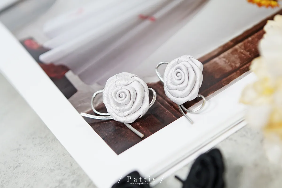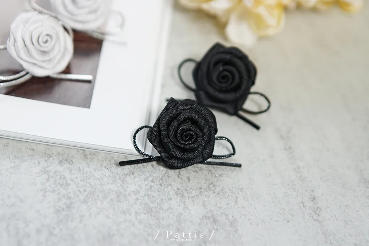 手工玫瑰花緞帶蝴蝶結耳環(銀/黑)