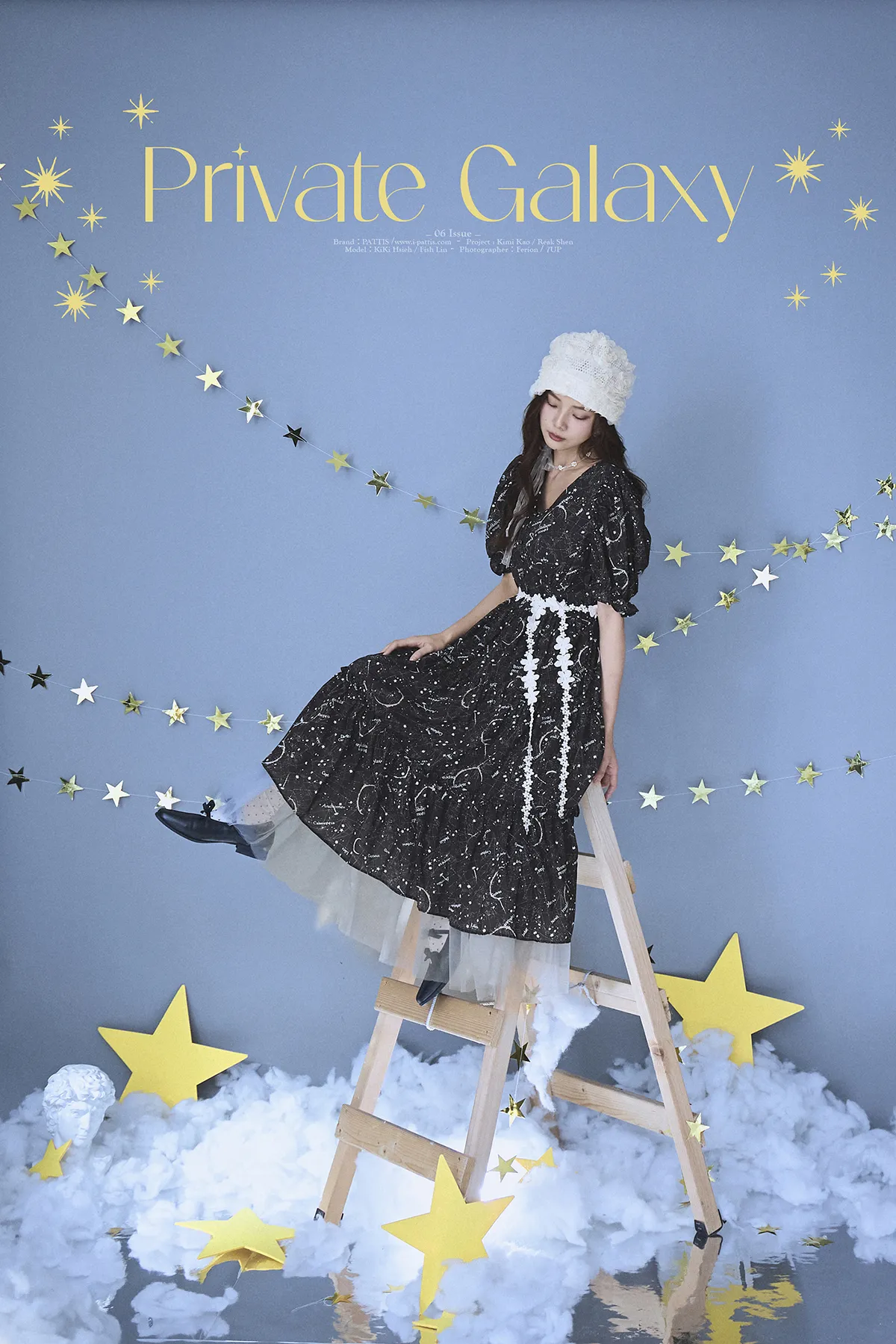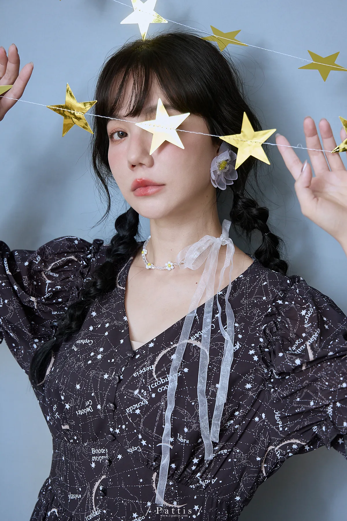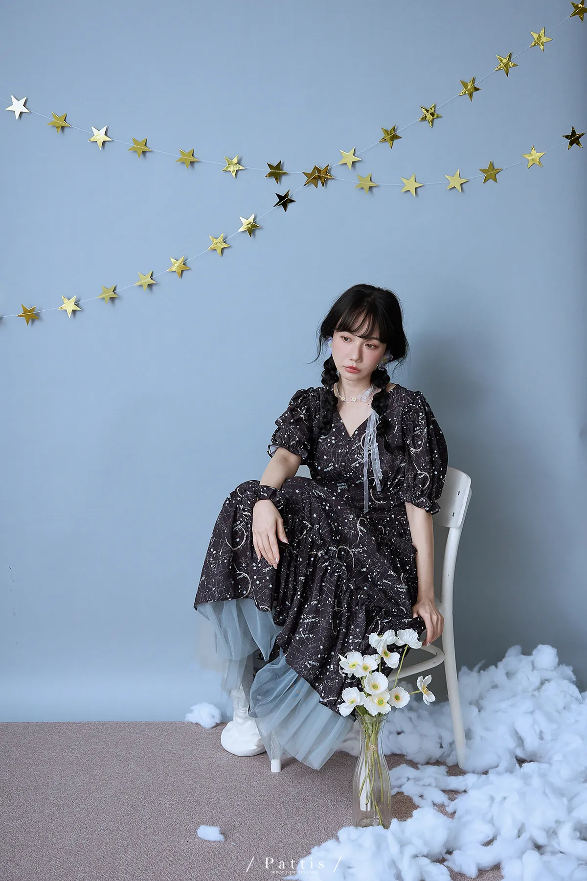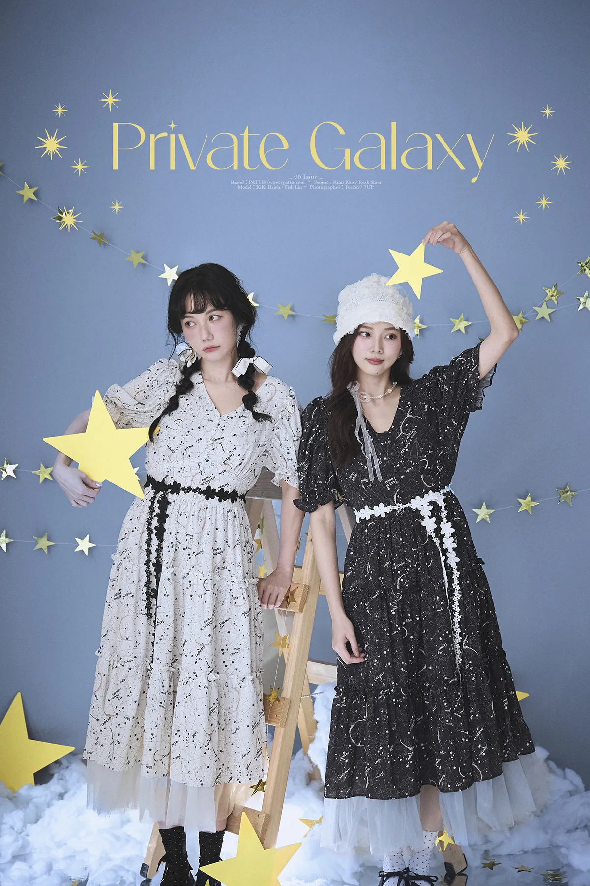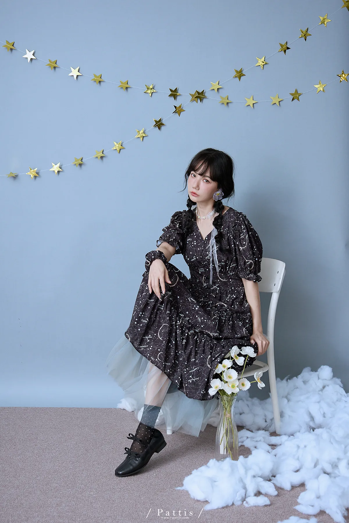 如果繁星墜落白日夢 | 星座印紋字母拼接網紗洋裝(恆星黑)