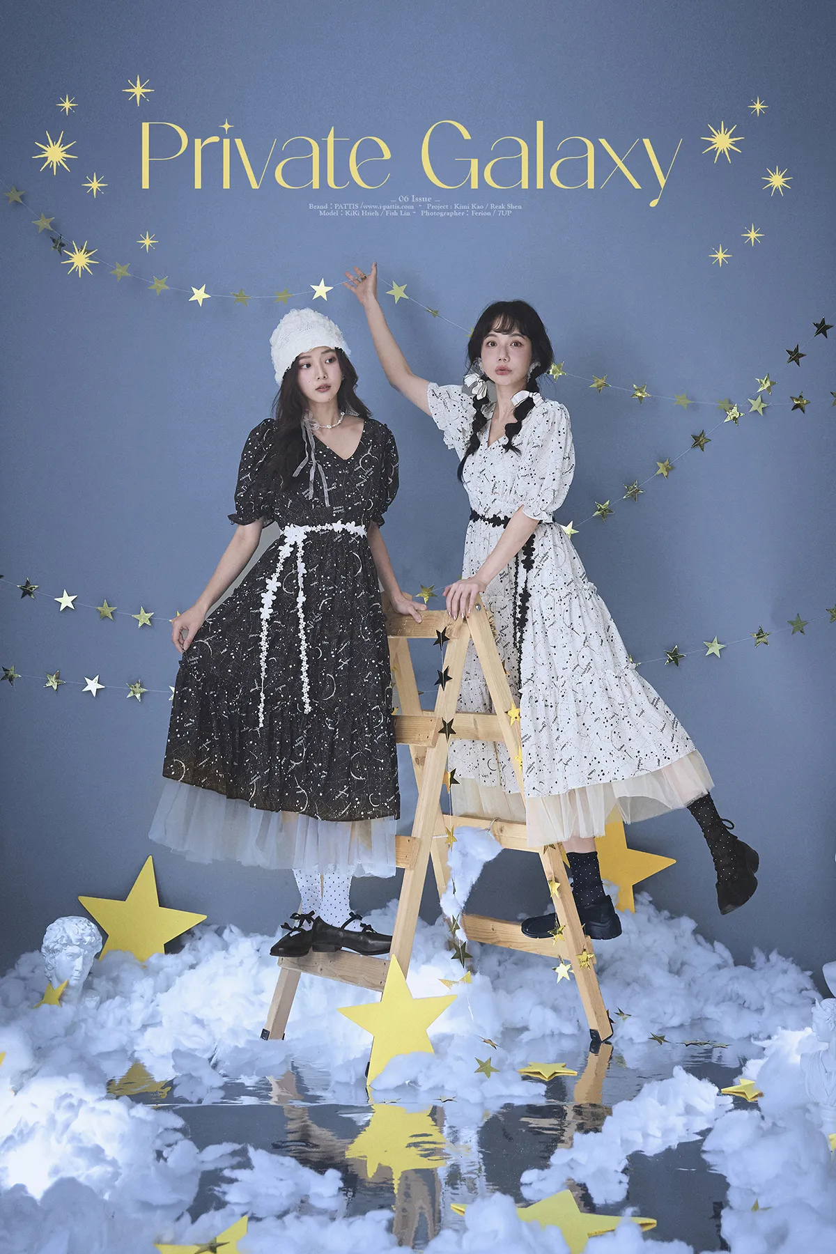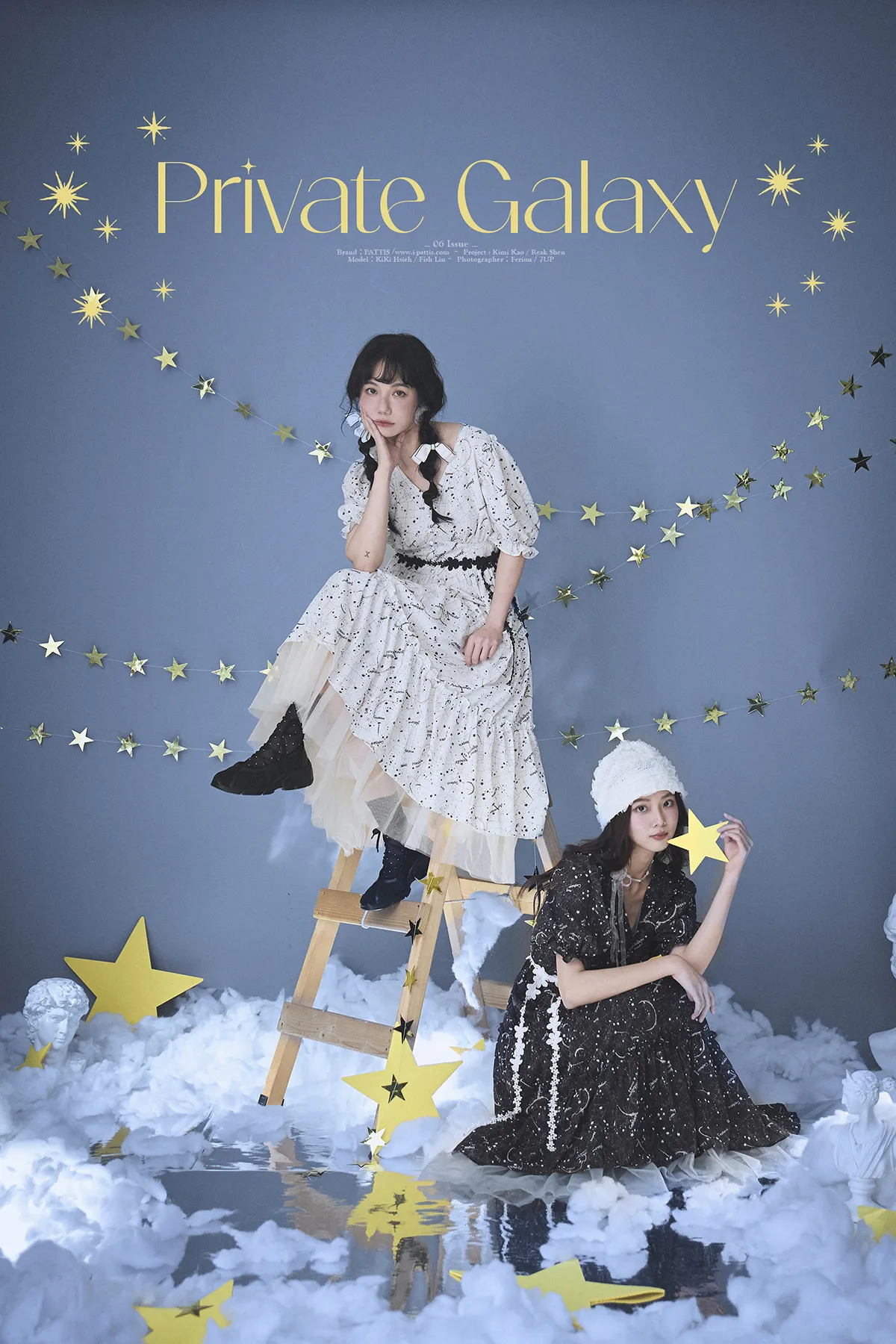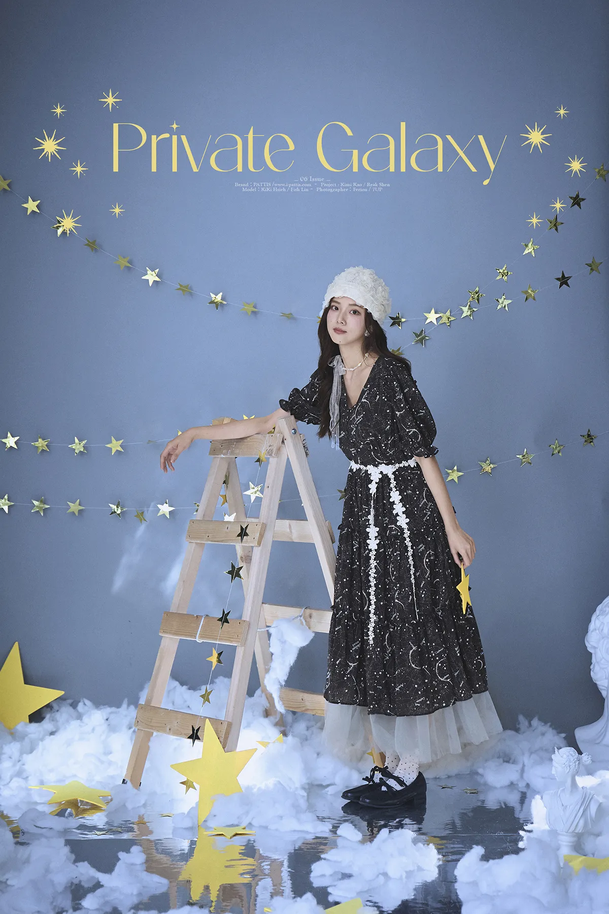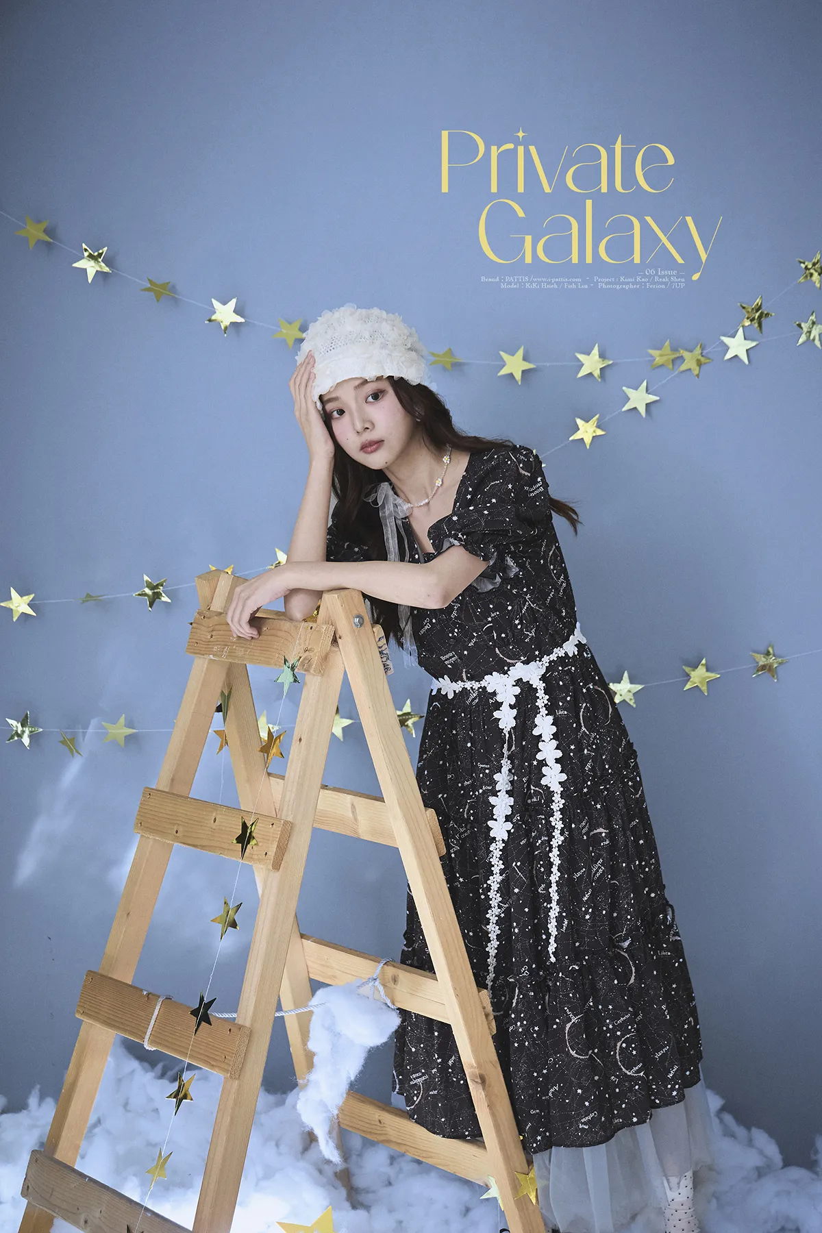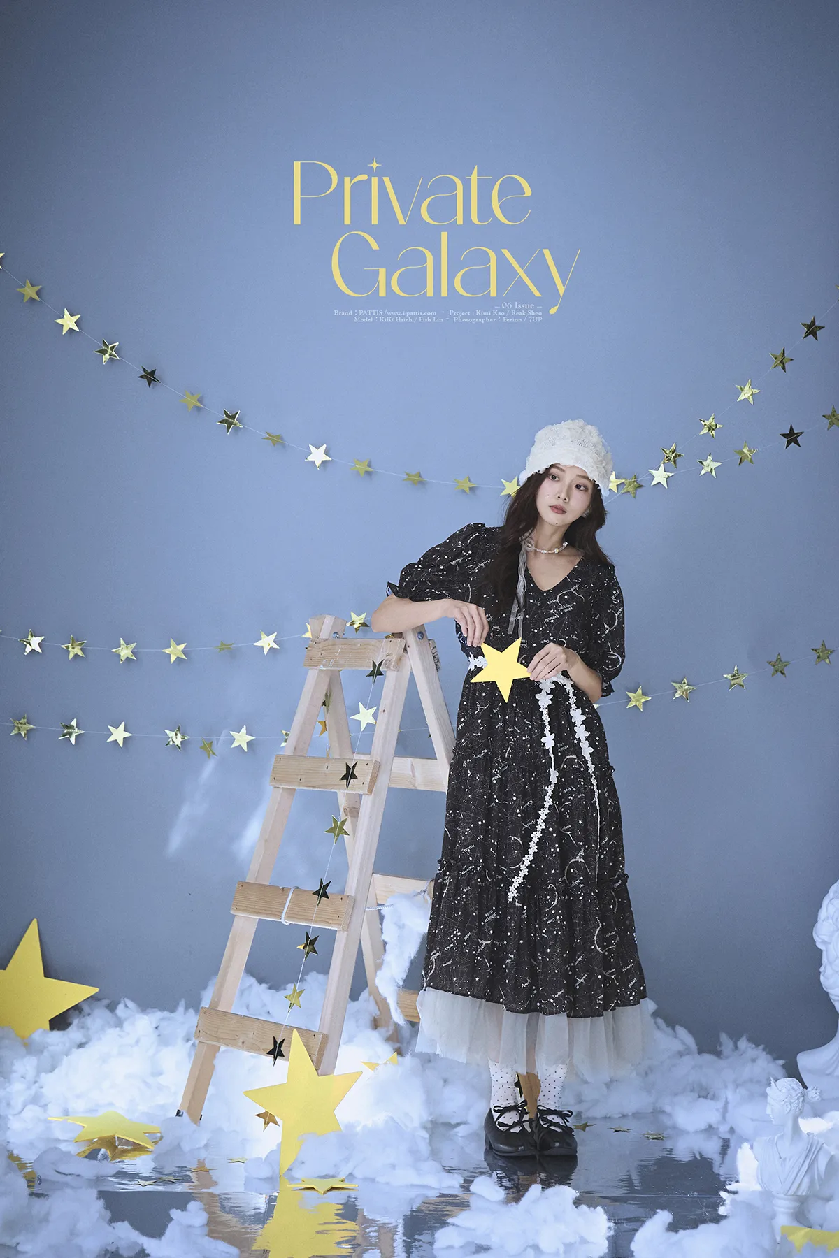 如果繁星墜落白日夢 | 星座印紋字母拼接網紗洋裝(恆星黑)