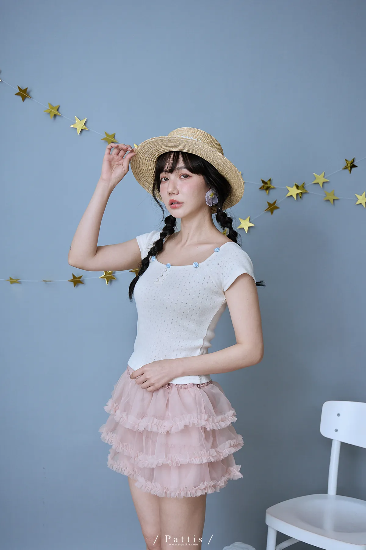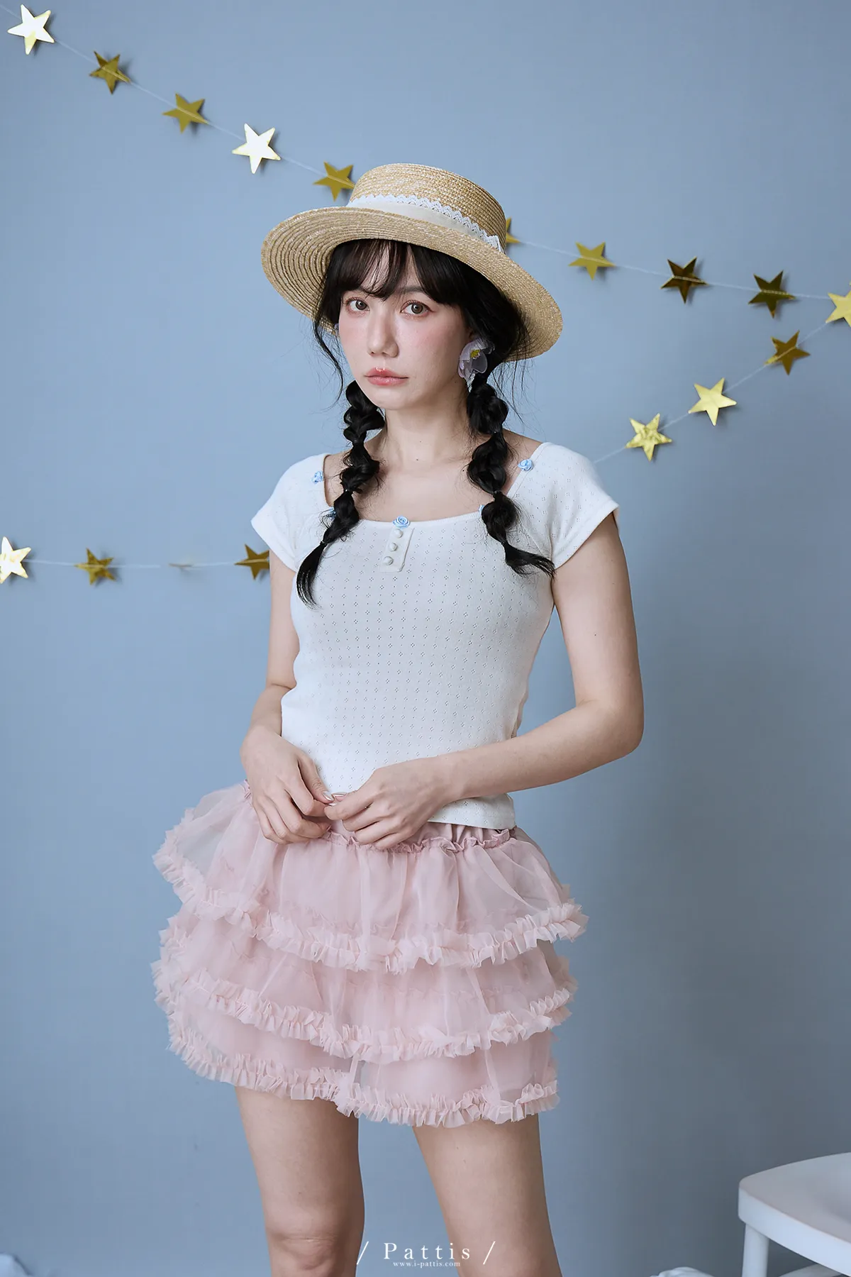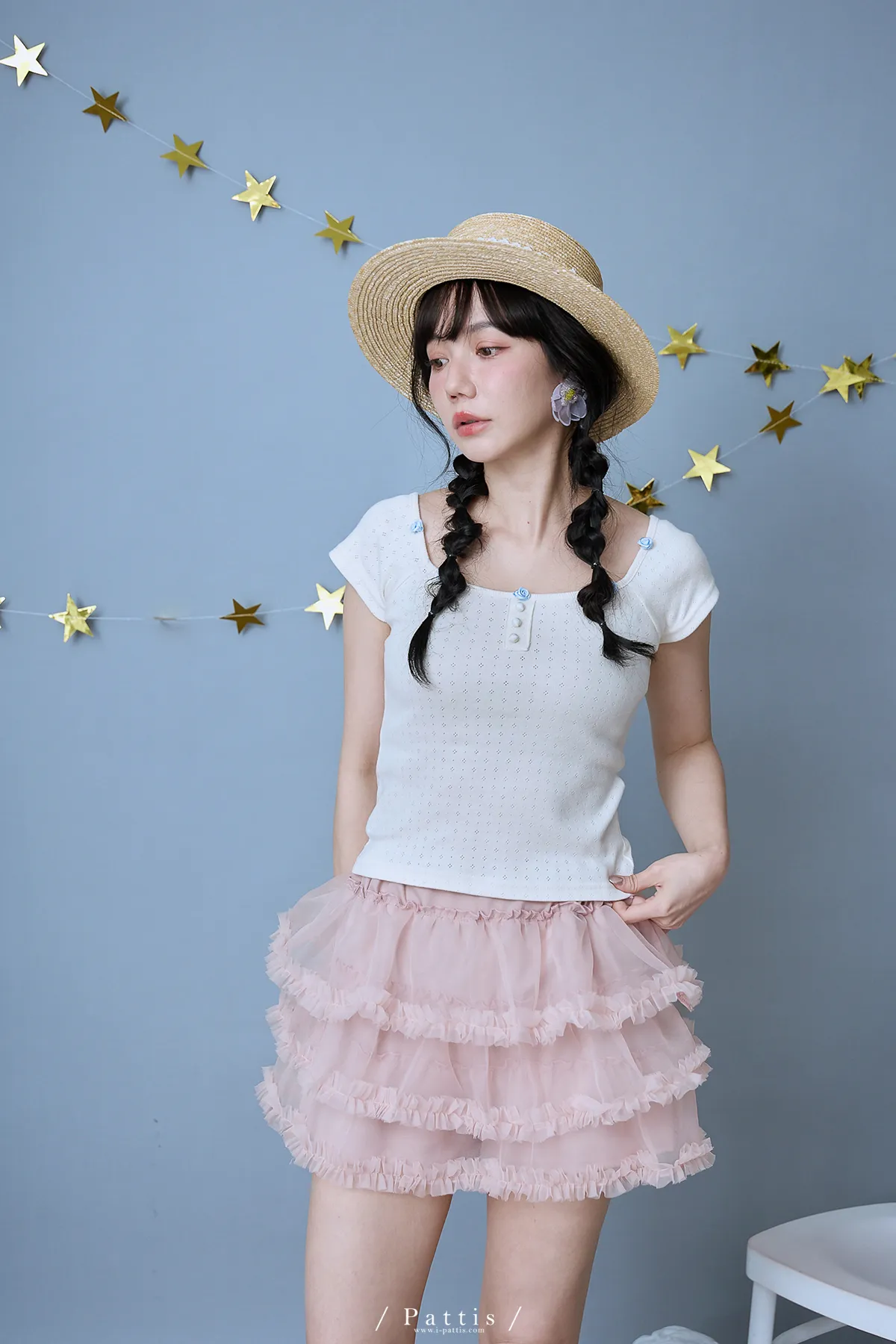 (現貨) 玫瑰是愛人的星辰 | 浮雕小玫瑰方領簡約上衣(米白)