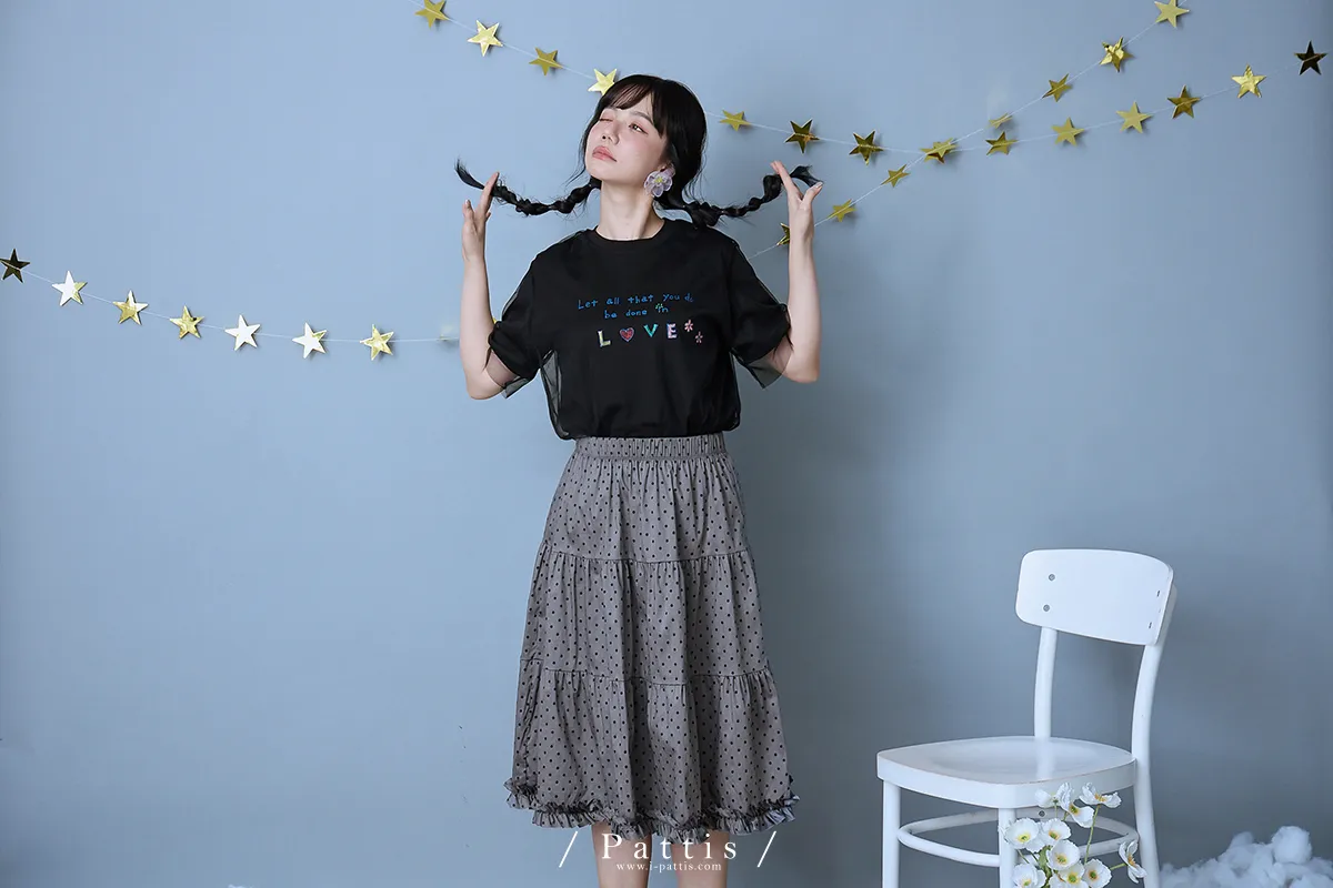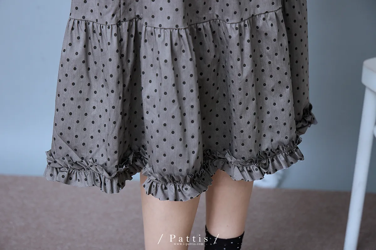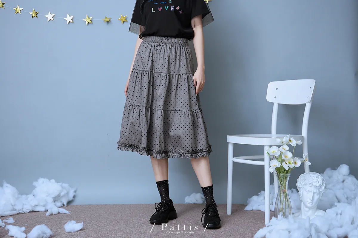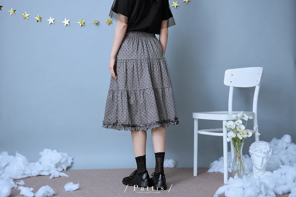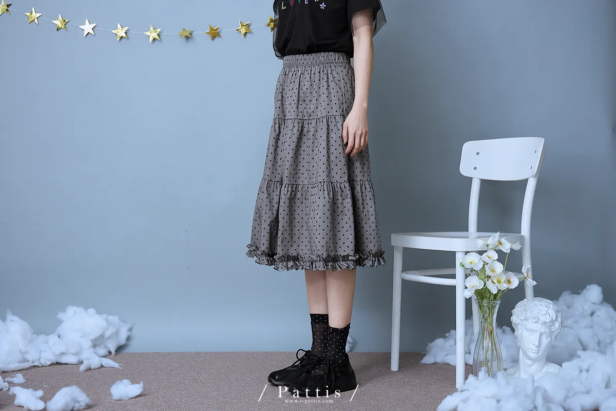 (現貨) 印記 | 點點裙襬綴不收邊荷葉蛋糕長裙(灰黑)