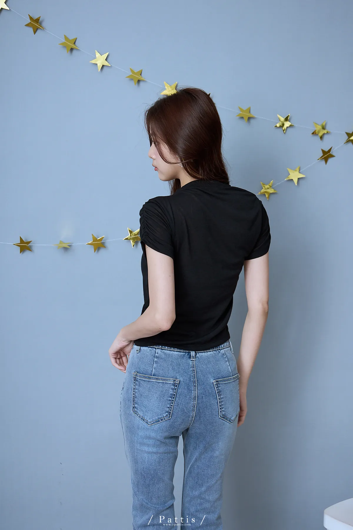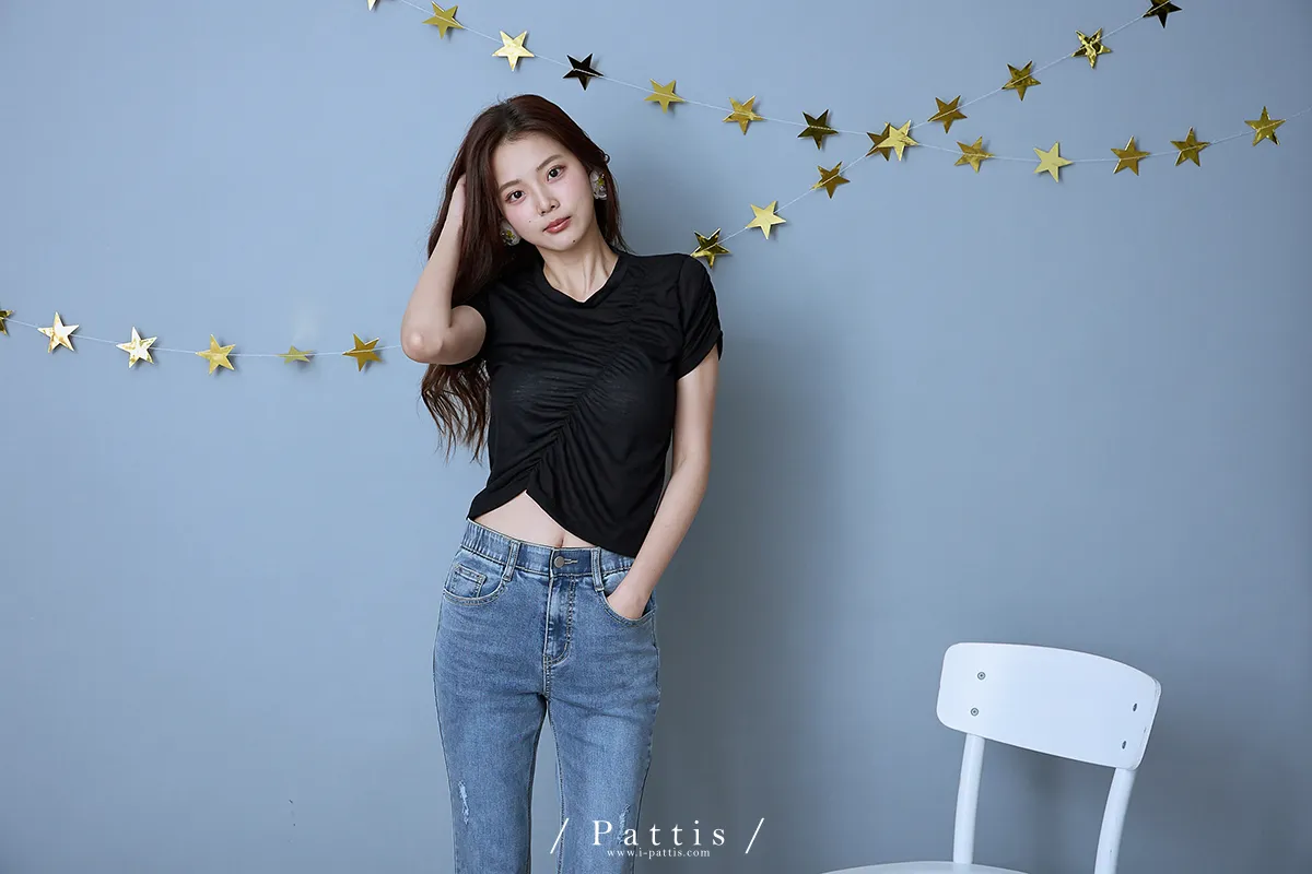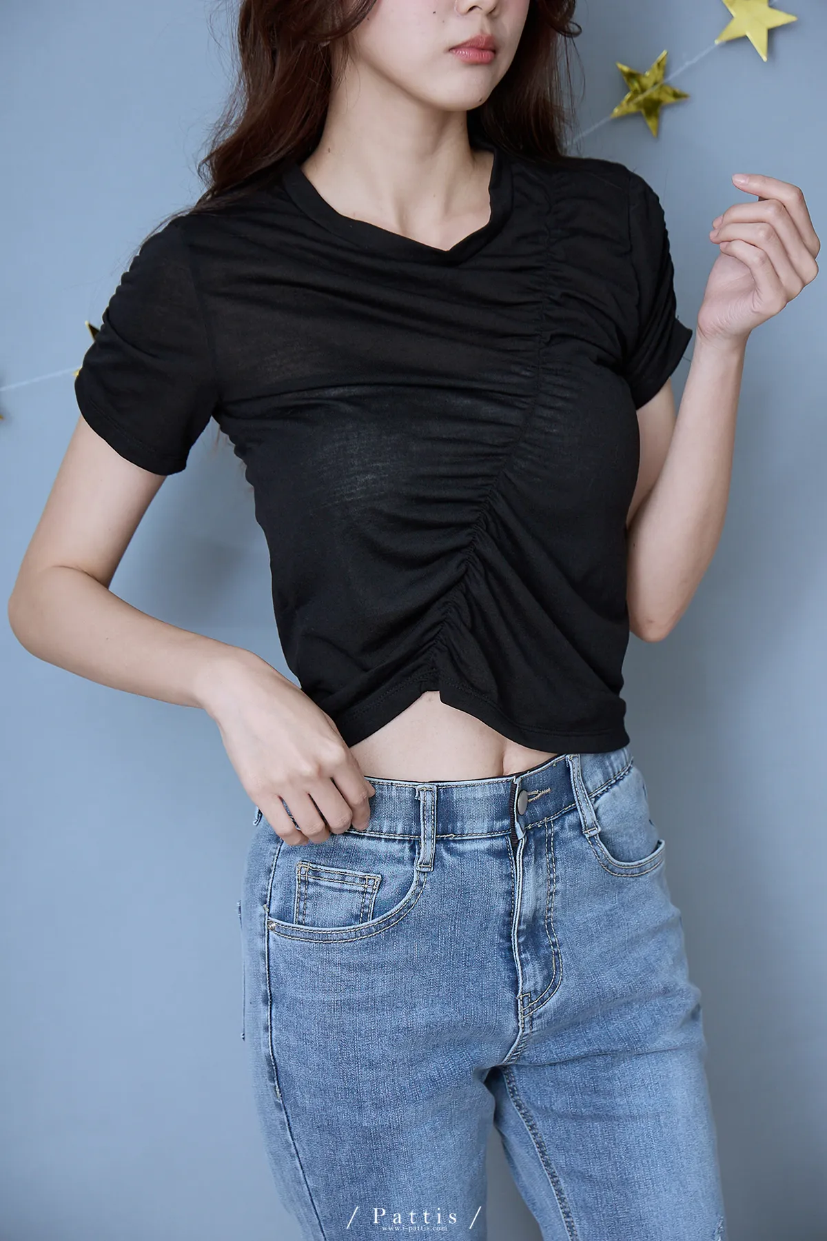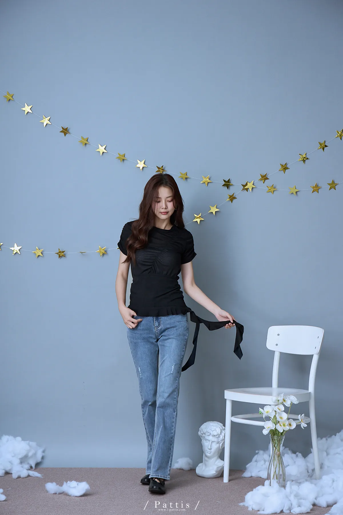 (現貨) 兩件式抓皺圓領上衣+荷葉斜邊背心set(黑)