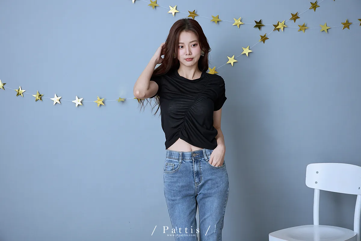 | 上衣-F | 42-53(前短後長) | 32 | 40 | 38 | 13-19(鬆緊) | 13 | 10 | 19 | 棉 | X | 直接穿套 | 前有抓皺造型 |
