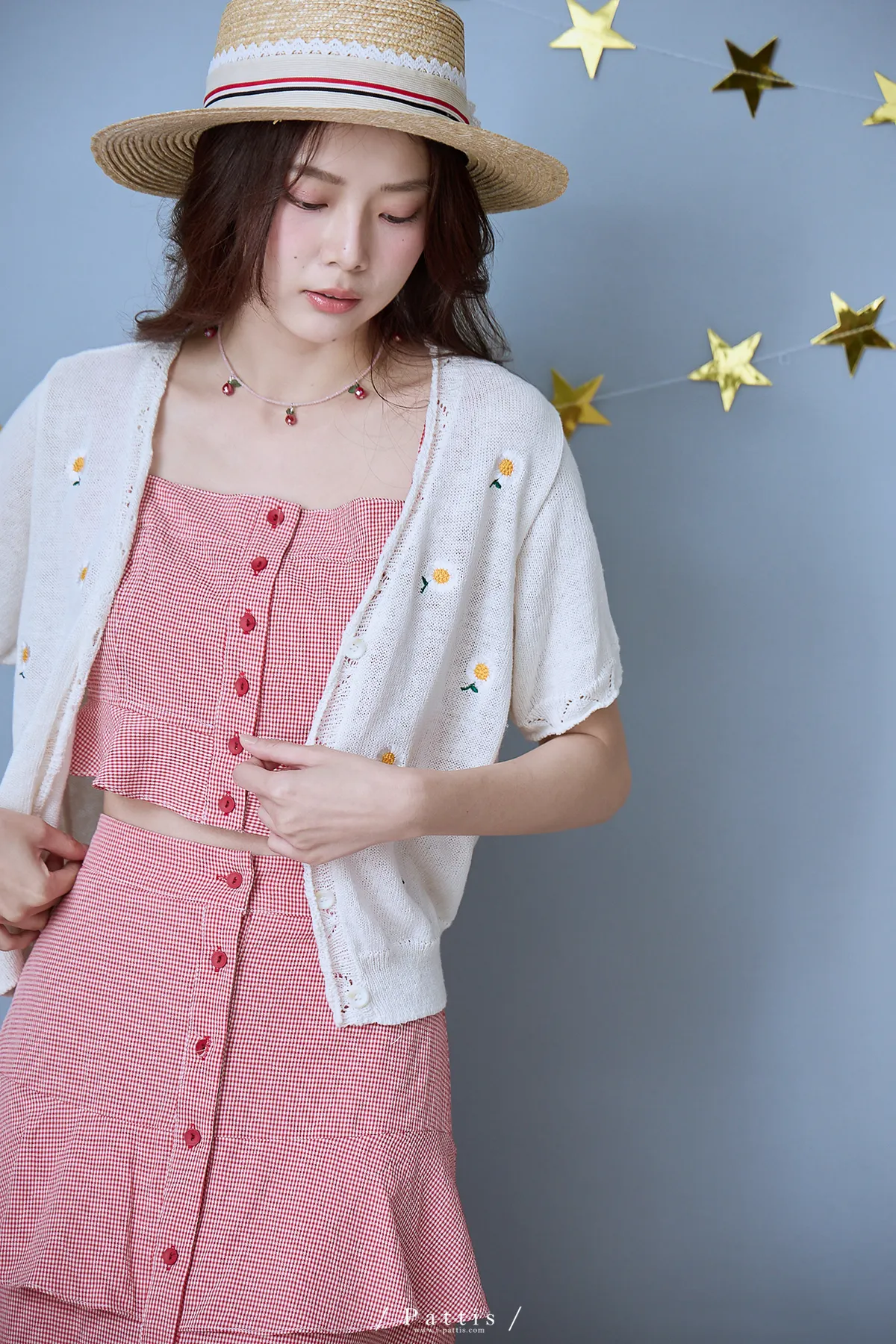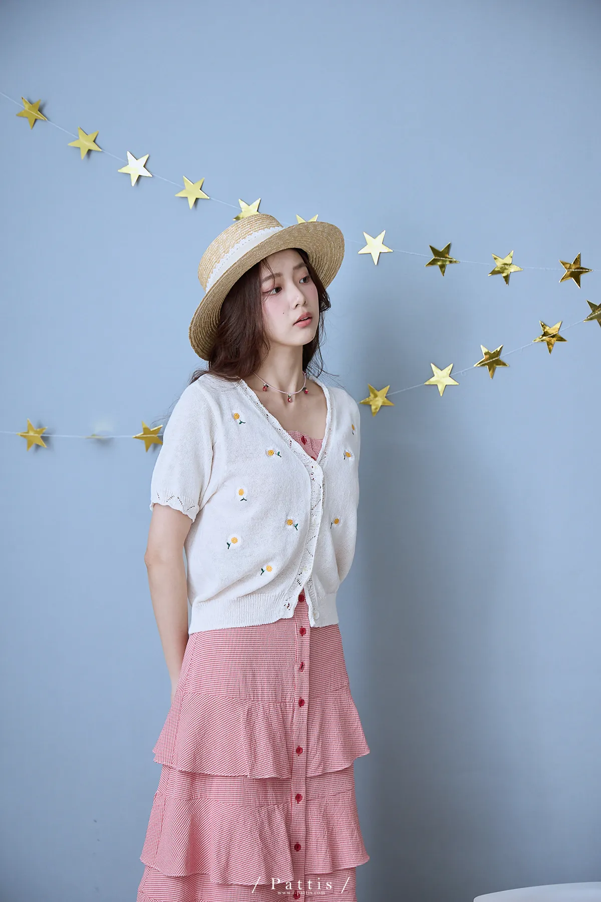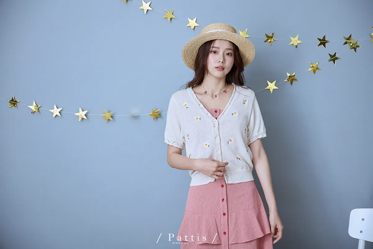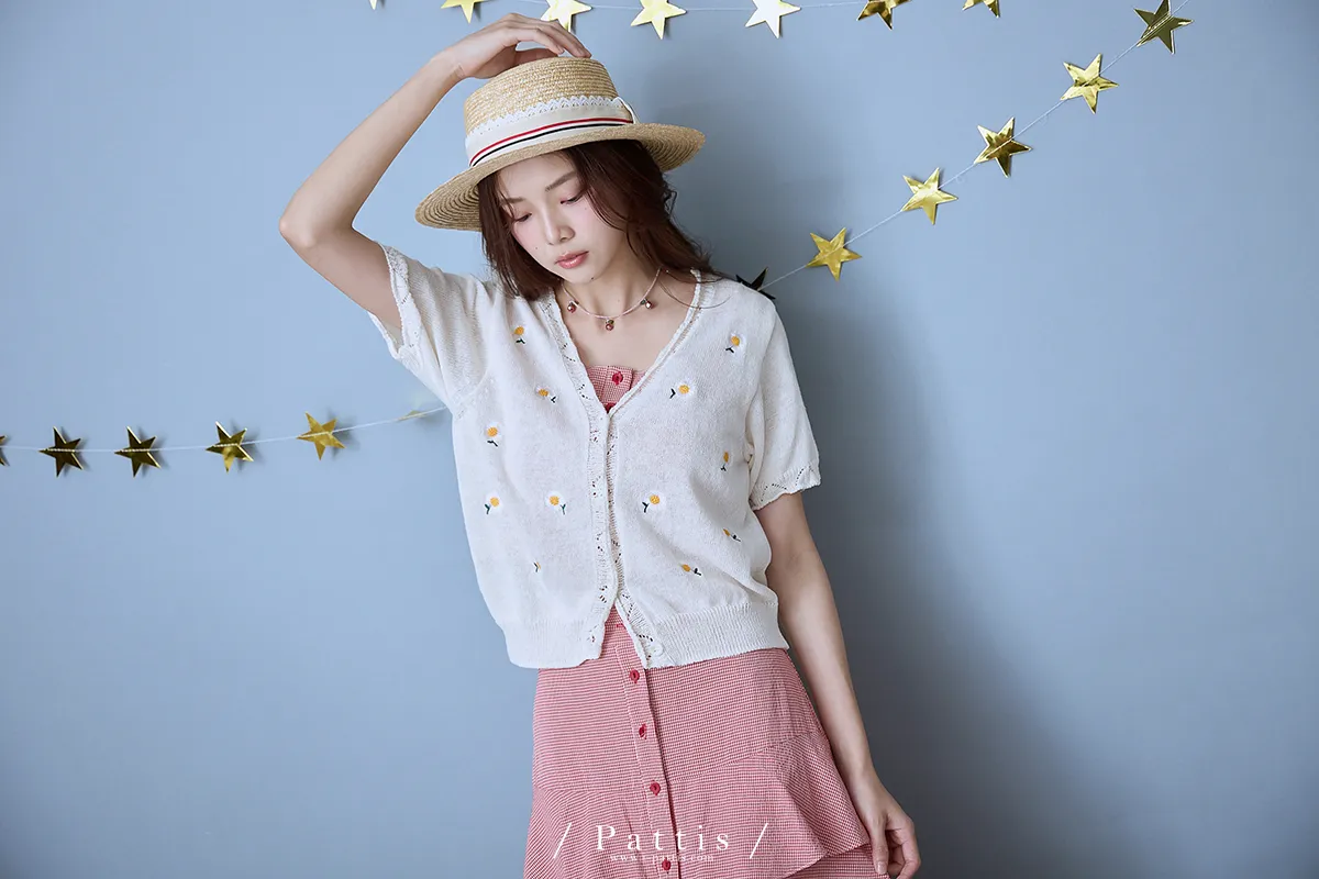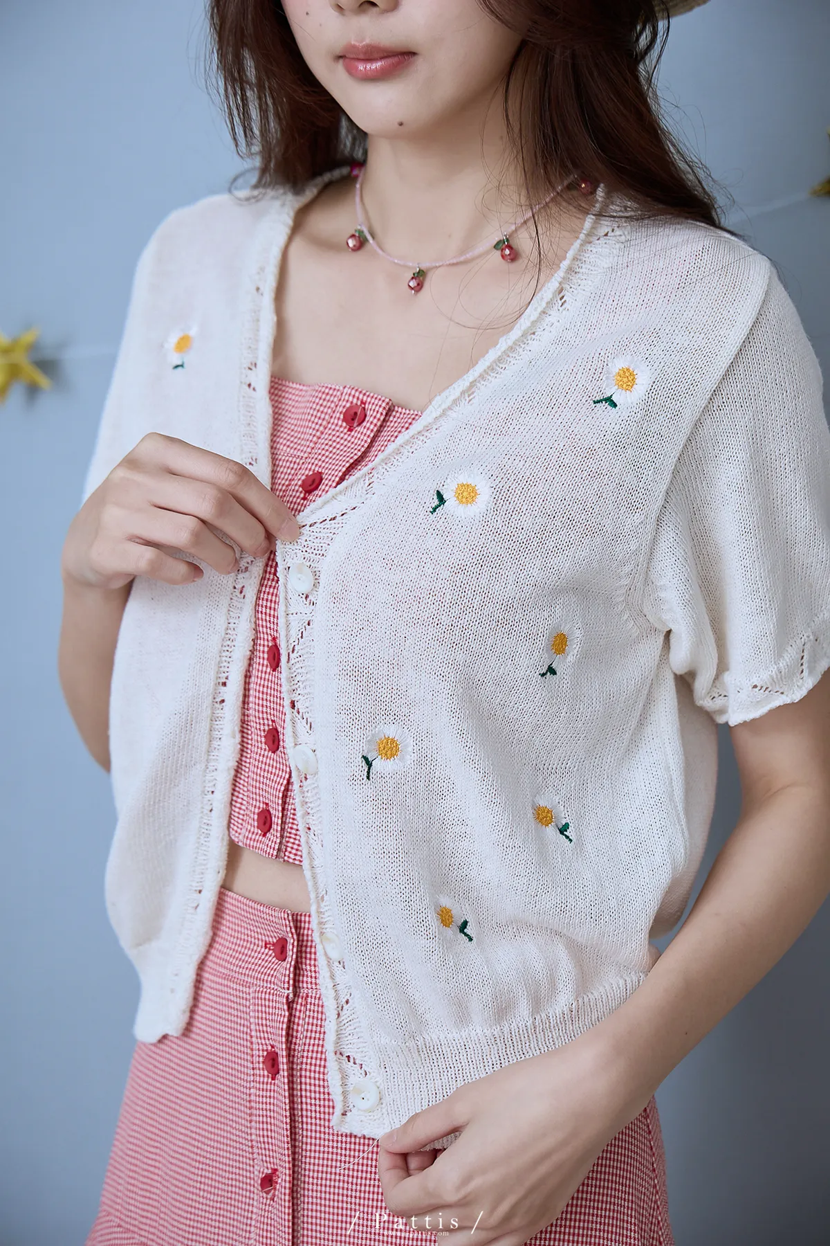 (現貨) 午後向微風告白 | 小雛菊刺繡V領薄針織外套(米白)