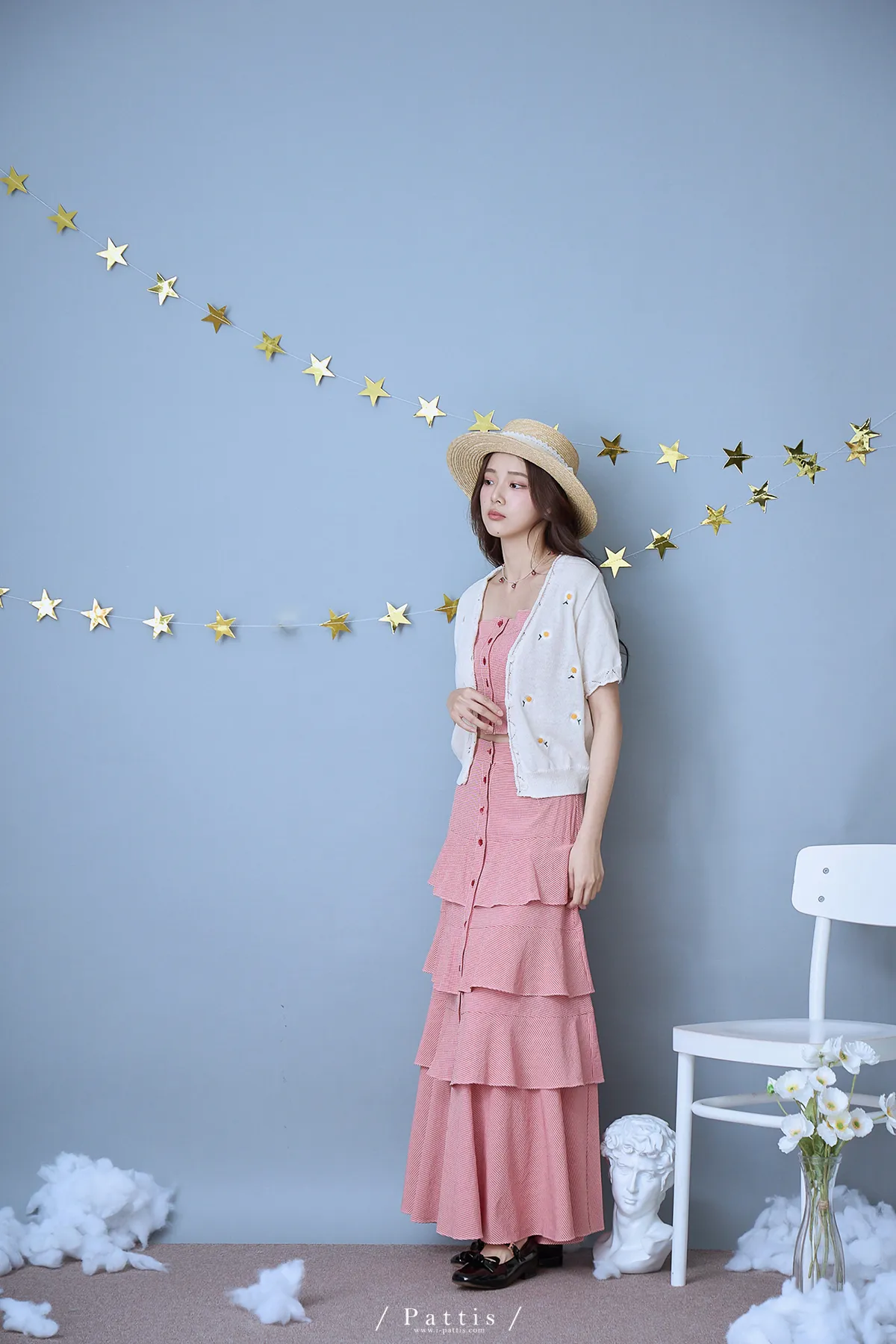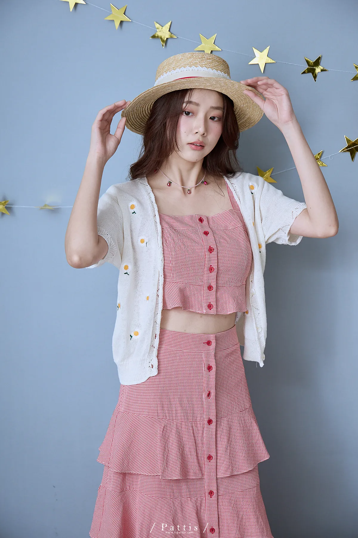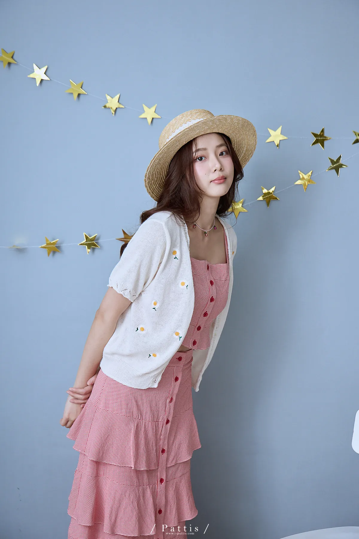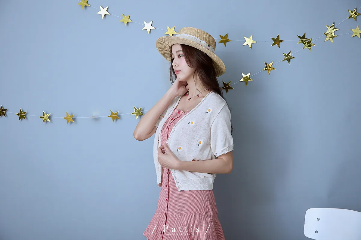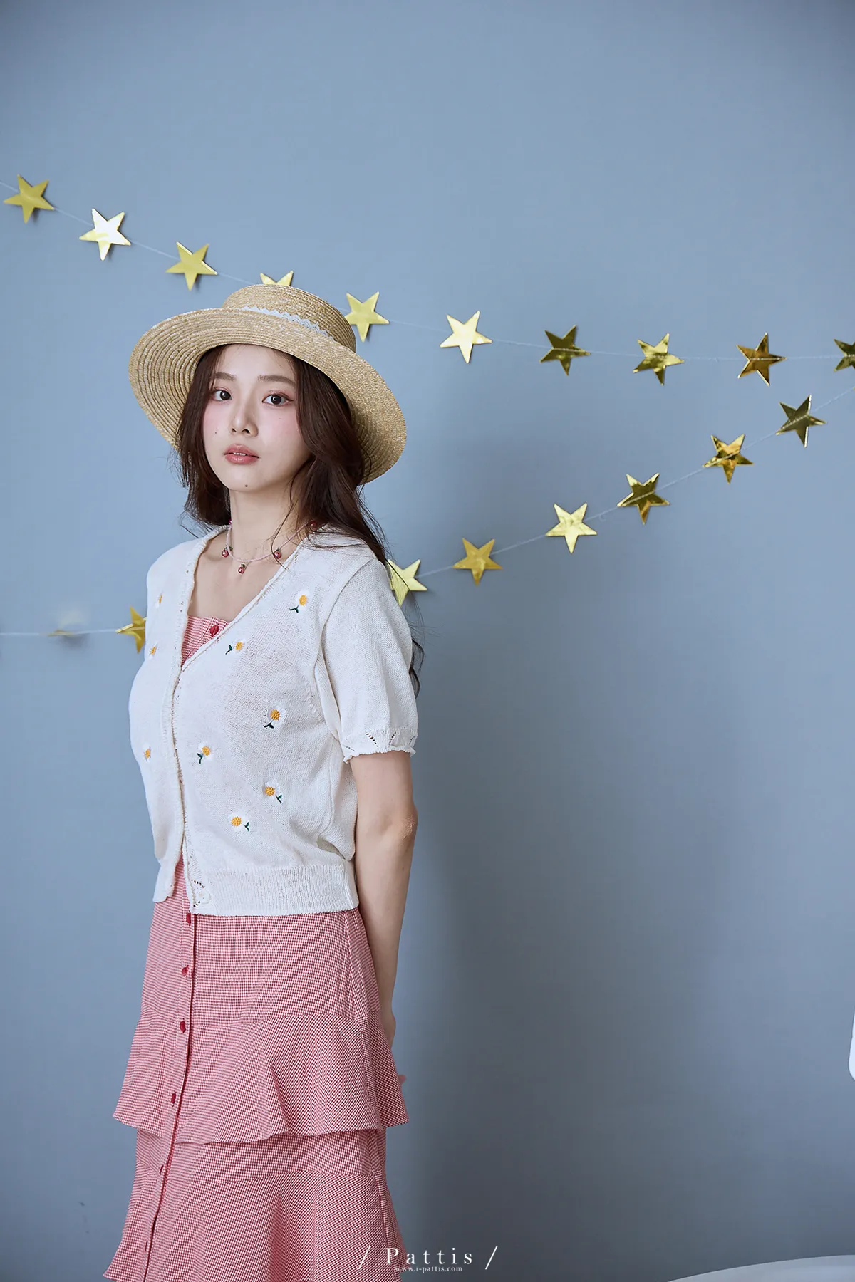 (現貨) 午後向微風告白 | 小雛菊刺繡V領薄針織外套(米白)