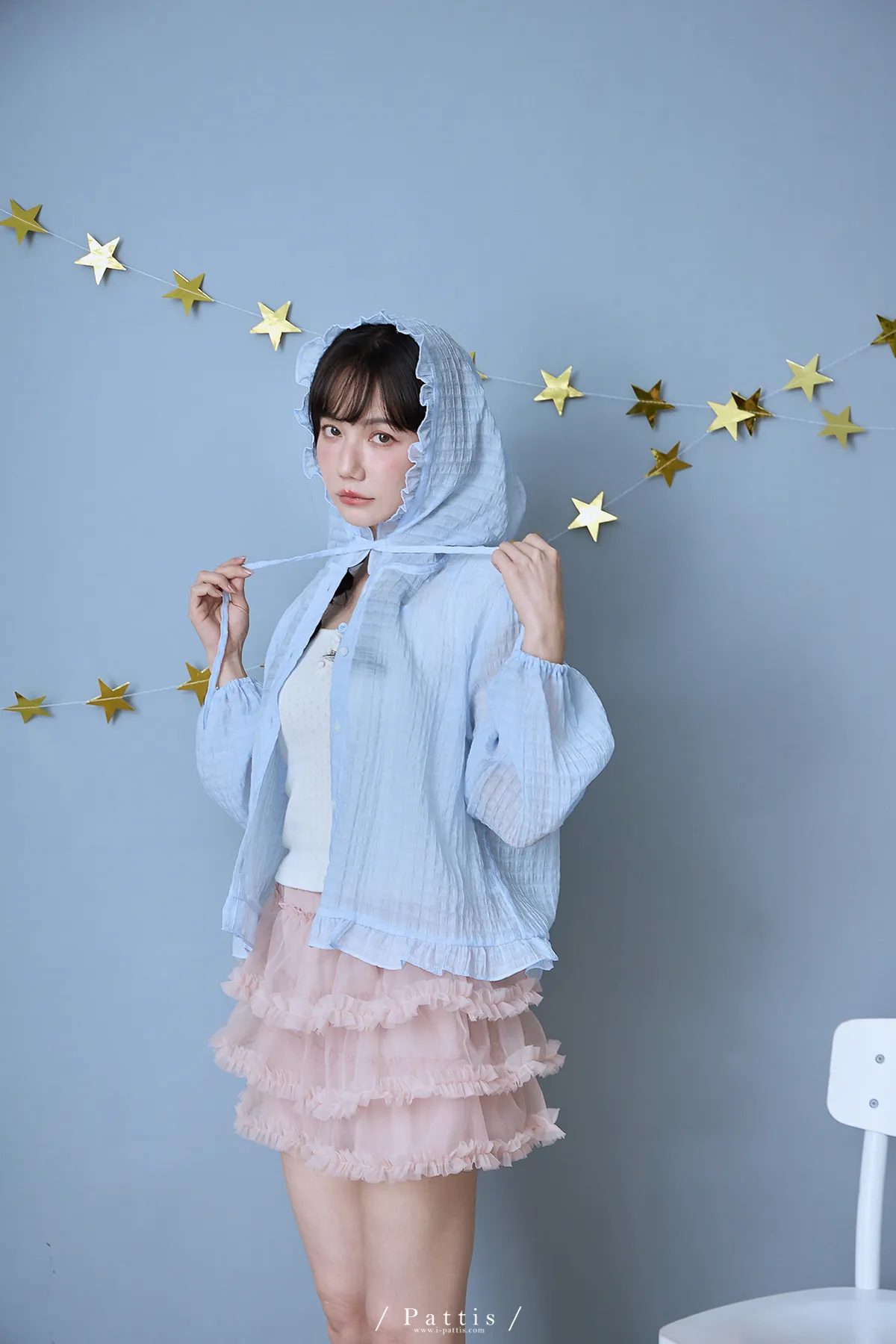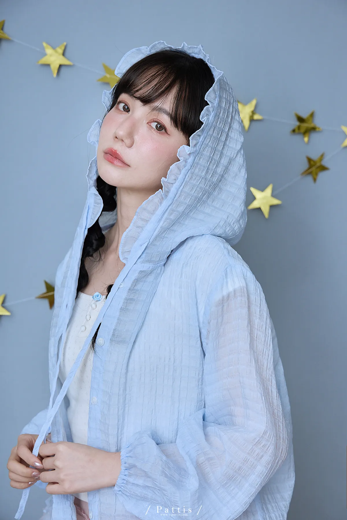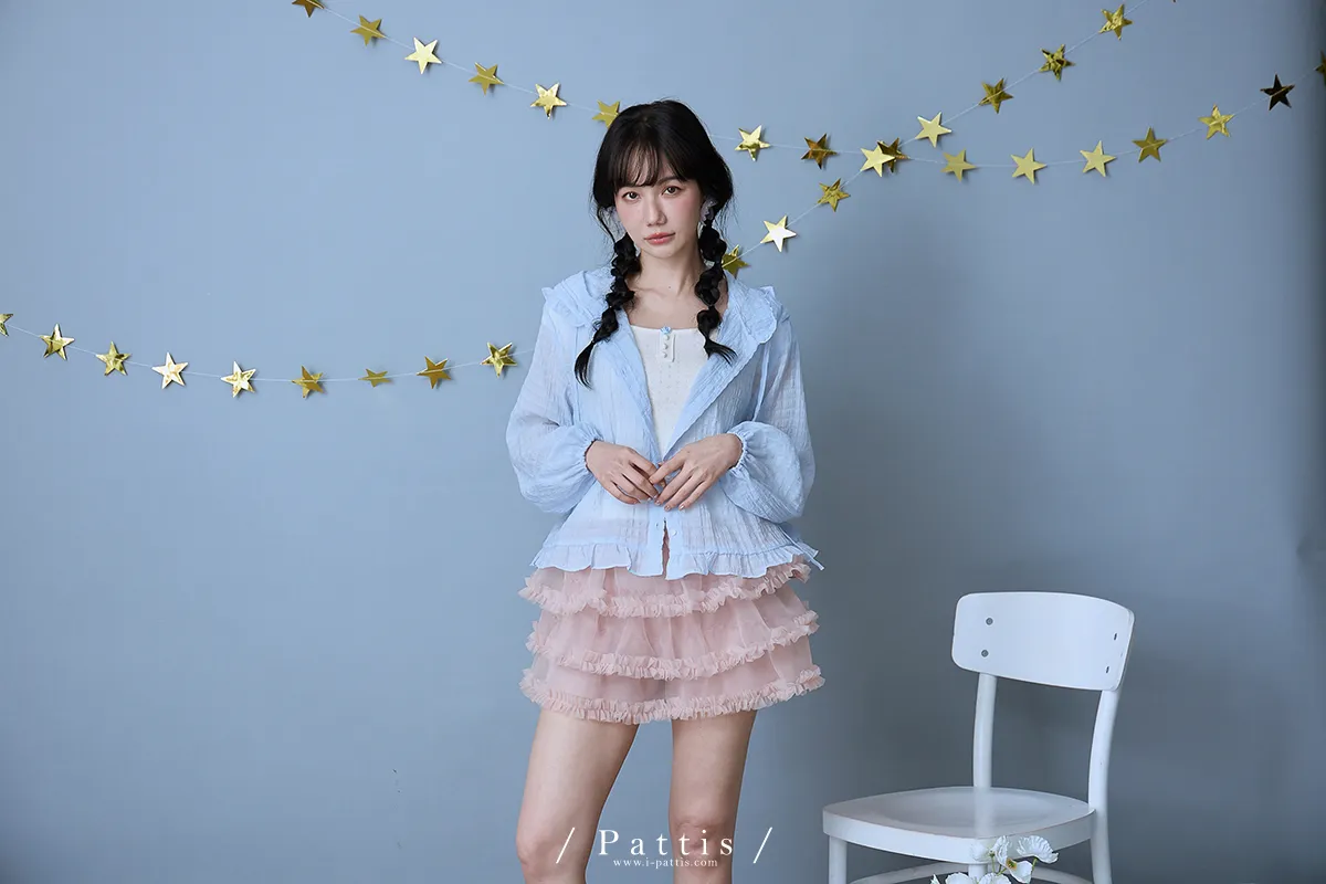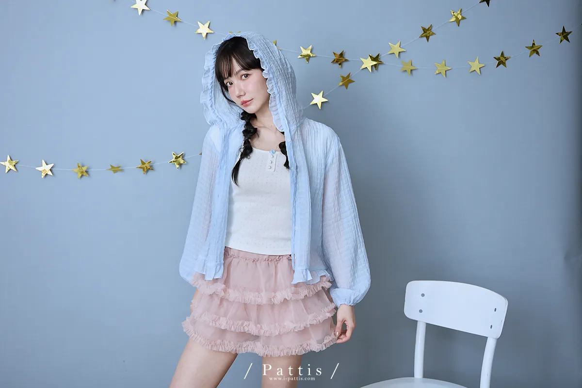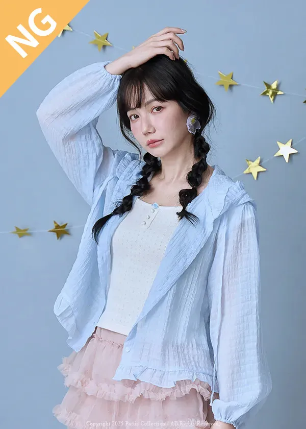 / NG品 原價$1280 /雲朵間泡泡 | 親膚輕量格紋荷葉帽抽繩外套(藍)