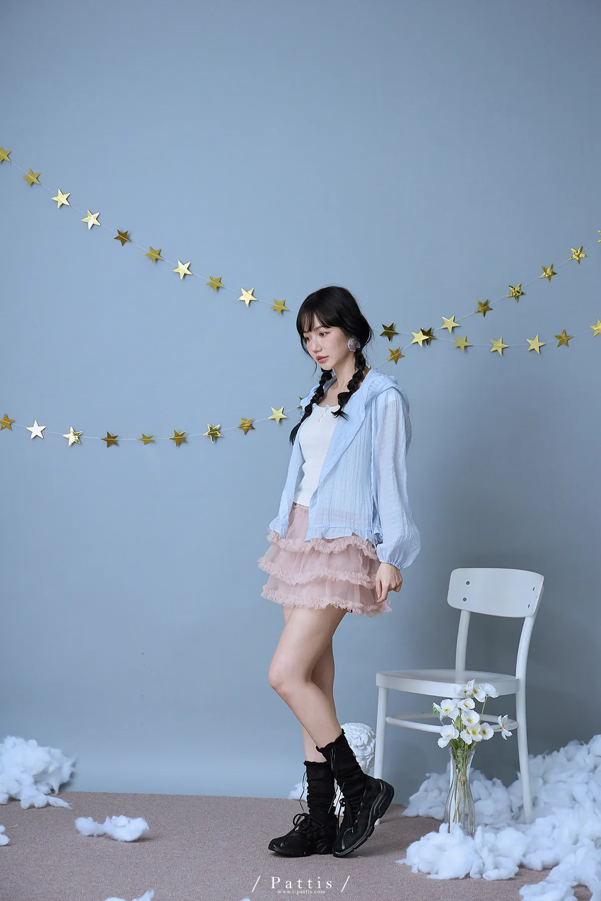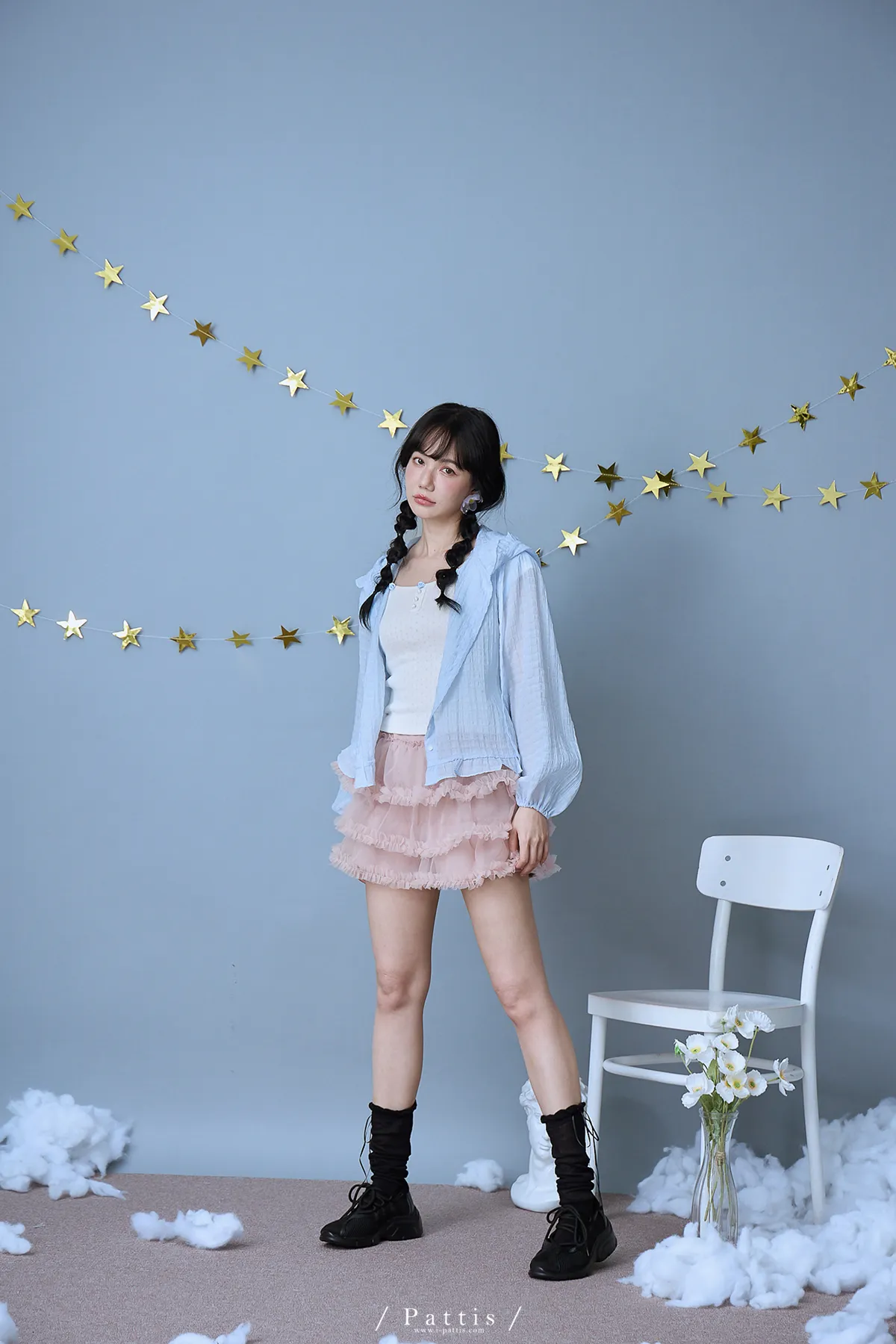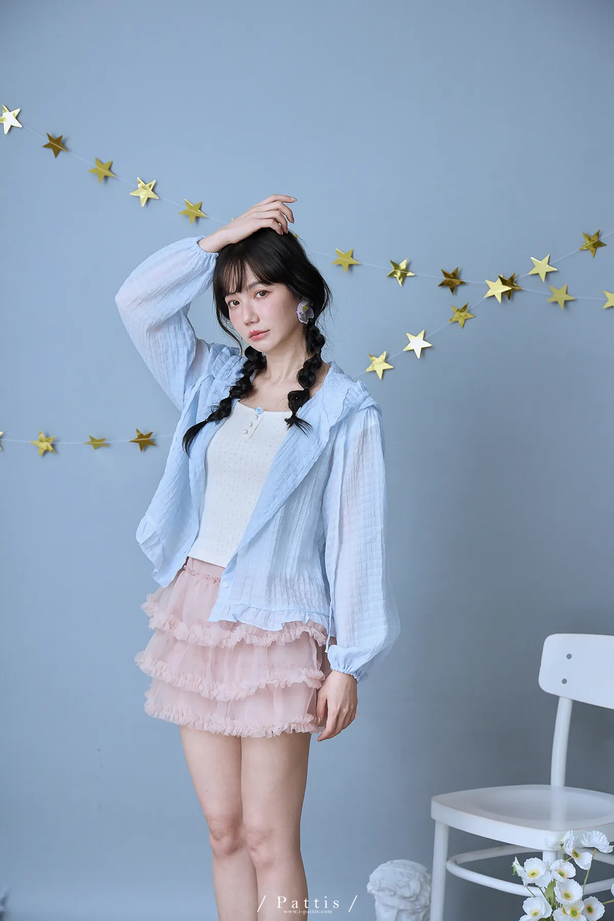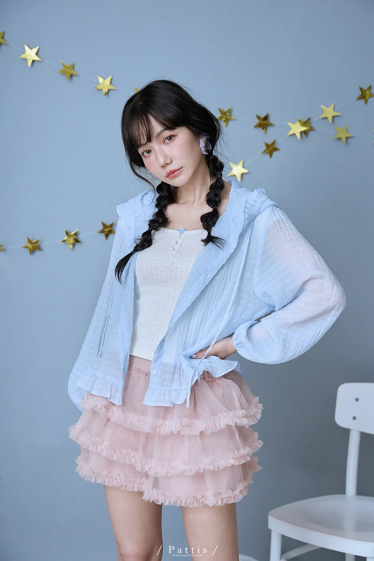 / NG品 原價$1280 /雲朵間泡泡 | 親膚輕量格紋荷葉帽抽繩外套(藍)