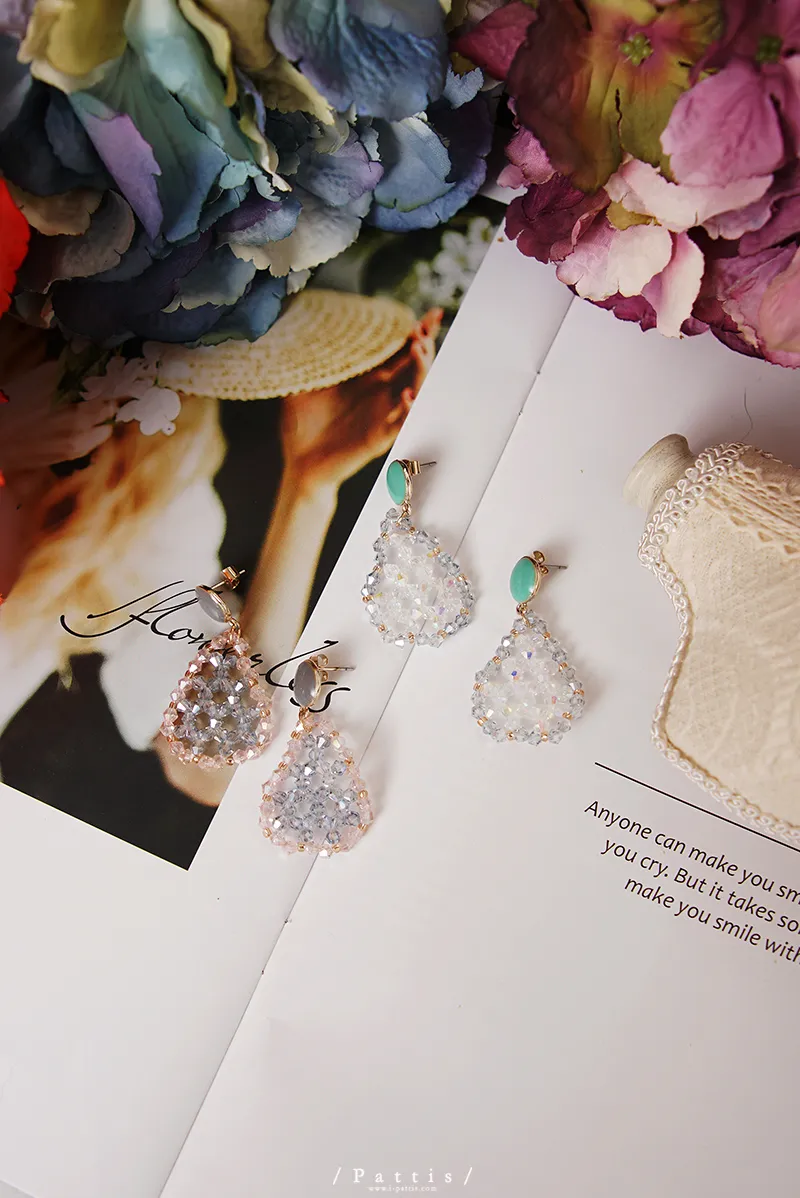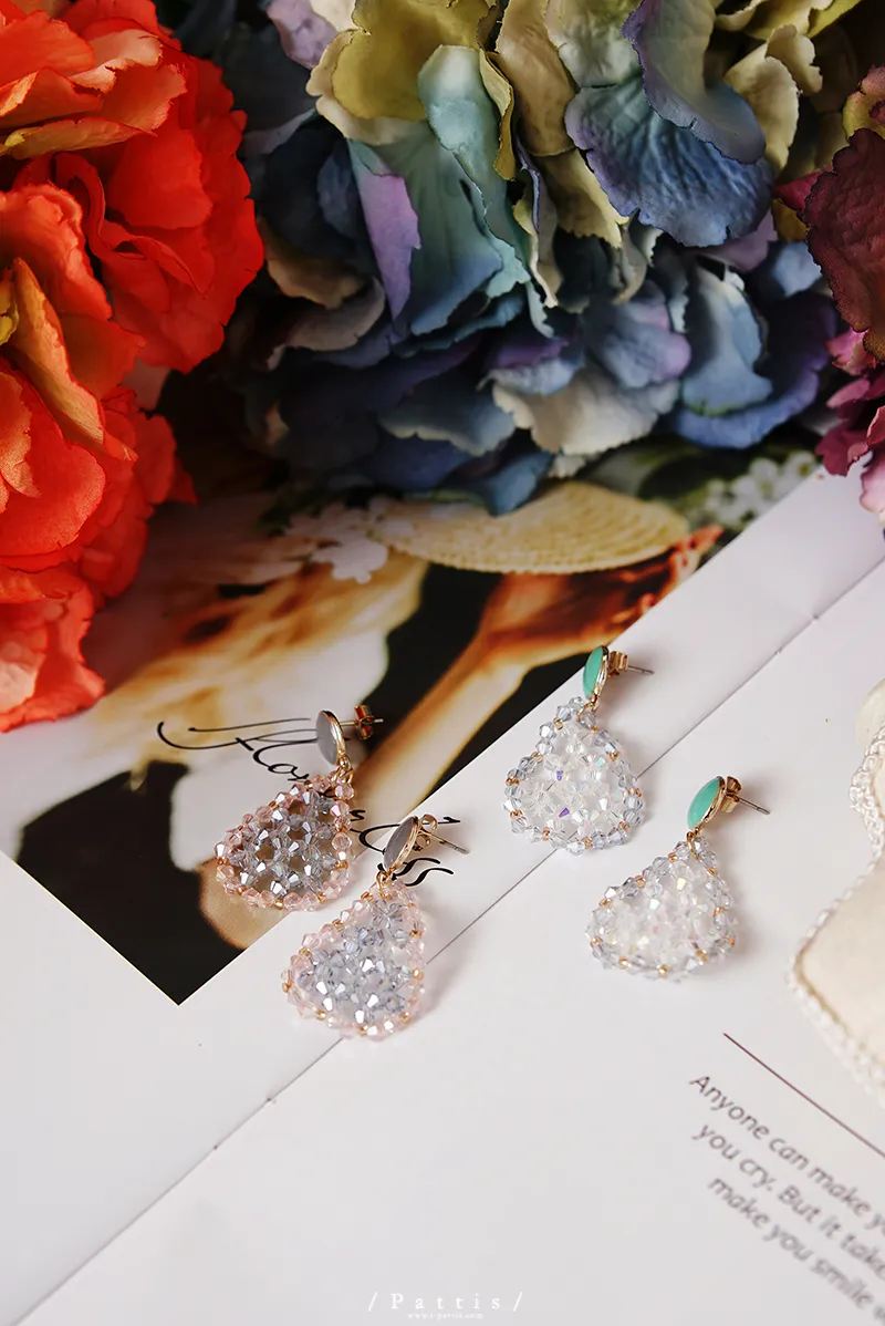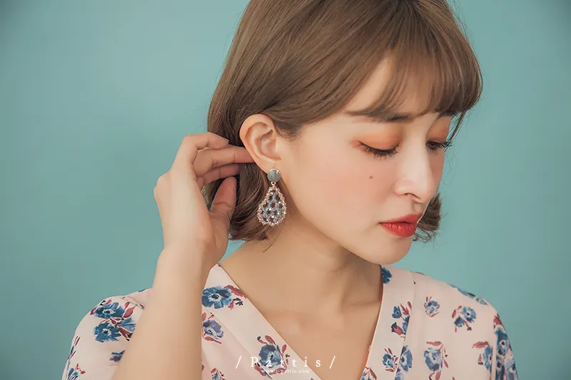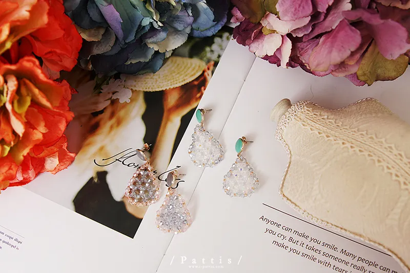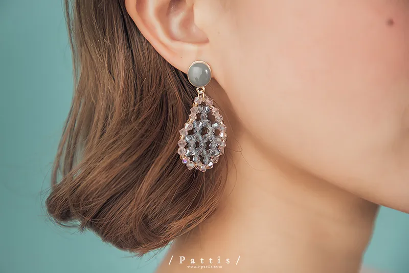 冷靜 | 水晶透明水滴感耳環(白灰/粉藍)