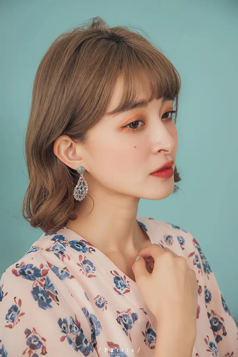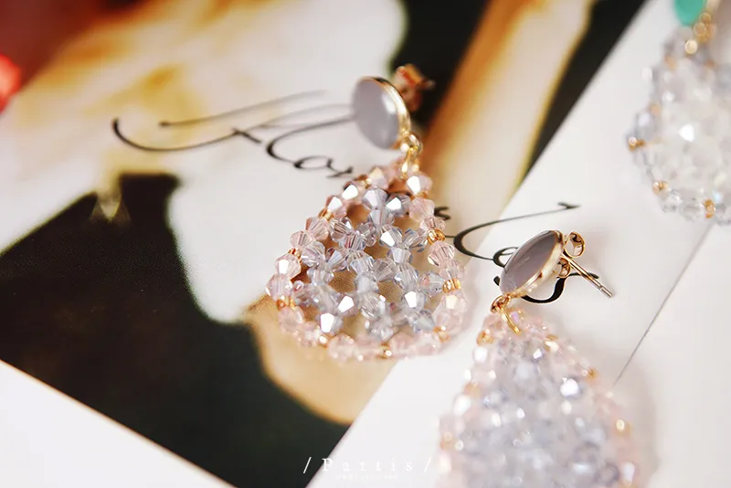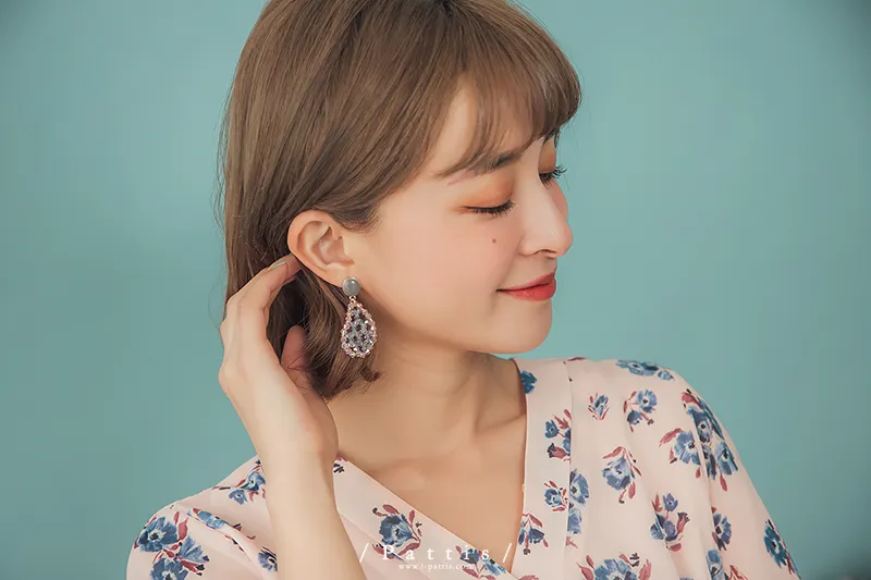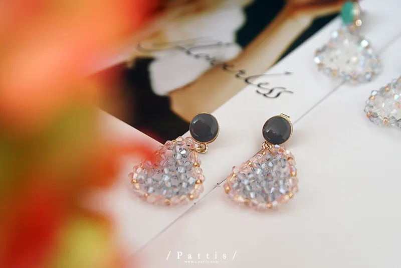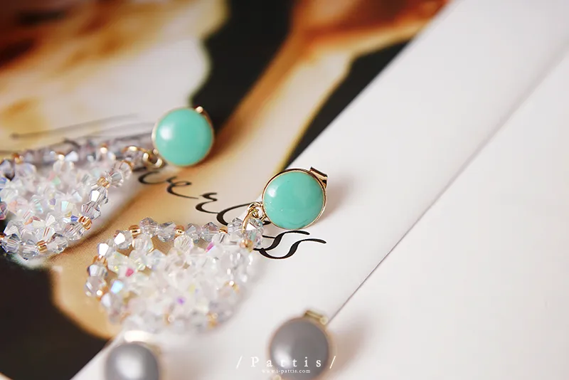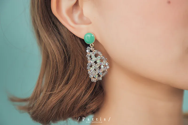冷靜 | 水晶透明水滴感耳環(白灰/粉藍)