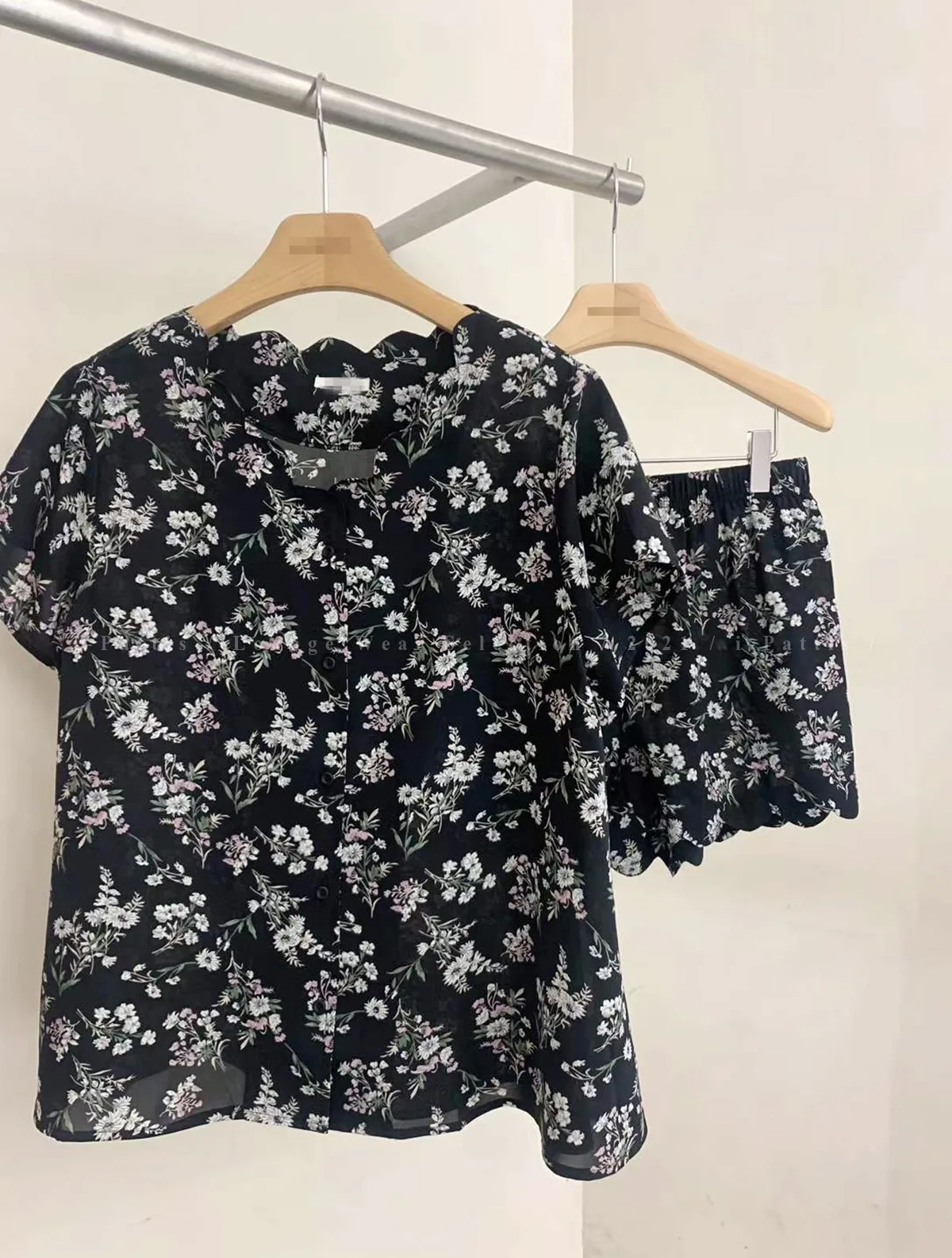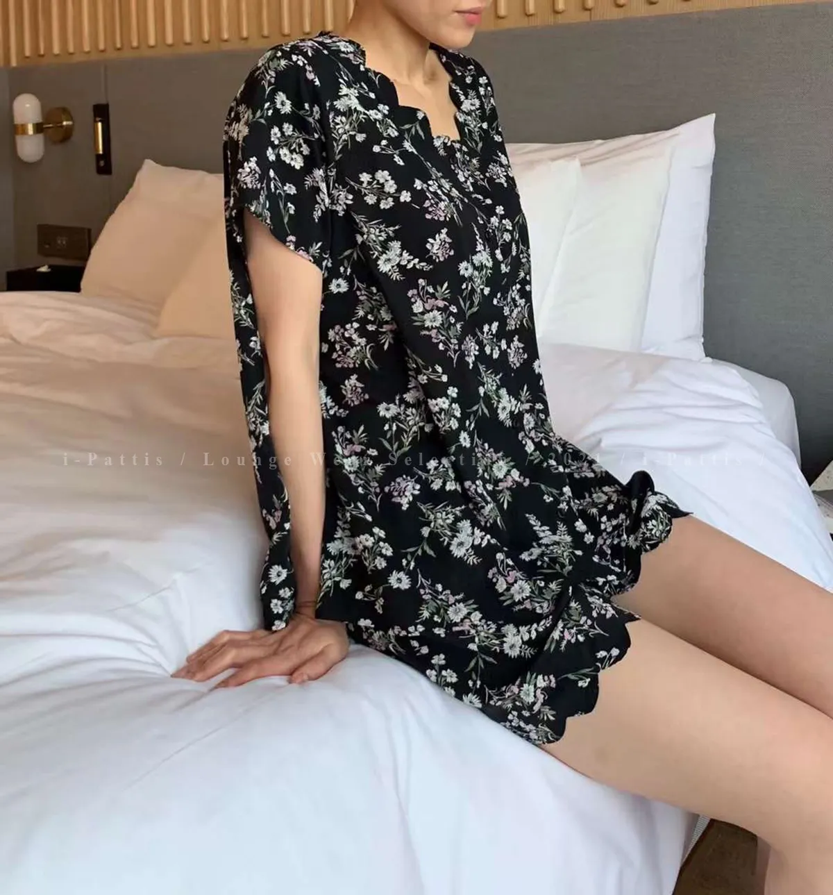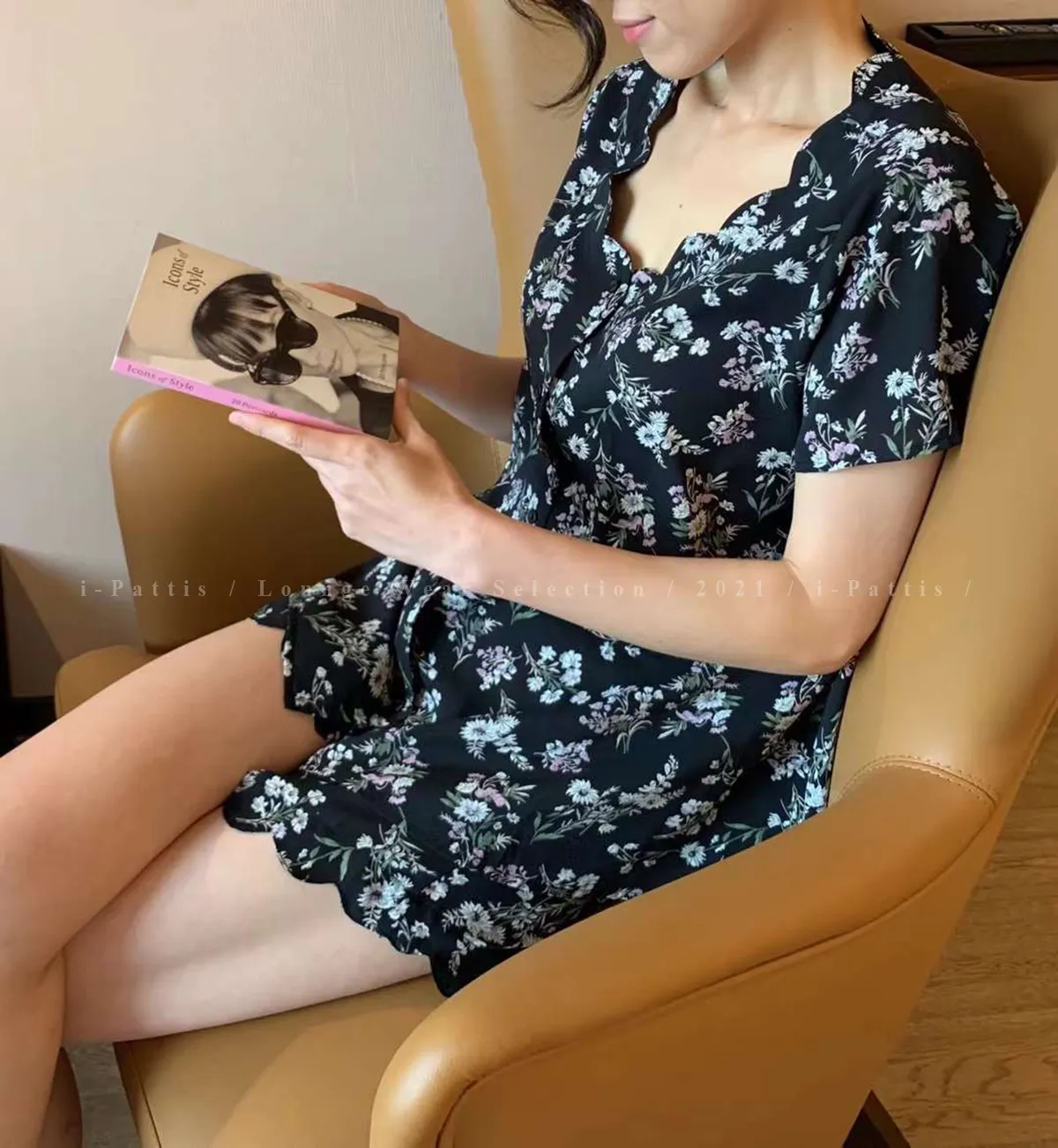 *特* 日系花瓣滾邊上衣+短褲set組(白/黑)
