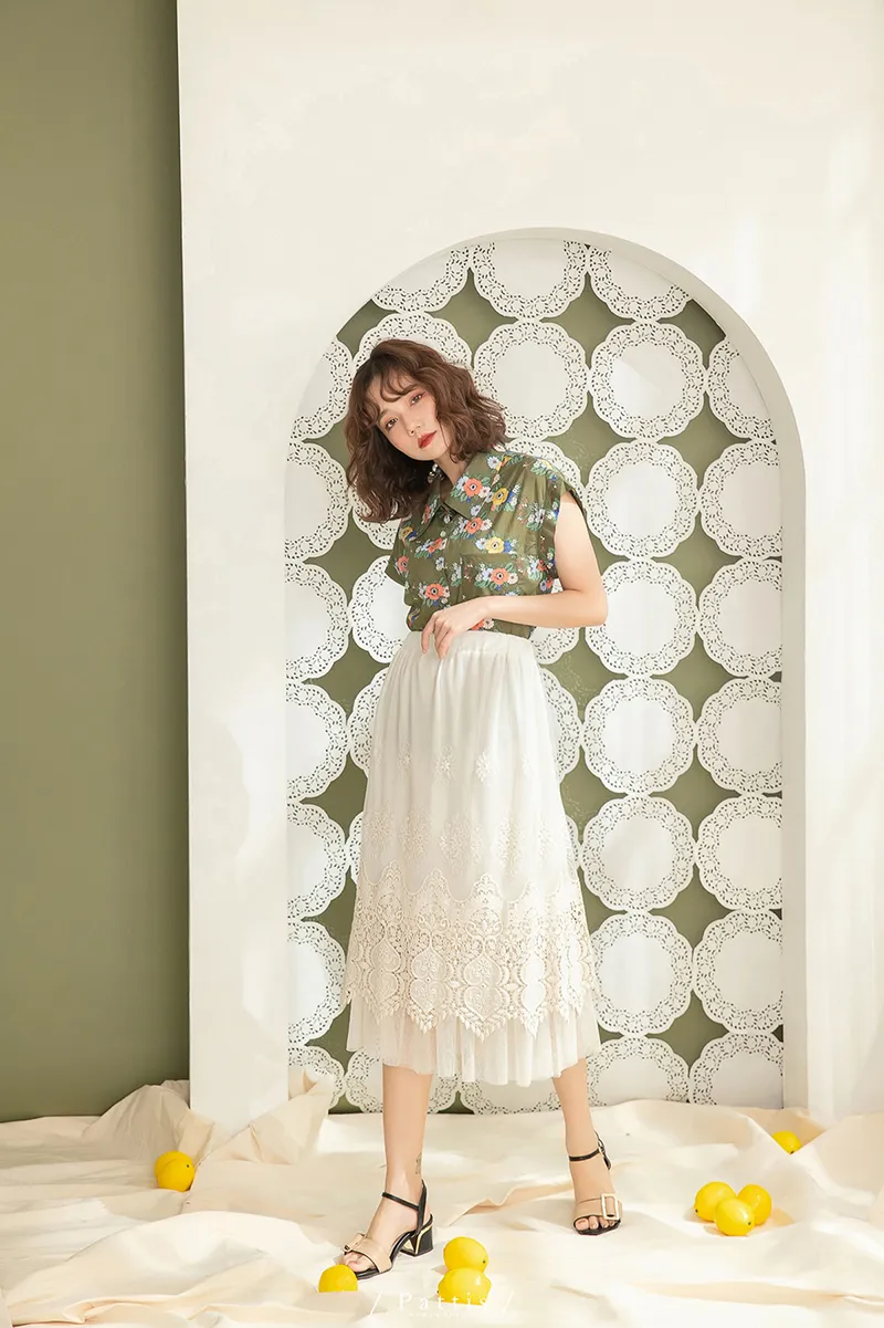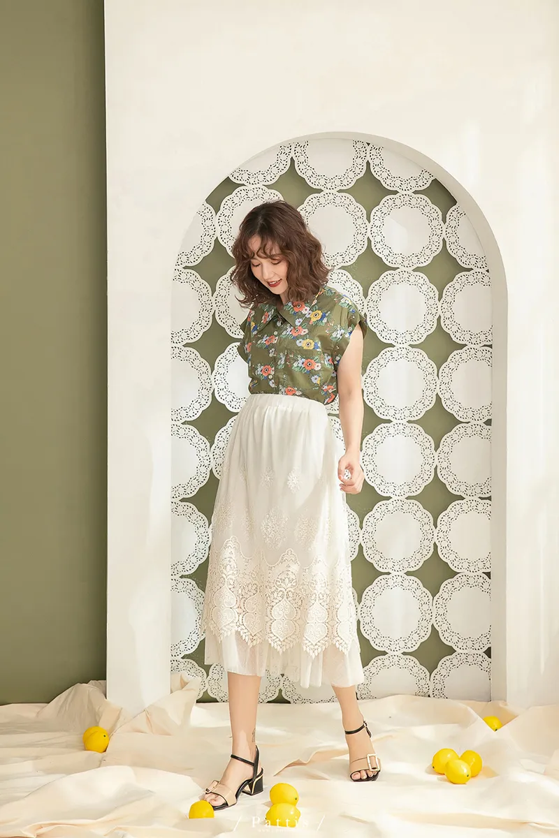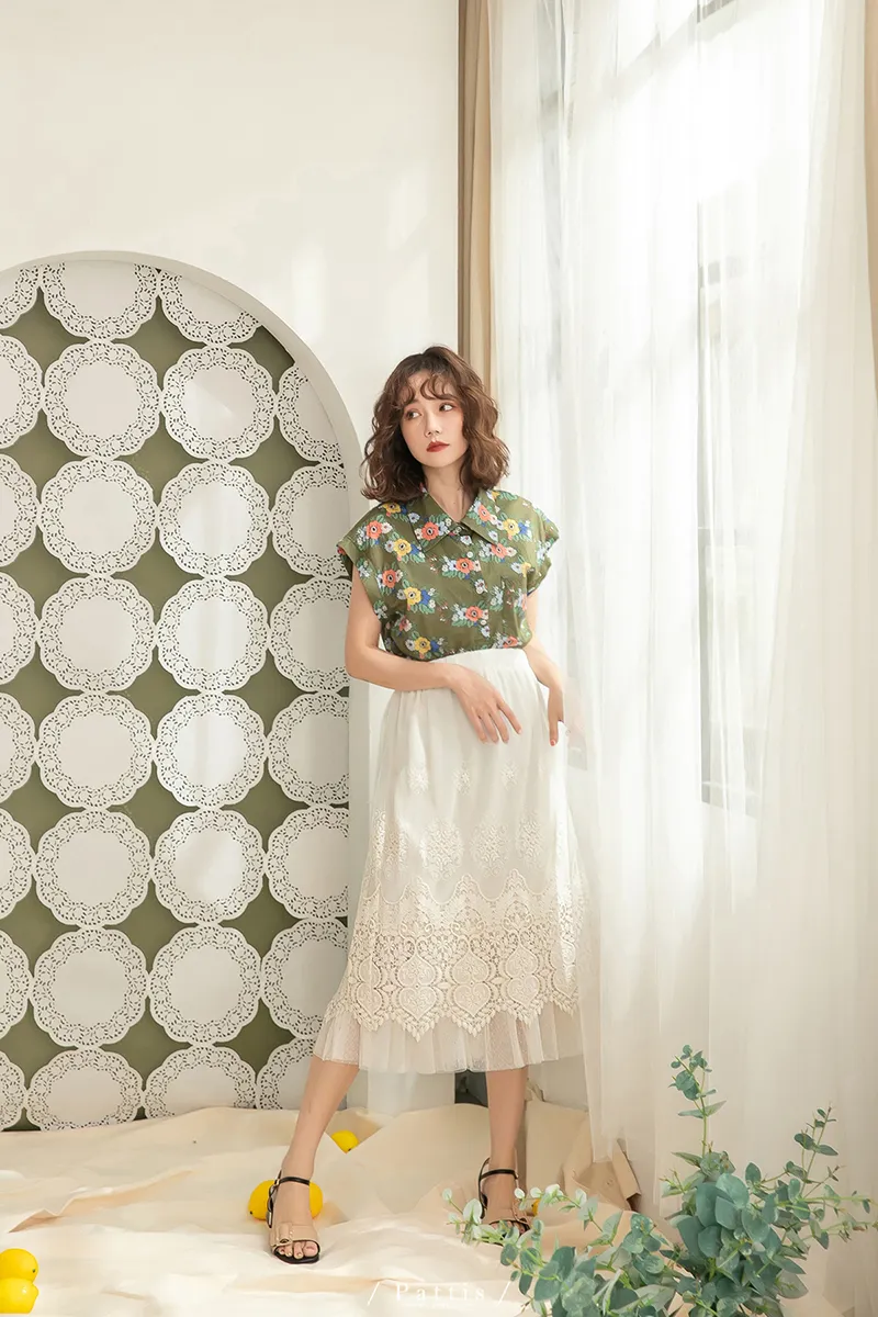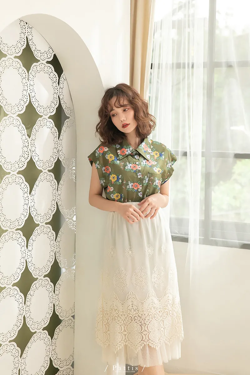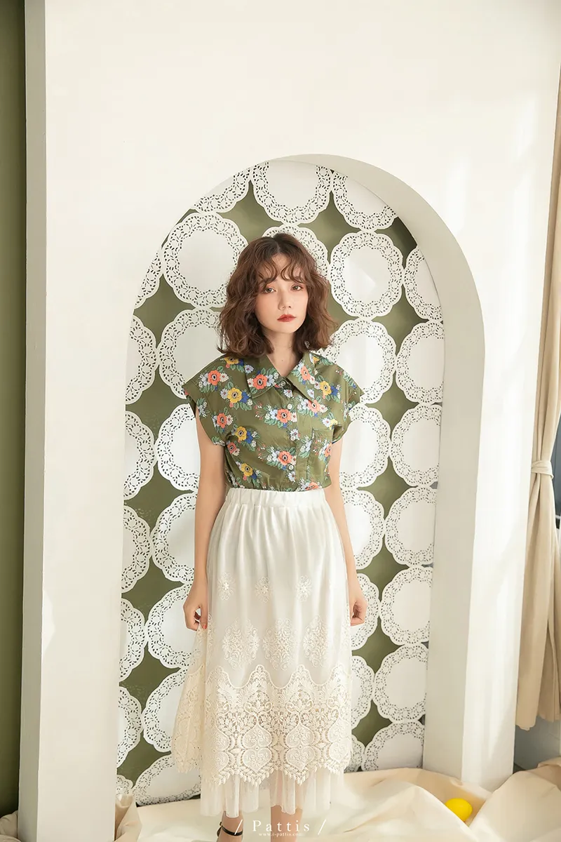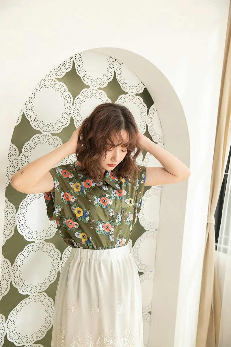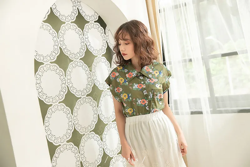 / NG品 / 日曬式花乾 | 手繪印花短袖襯衫(綠)